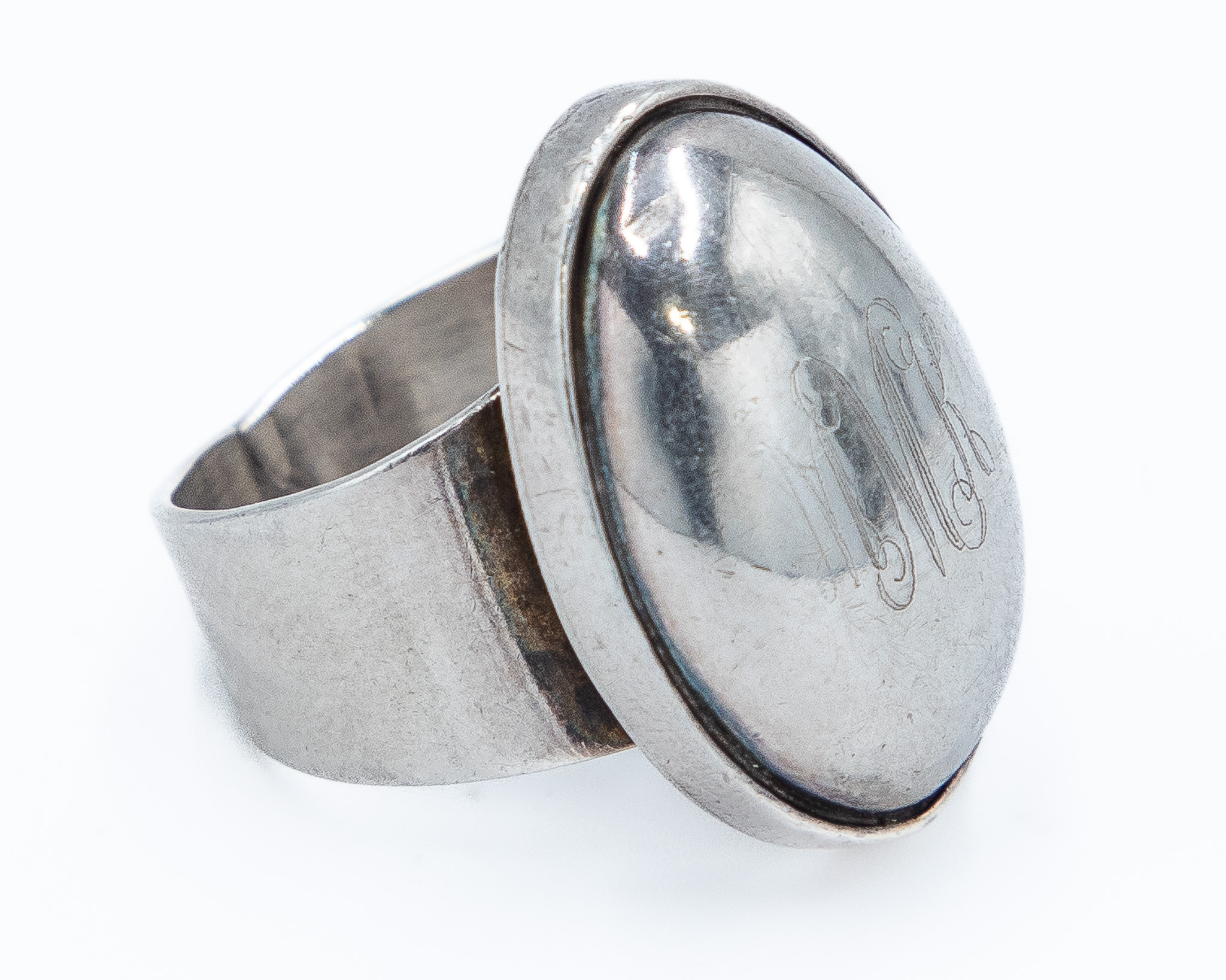 Signed RCJ Mexico MMK Etched Sterling Ring Sz 6.5, 12g