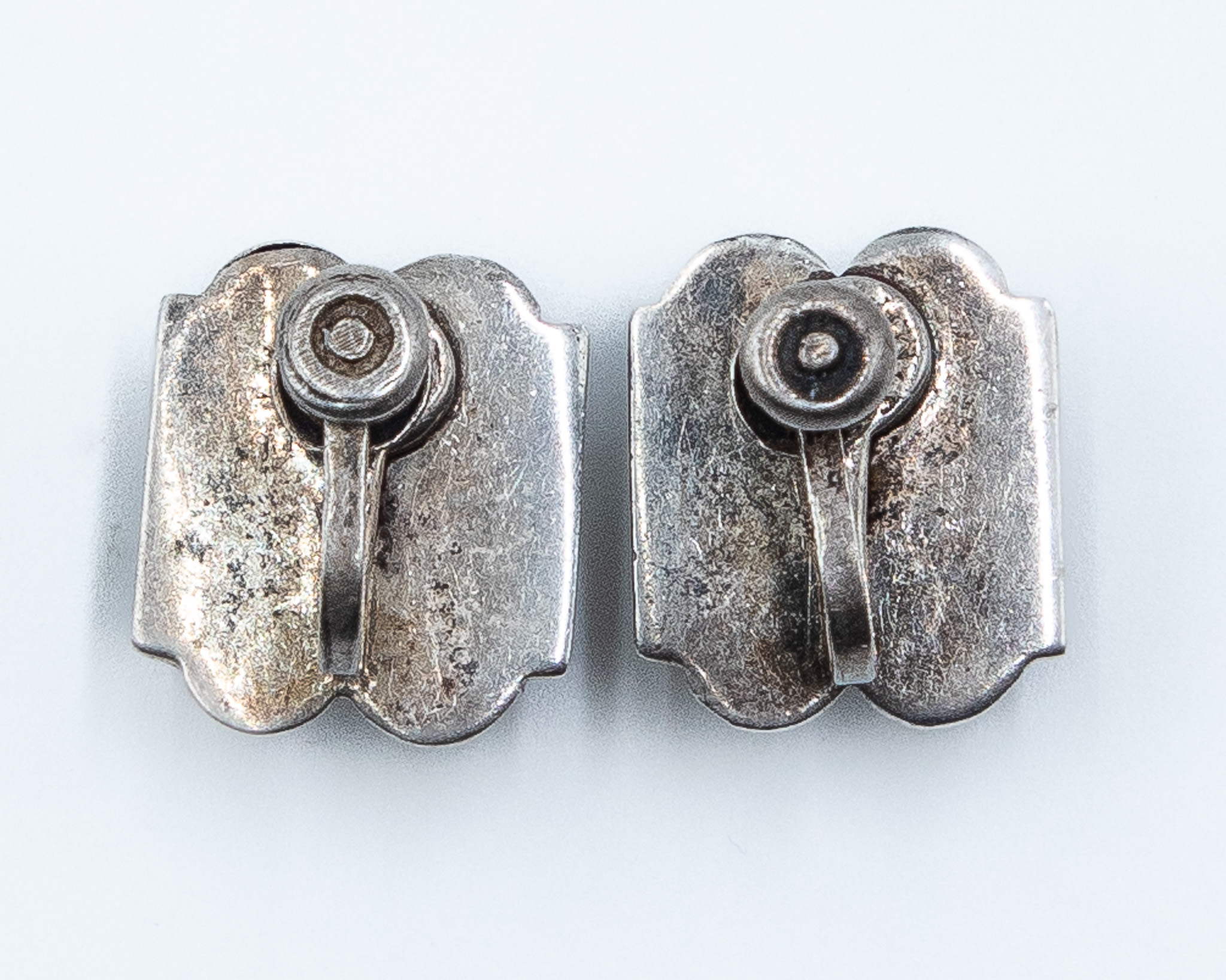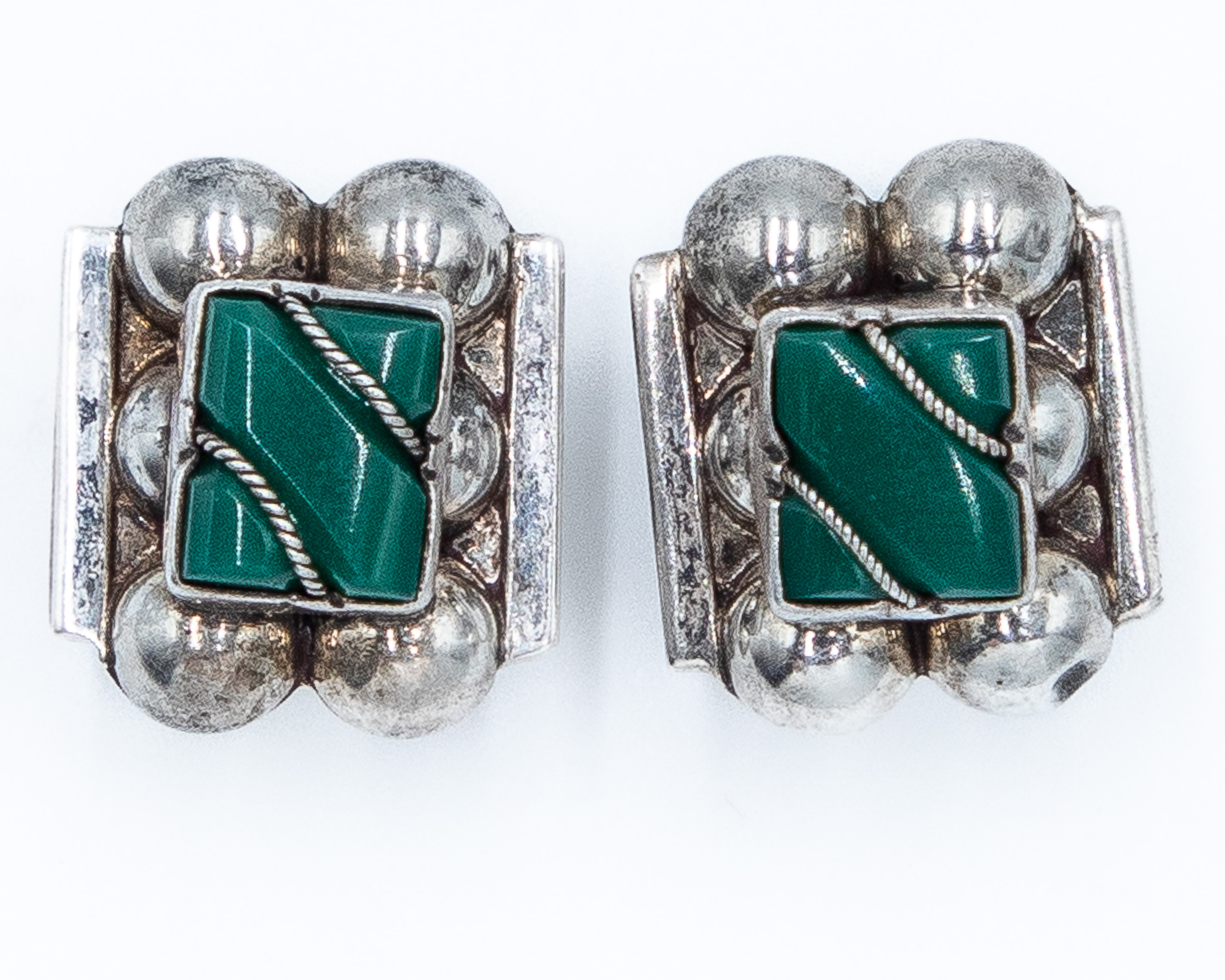 Vintage Mexico Carved Green Onyx Sterling Earrings 7g