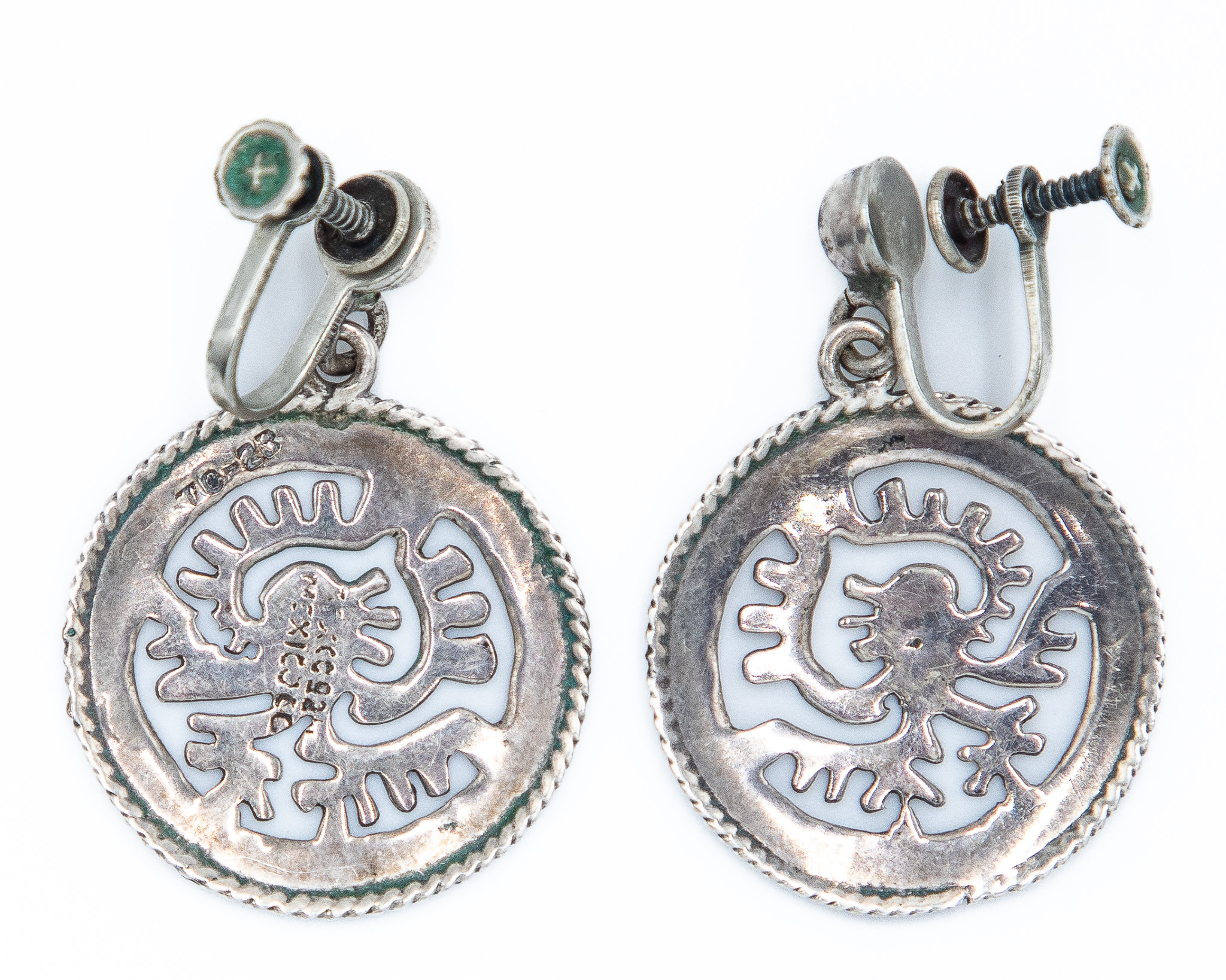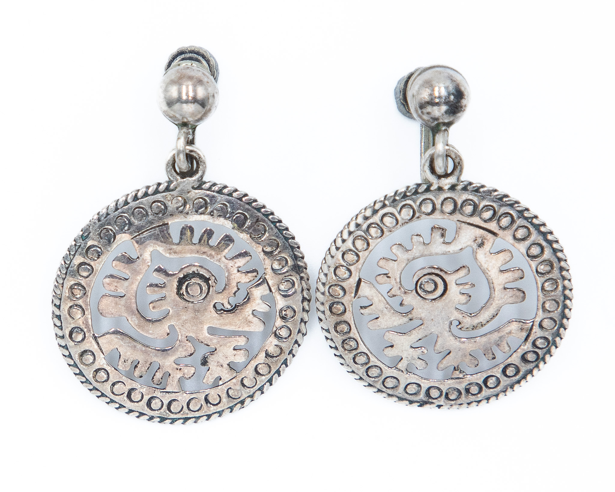 Signed TC-33 Taxco Mexico Sterling Aztec/Mayan Style Earrings 8g