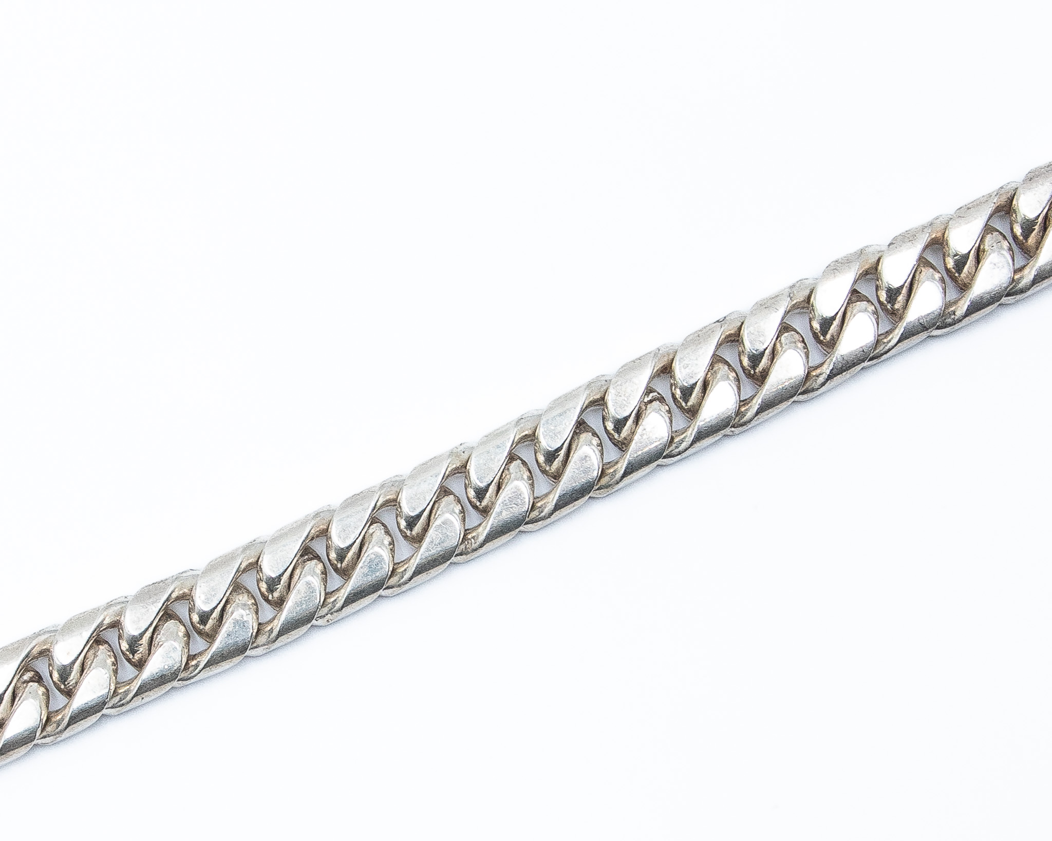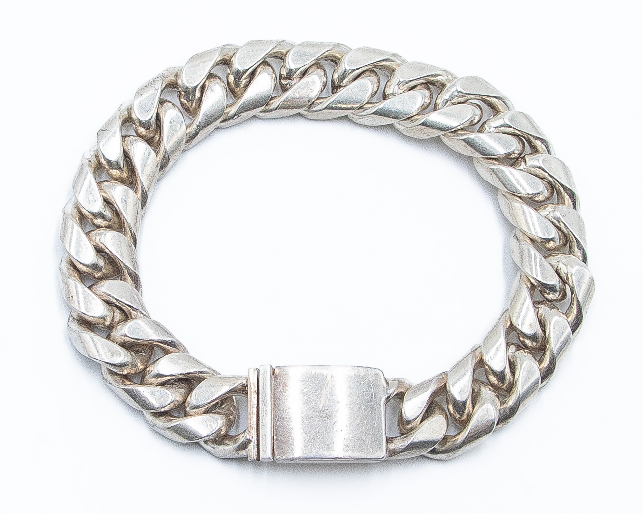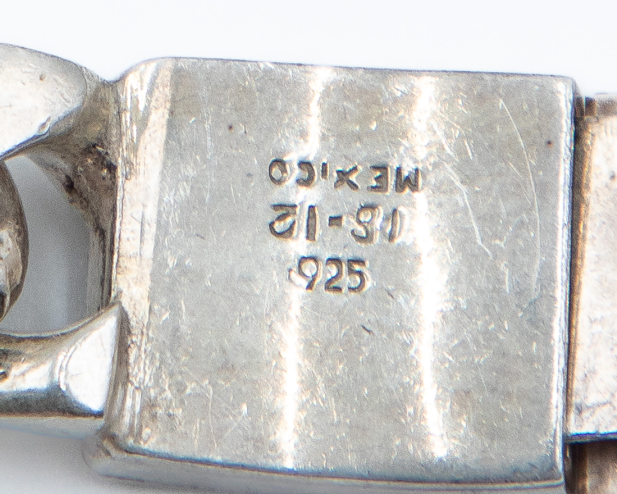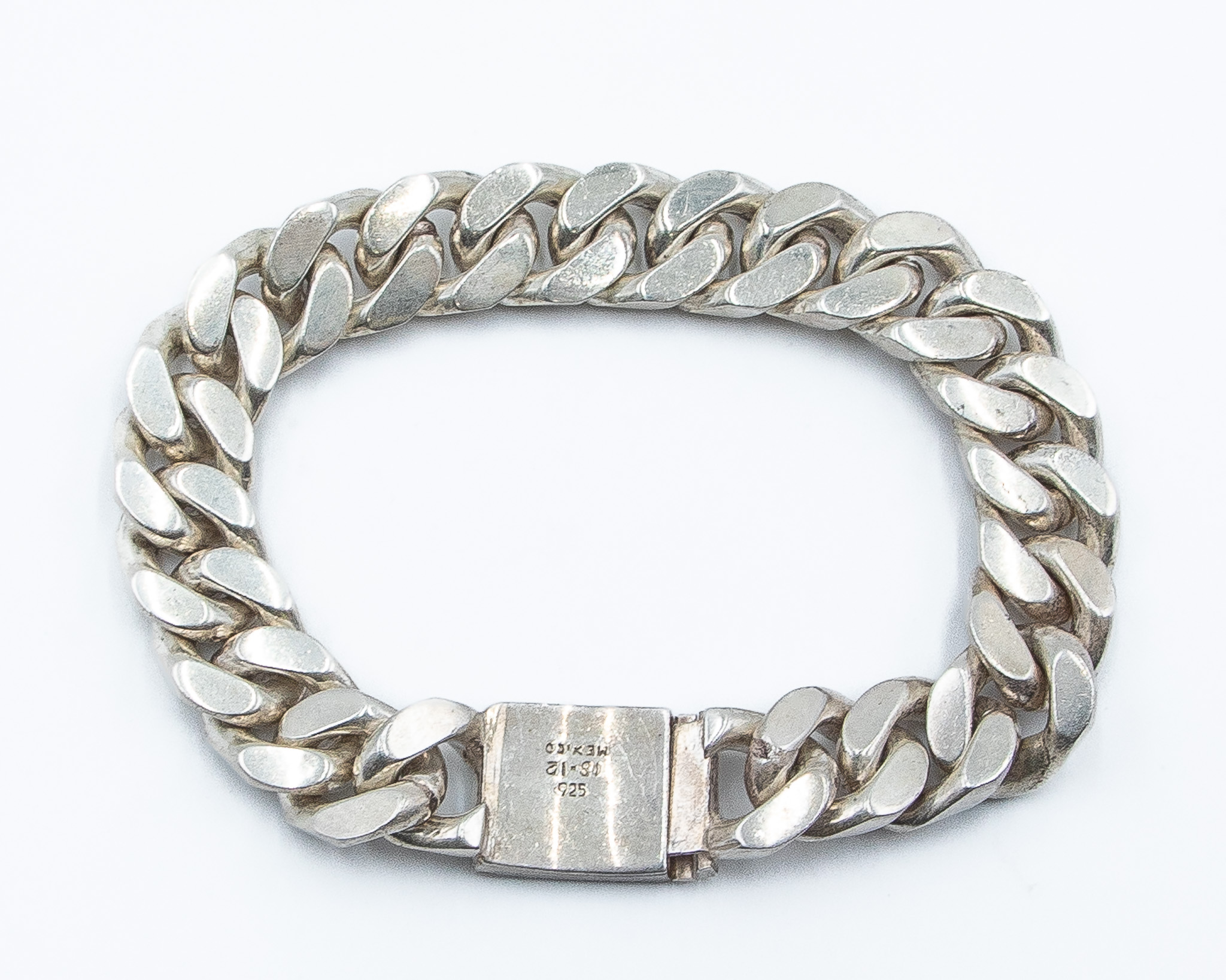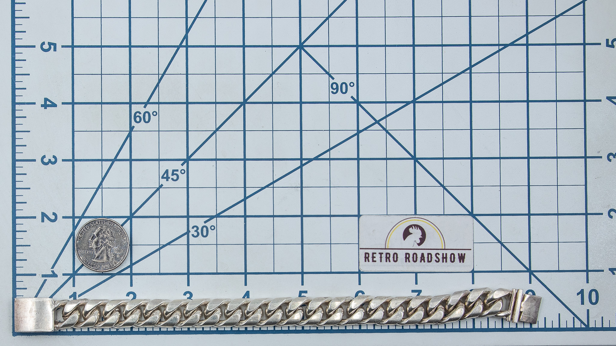 Signed TB-12 Taxco Mexico Heavy Sterling Cuban Chain Bracelet 107g