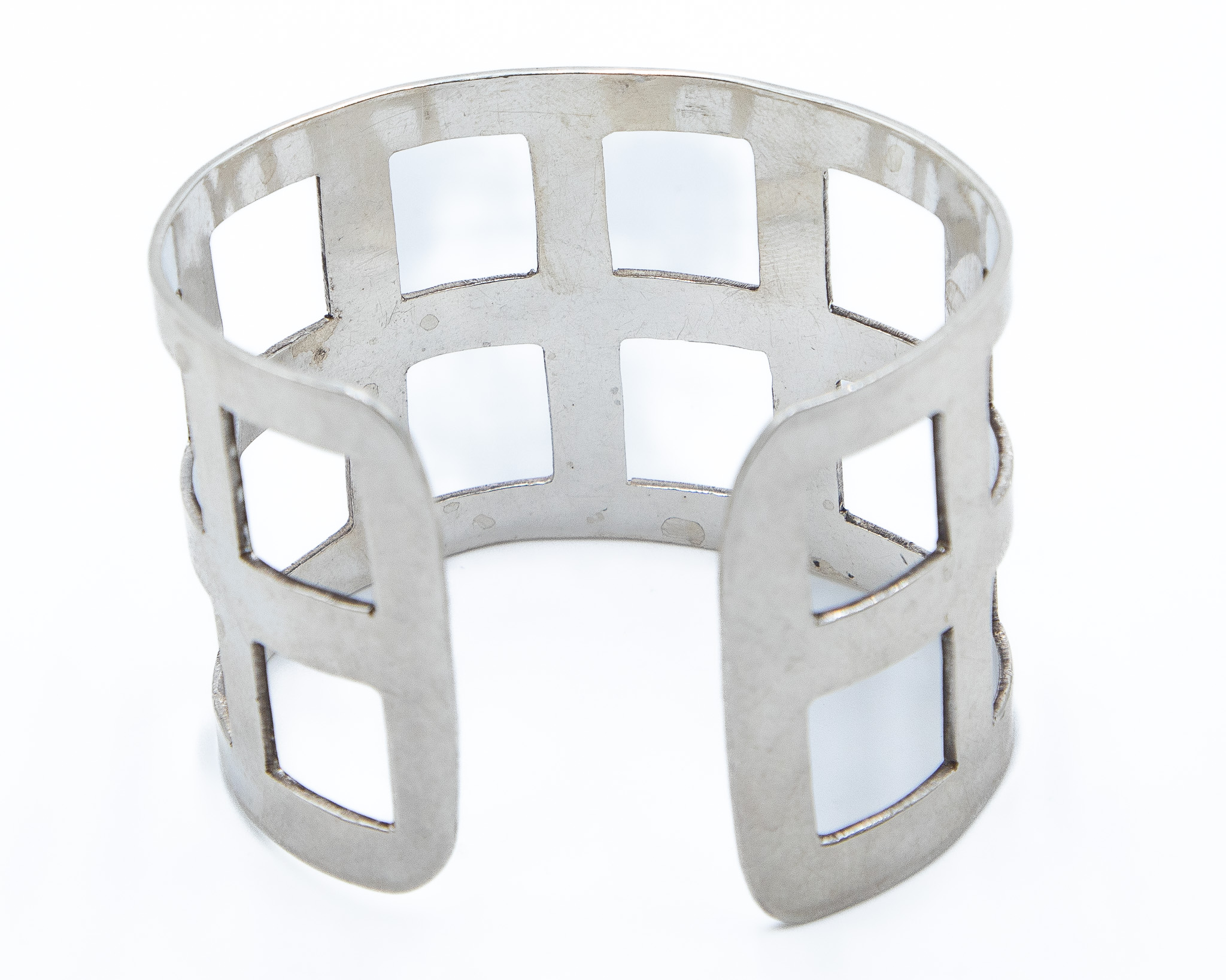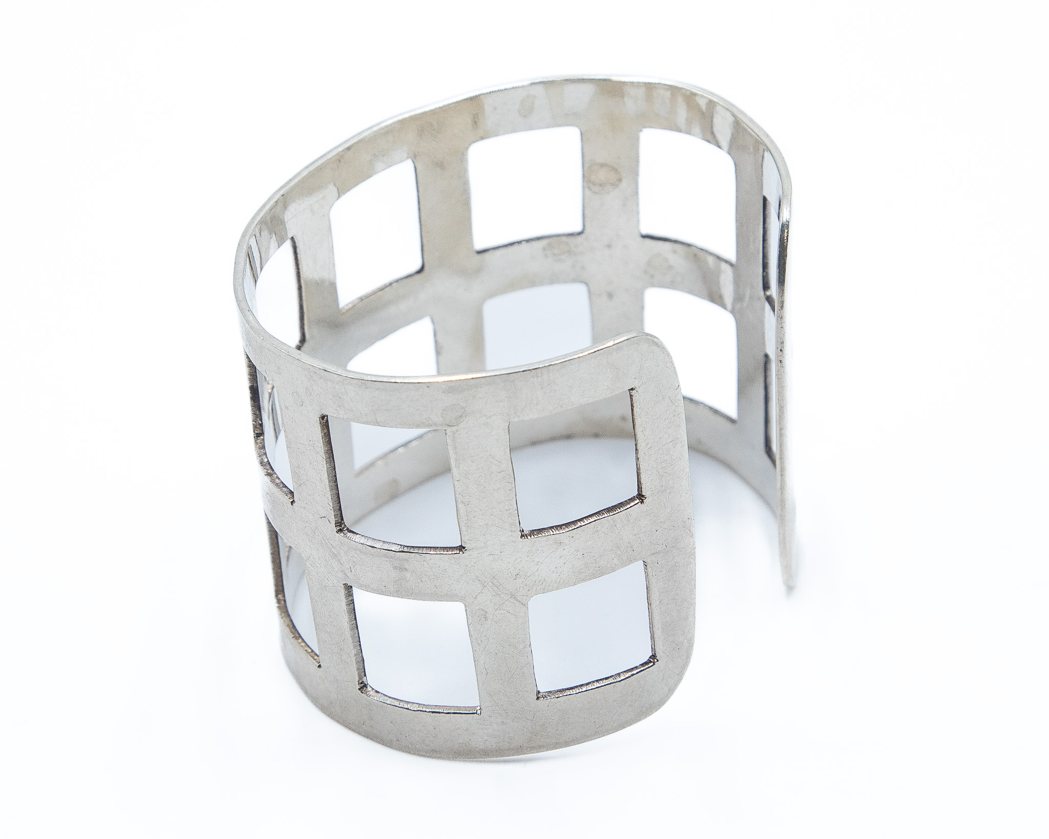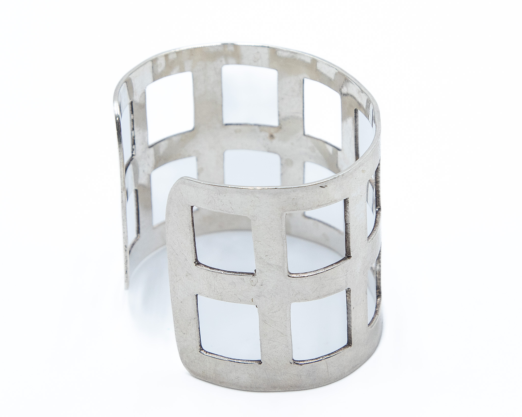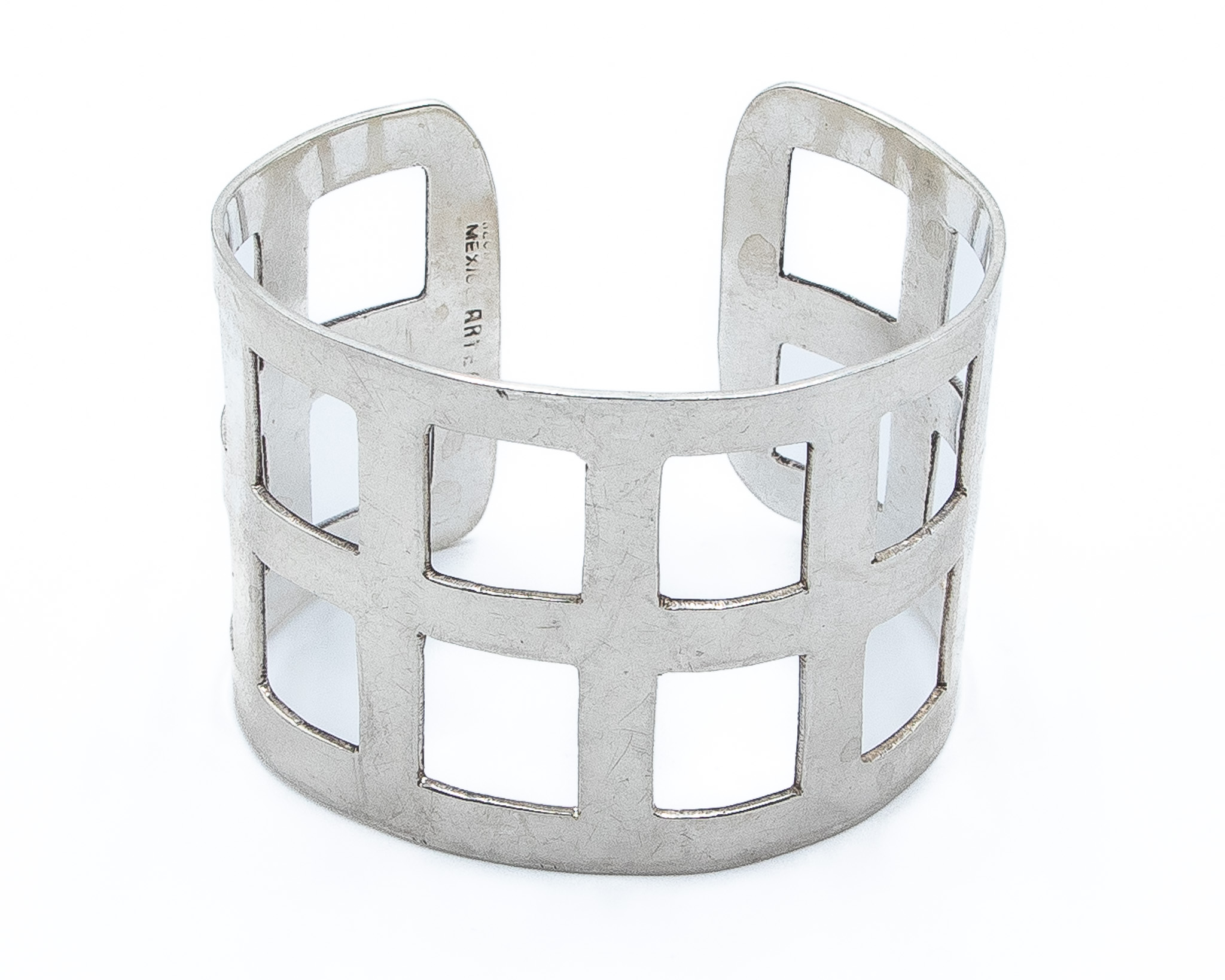 Signed Mexico Sterling Waffle Cuff Bracelet 55g-Illegible Signature Stamp