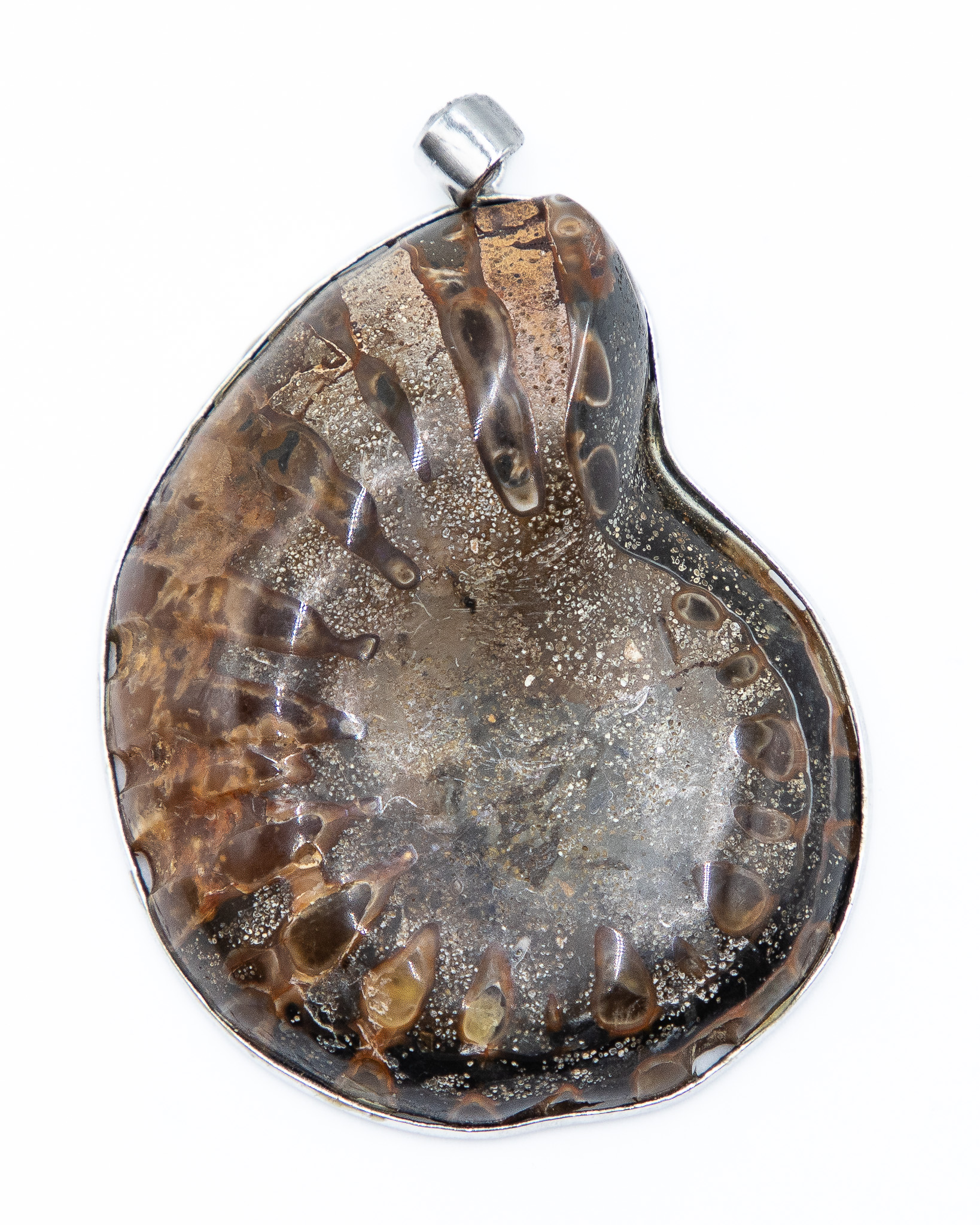 Amazing Vintage Ammonite Fossil Sterling Pendant 33.5g