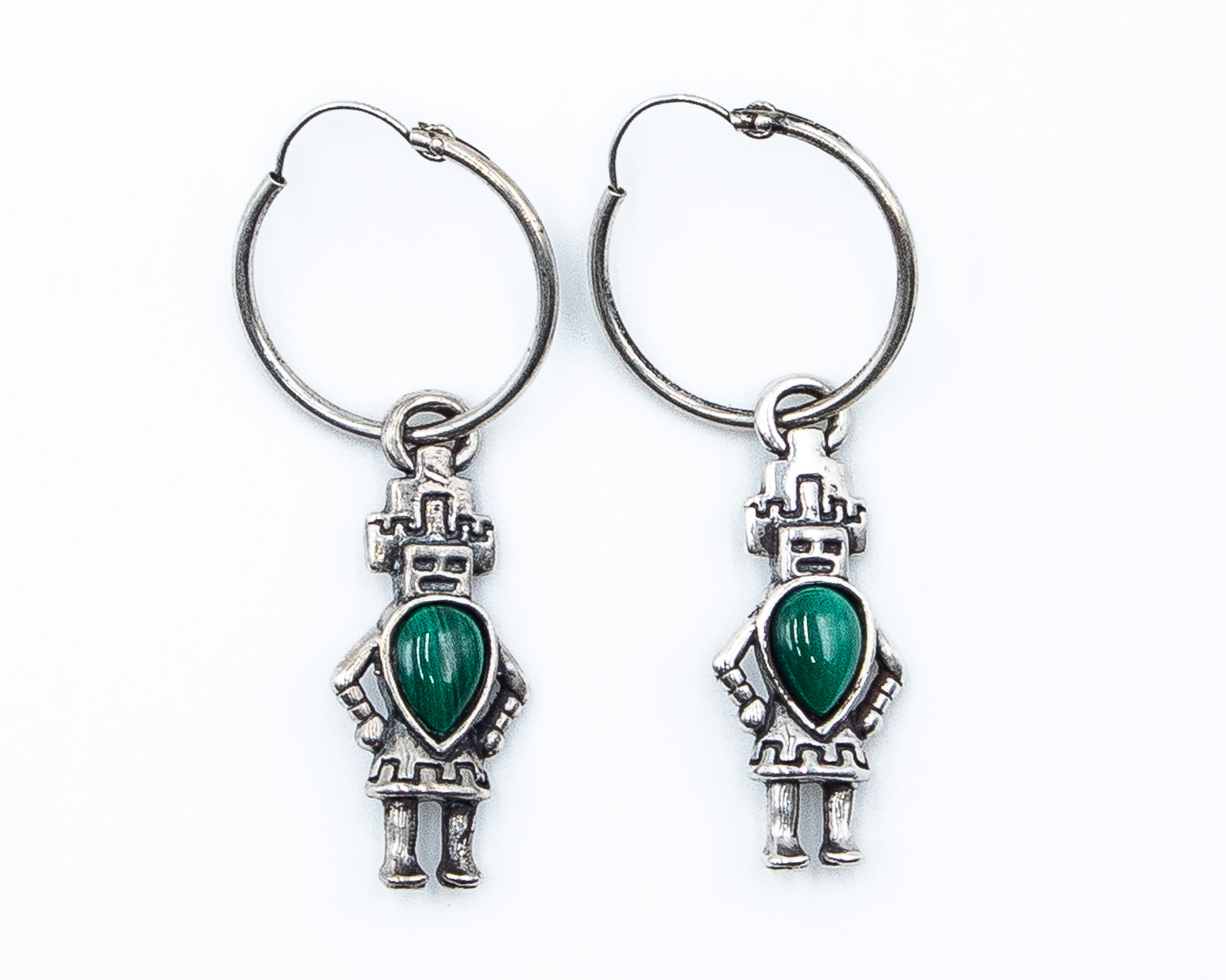 Carolyn Pollack Malachite Sterling Kachina Earrings 6.5g