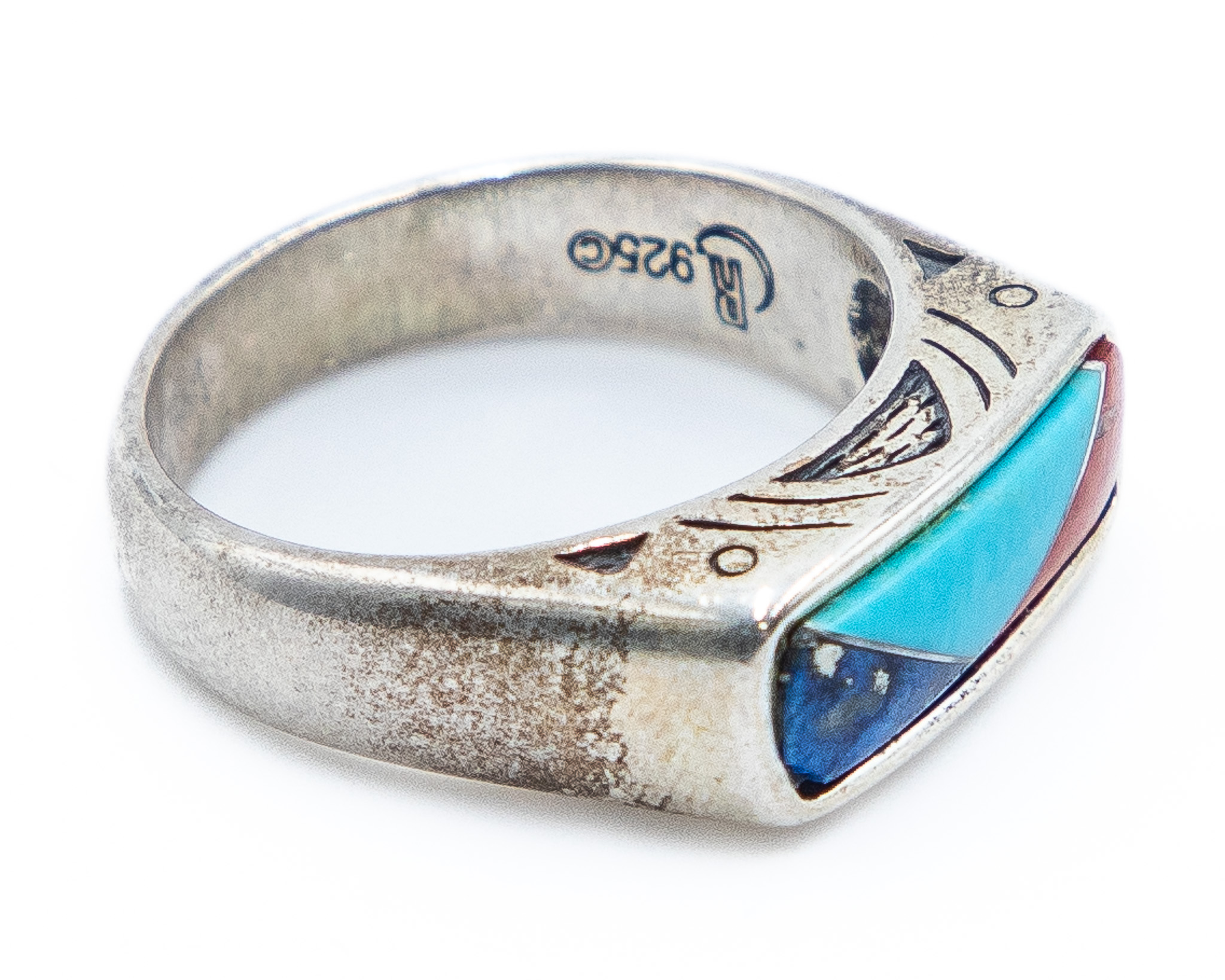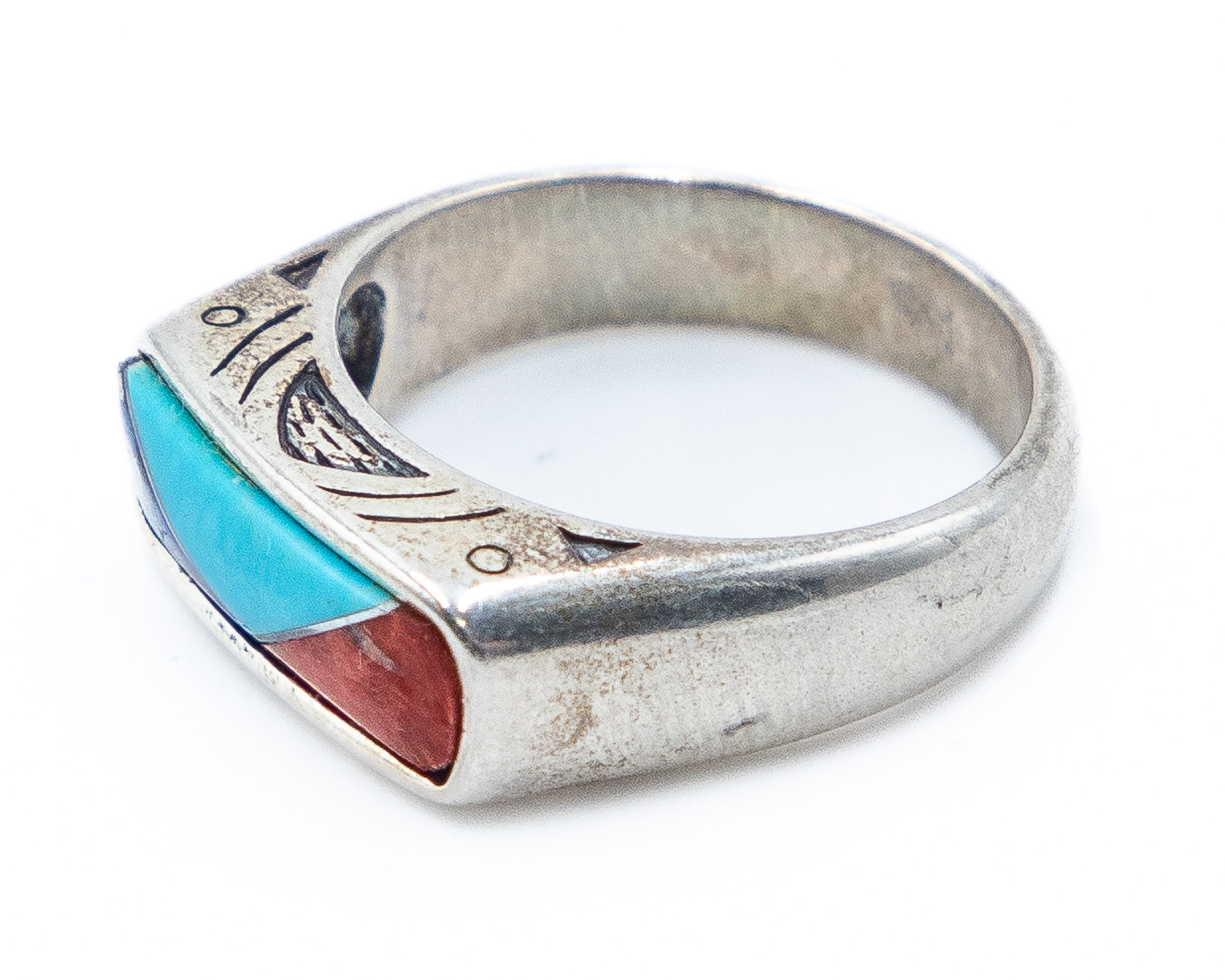 Relios Coral Turquoise Lapis Inlay Ring Sz 6.75, 6.5g