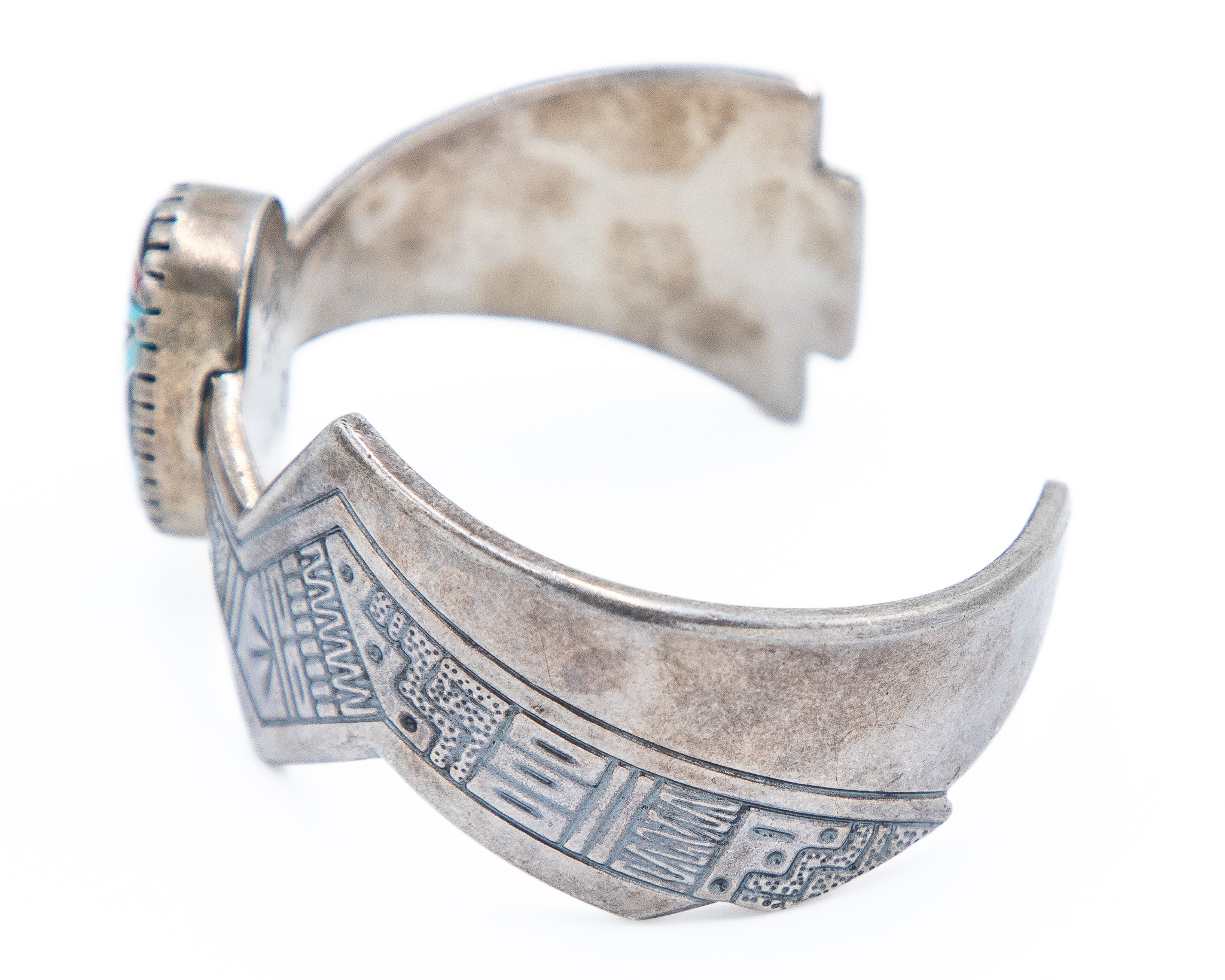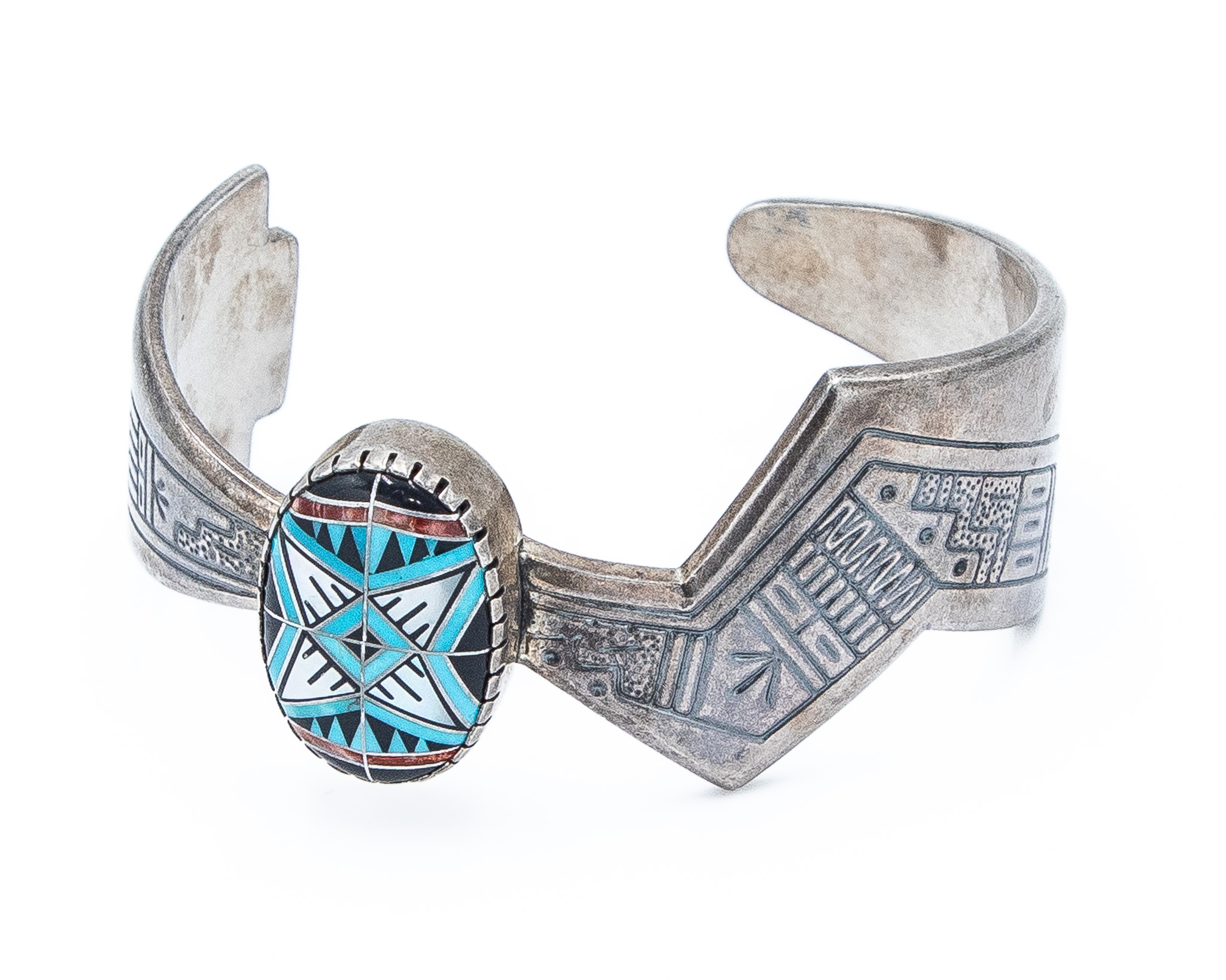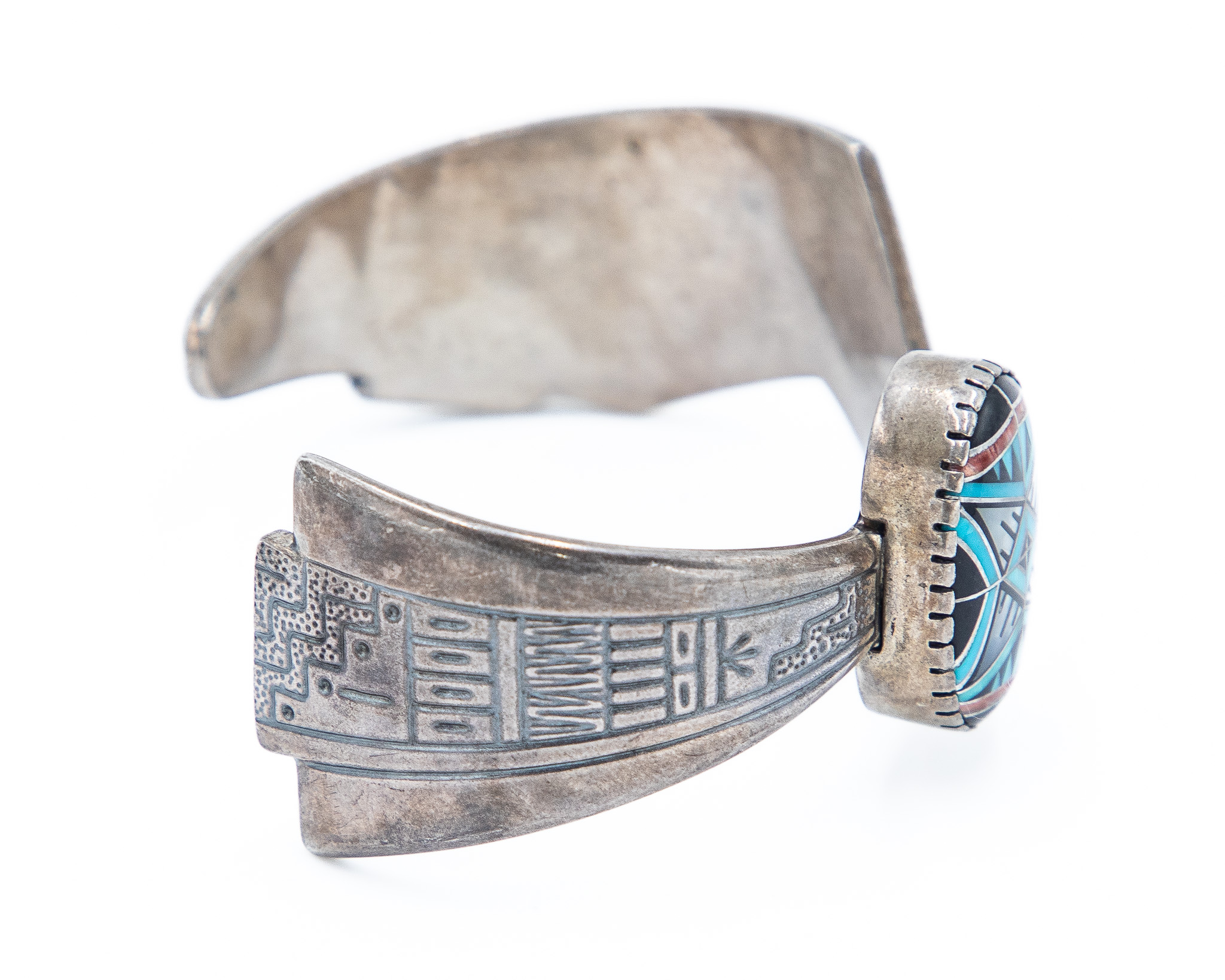 Roderick And Marilyn Tenorio Kewa Relios Coral Turquoise Mother Of Pearl Onyx Sterling Inlay Cuff Bracelet 56.5g