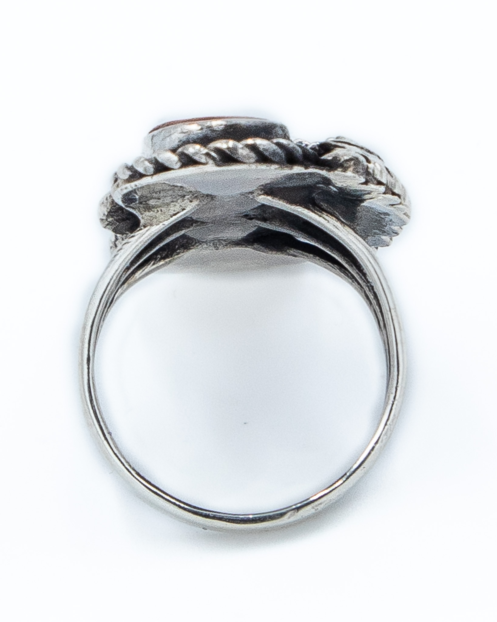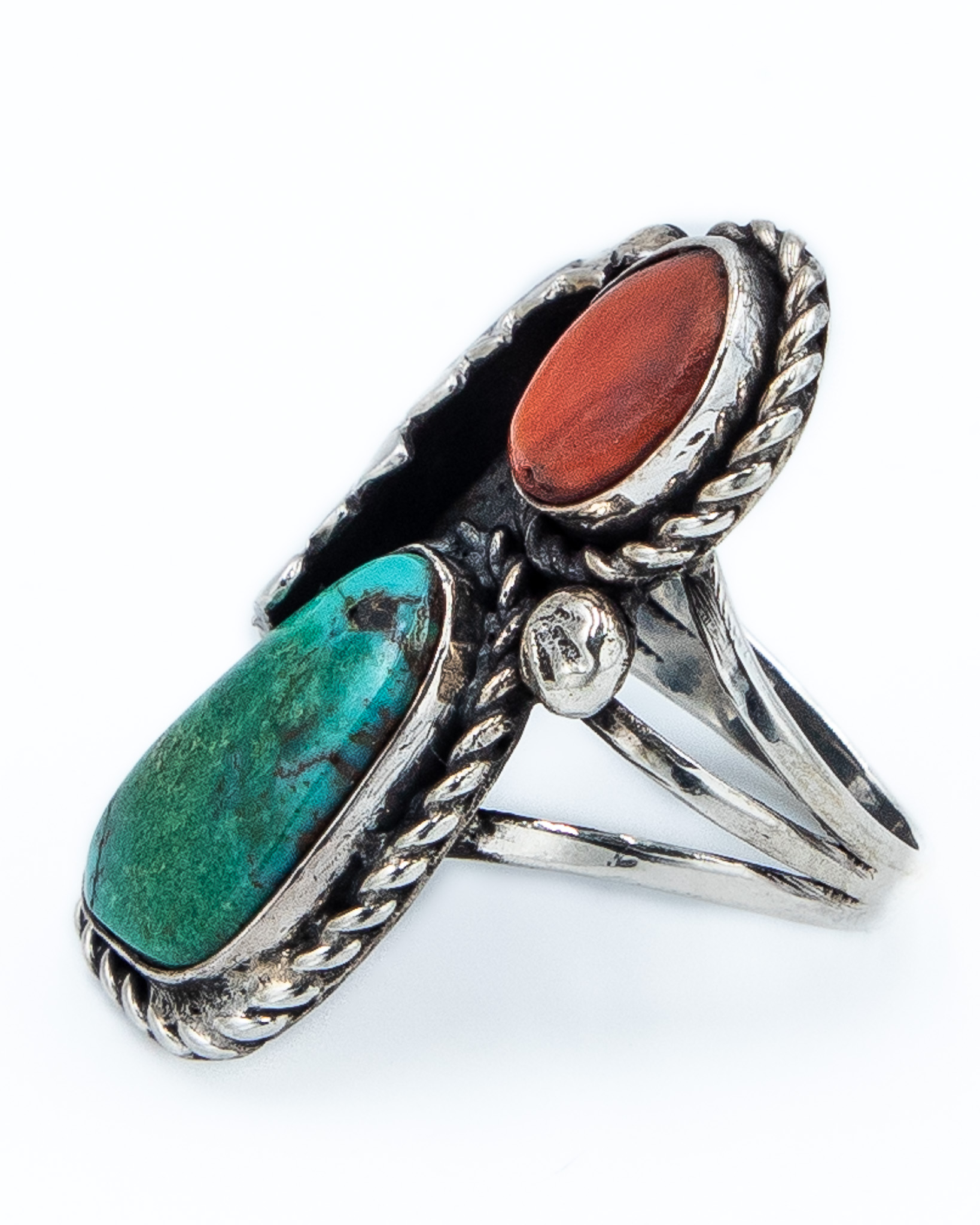 Vintage Navajo Coral Turquoise Sterling Ring Sz 7.25