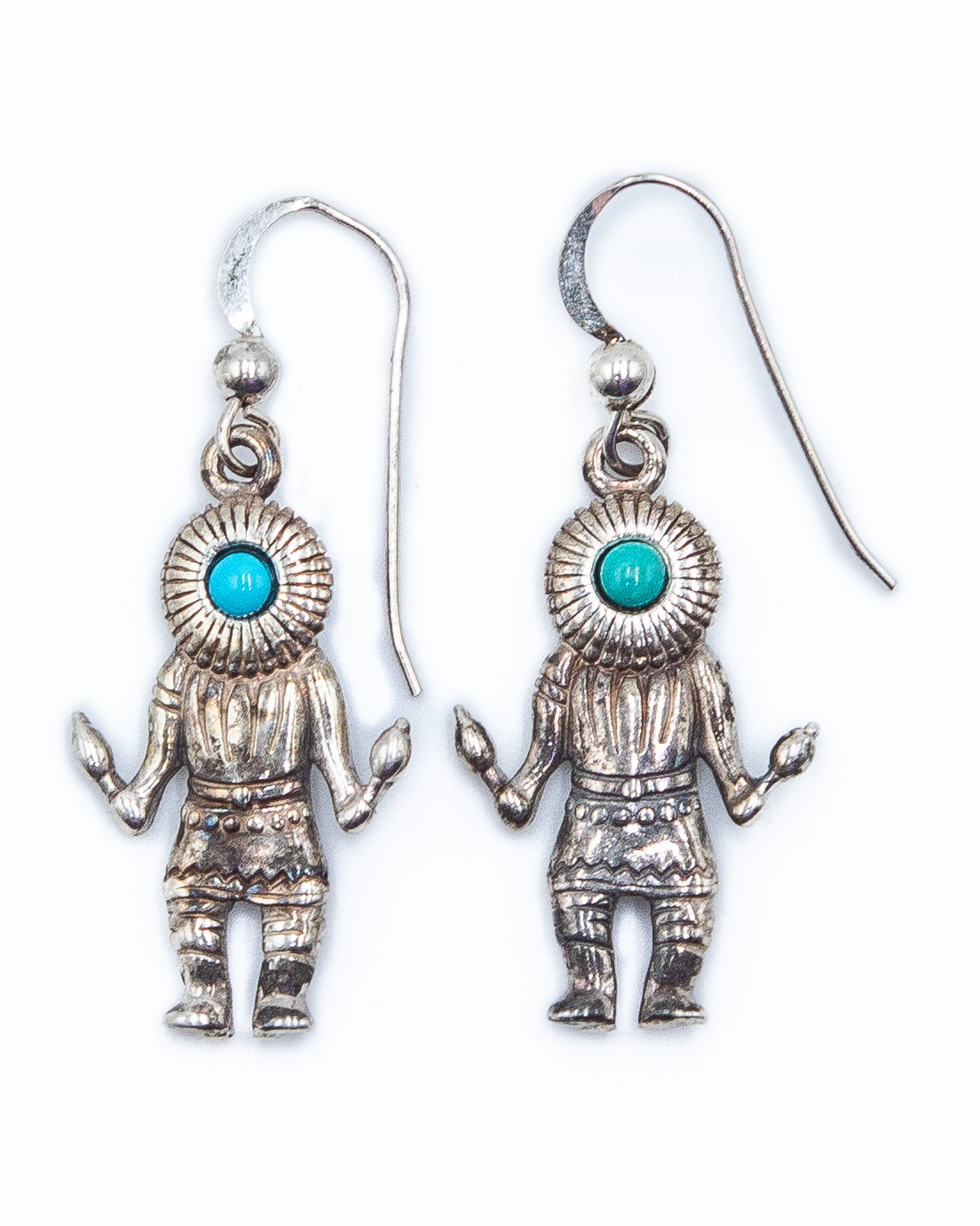 Shubes Manufacturing Turquoise Sterling Kachina Earrings