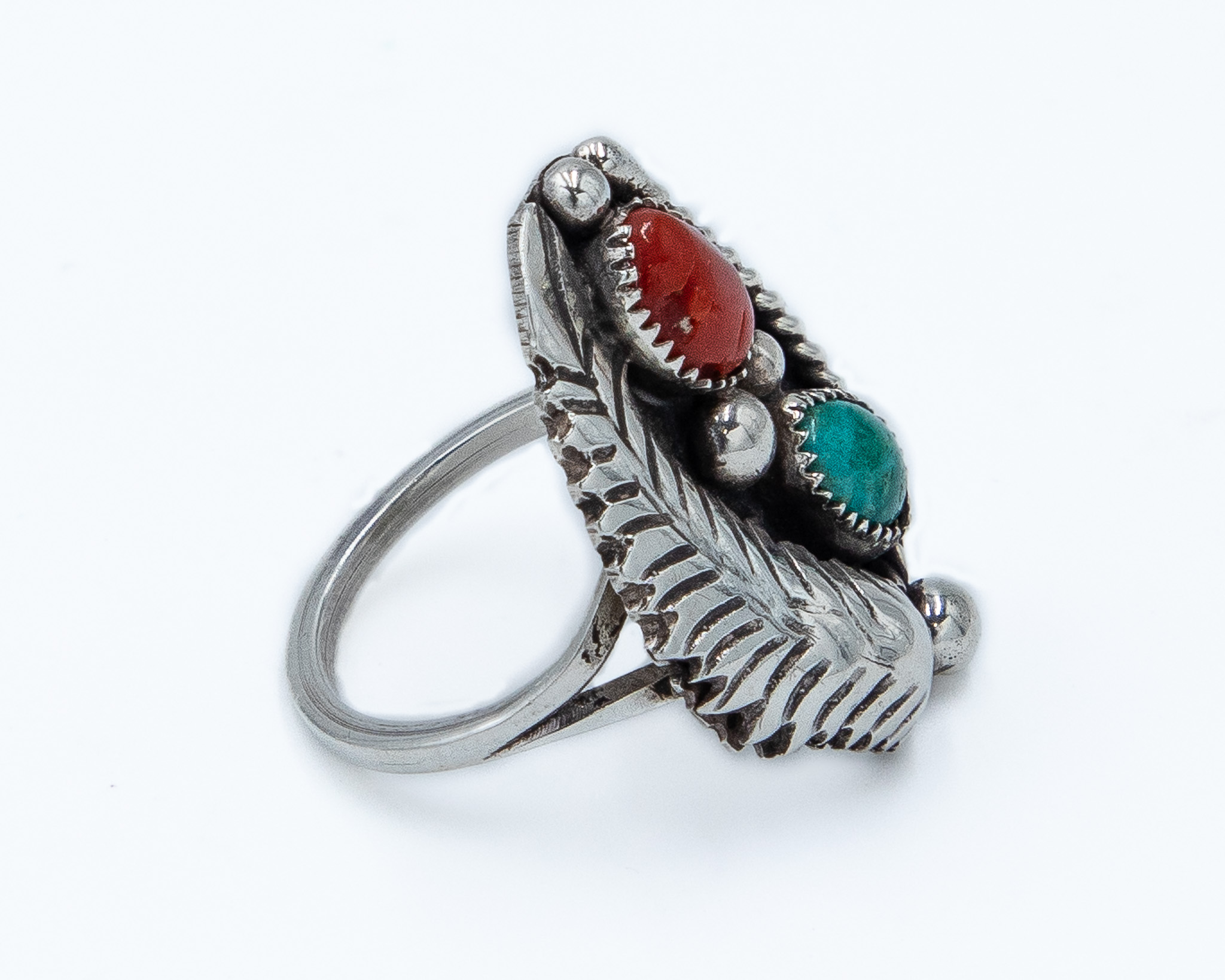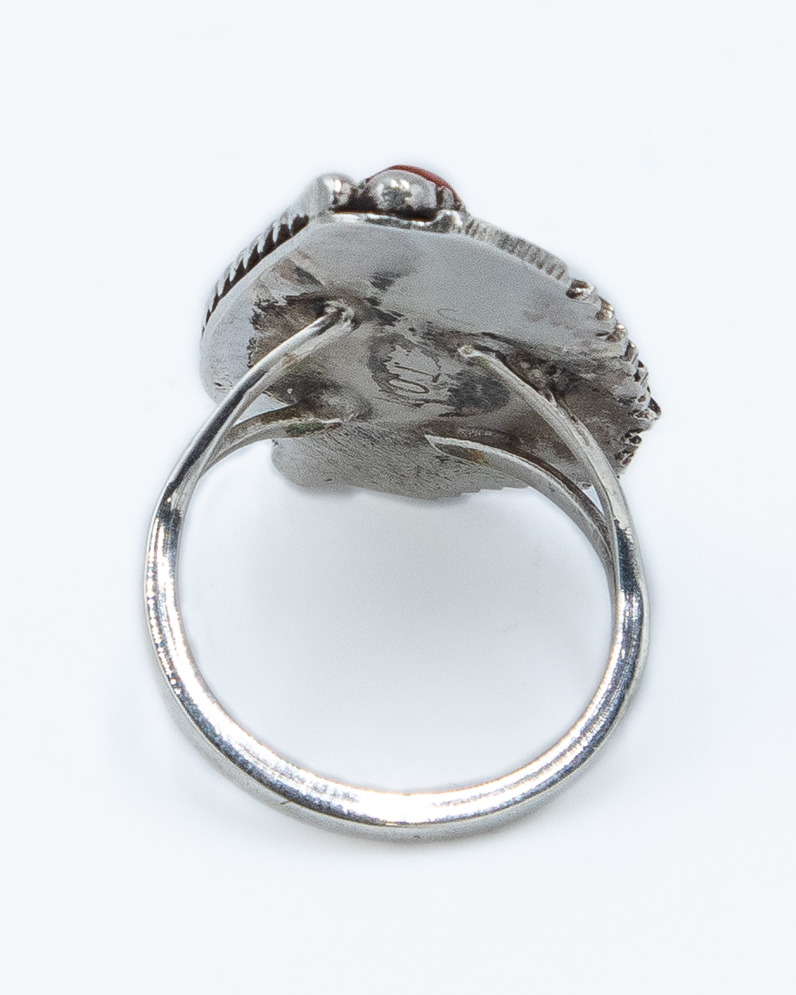 Tom Hawk Navajo Coral Turquoise Sterling Ring Sz 6, 6g