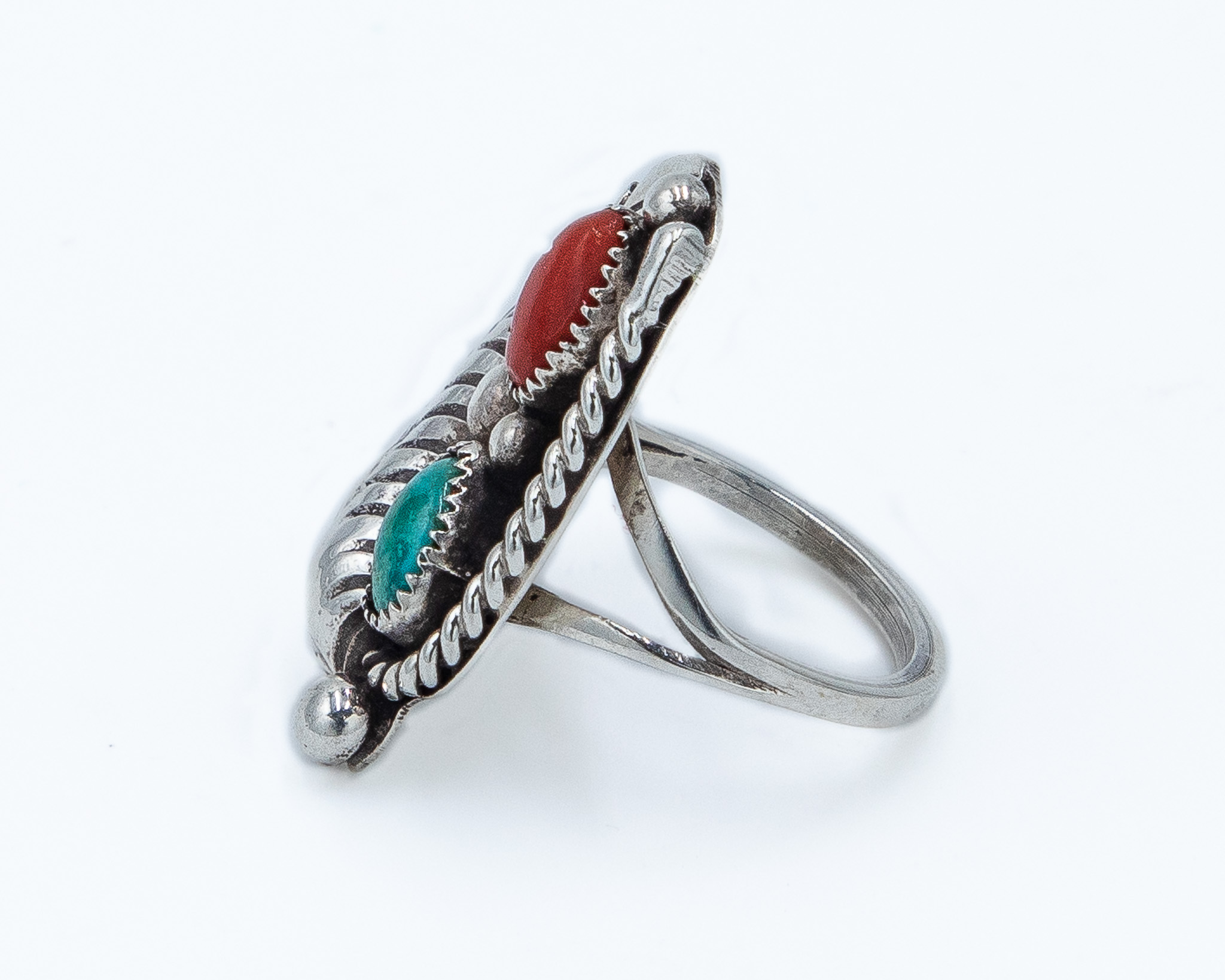 Tom Hawk Navajo Coral Turquoise Sterling Ring Sz 6