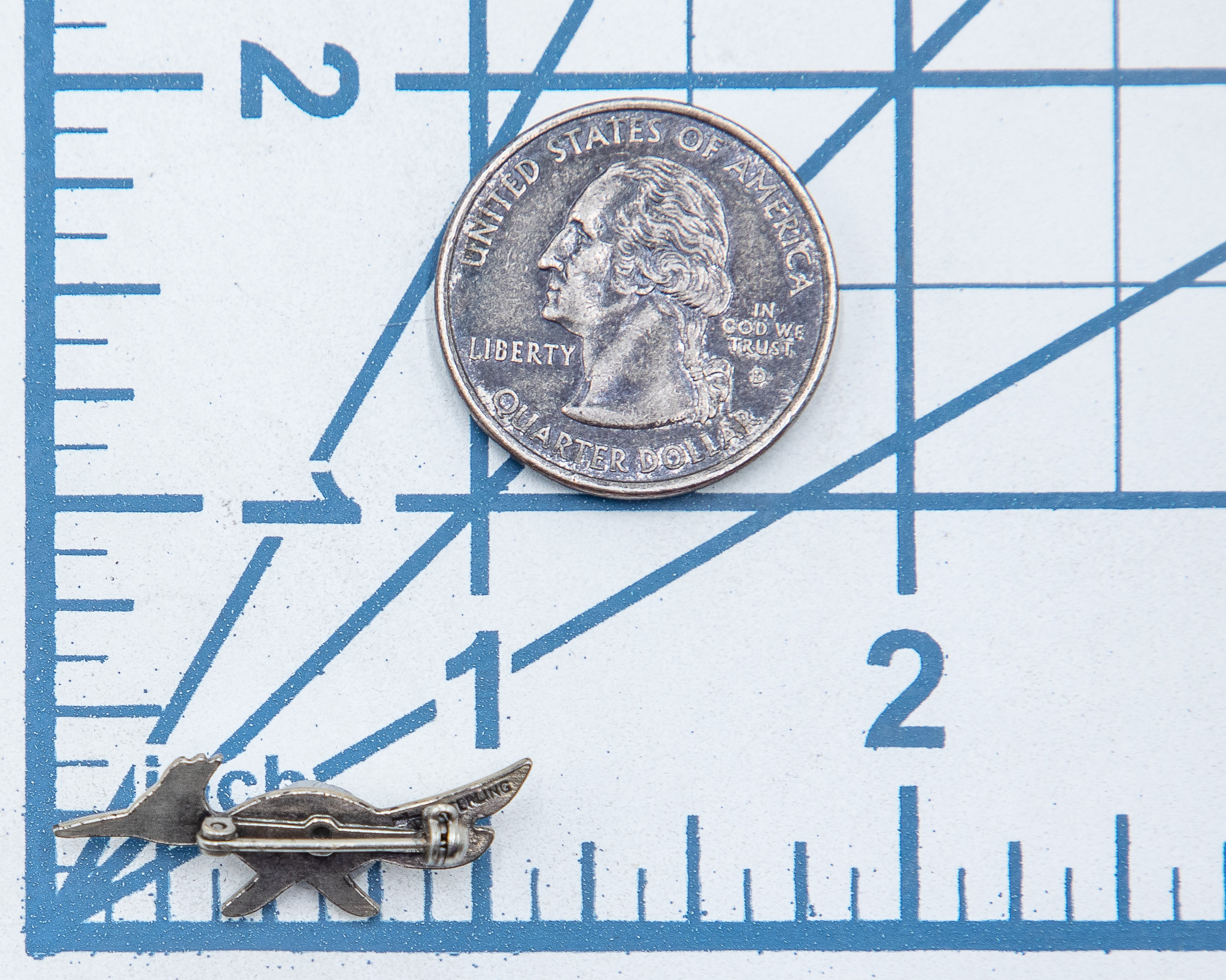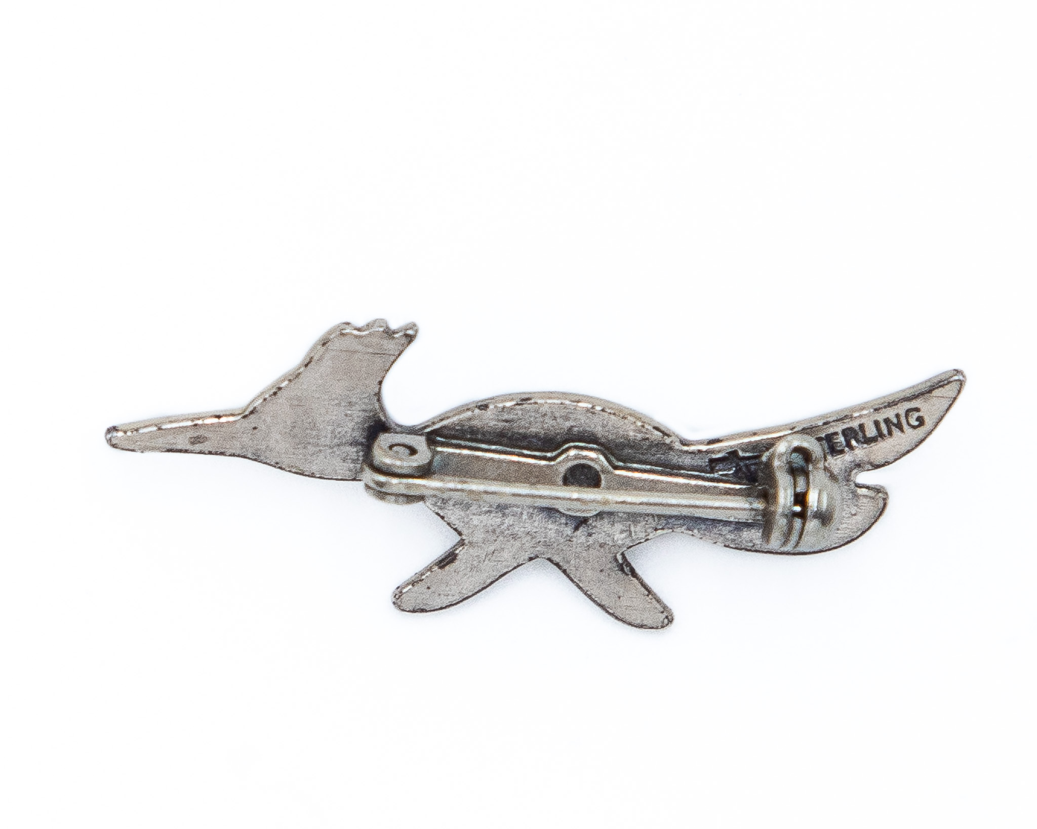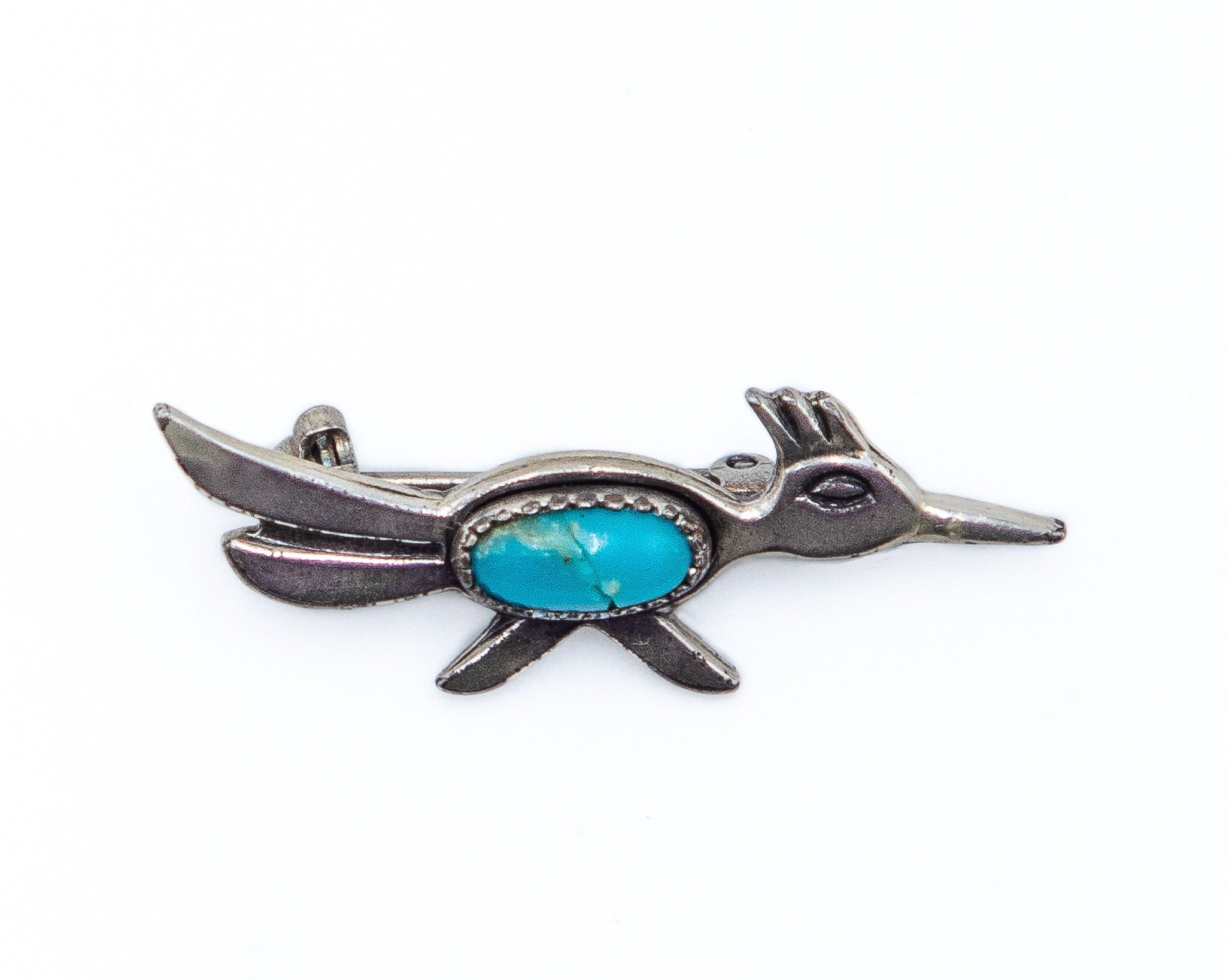 Vintage Navajo Turquoise Sterling Roadrunner Brooch 2g-Crack in Stone