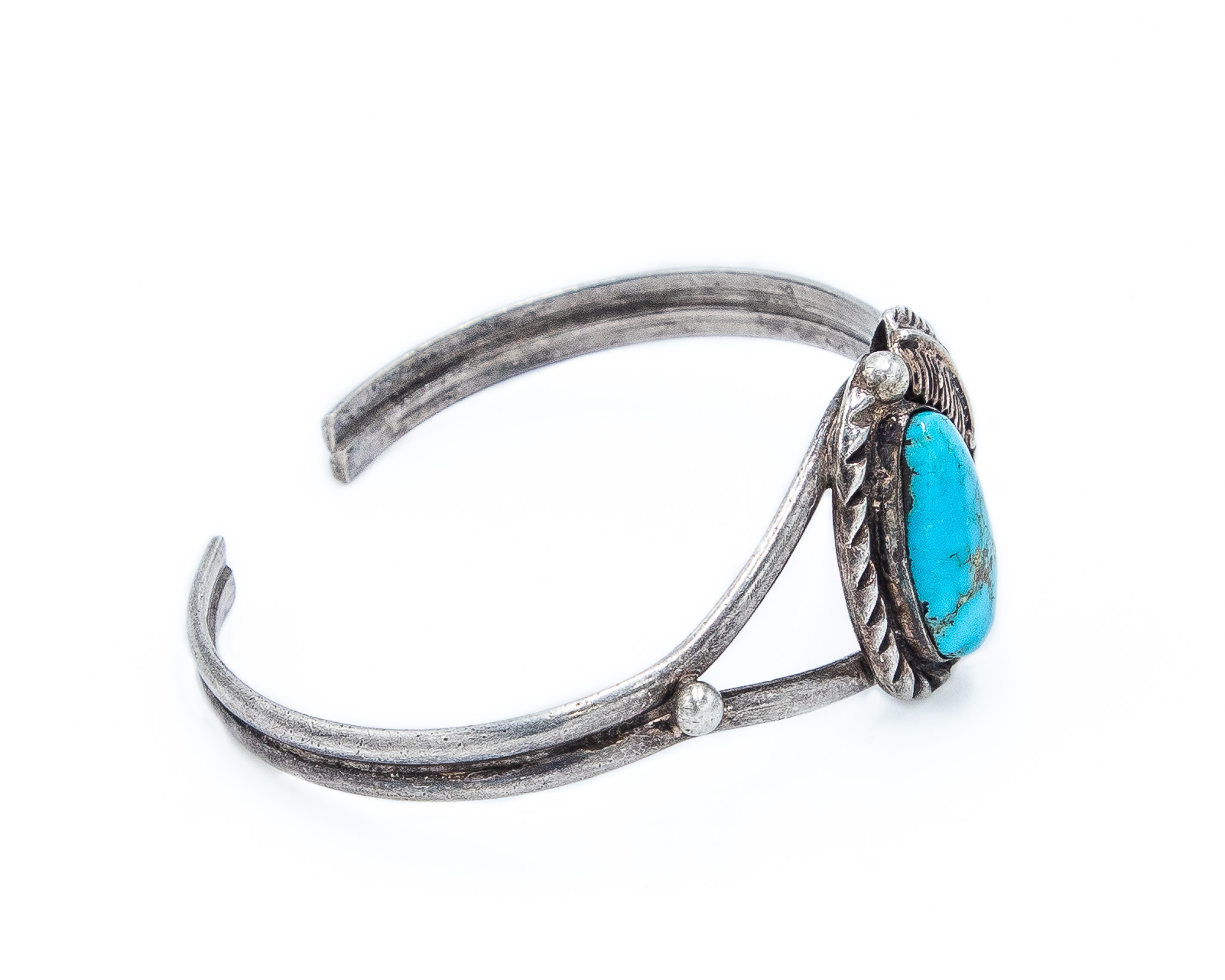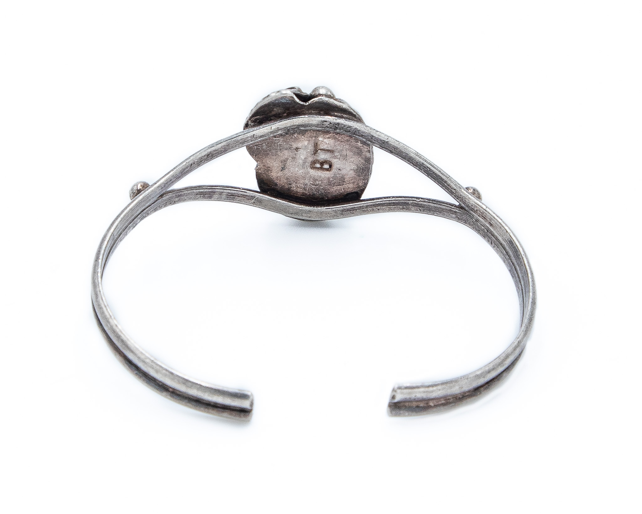 Signed BT Navajo Turquoise Sterling Cuff Bracelet 13g