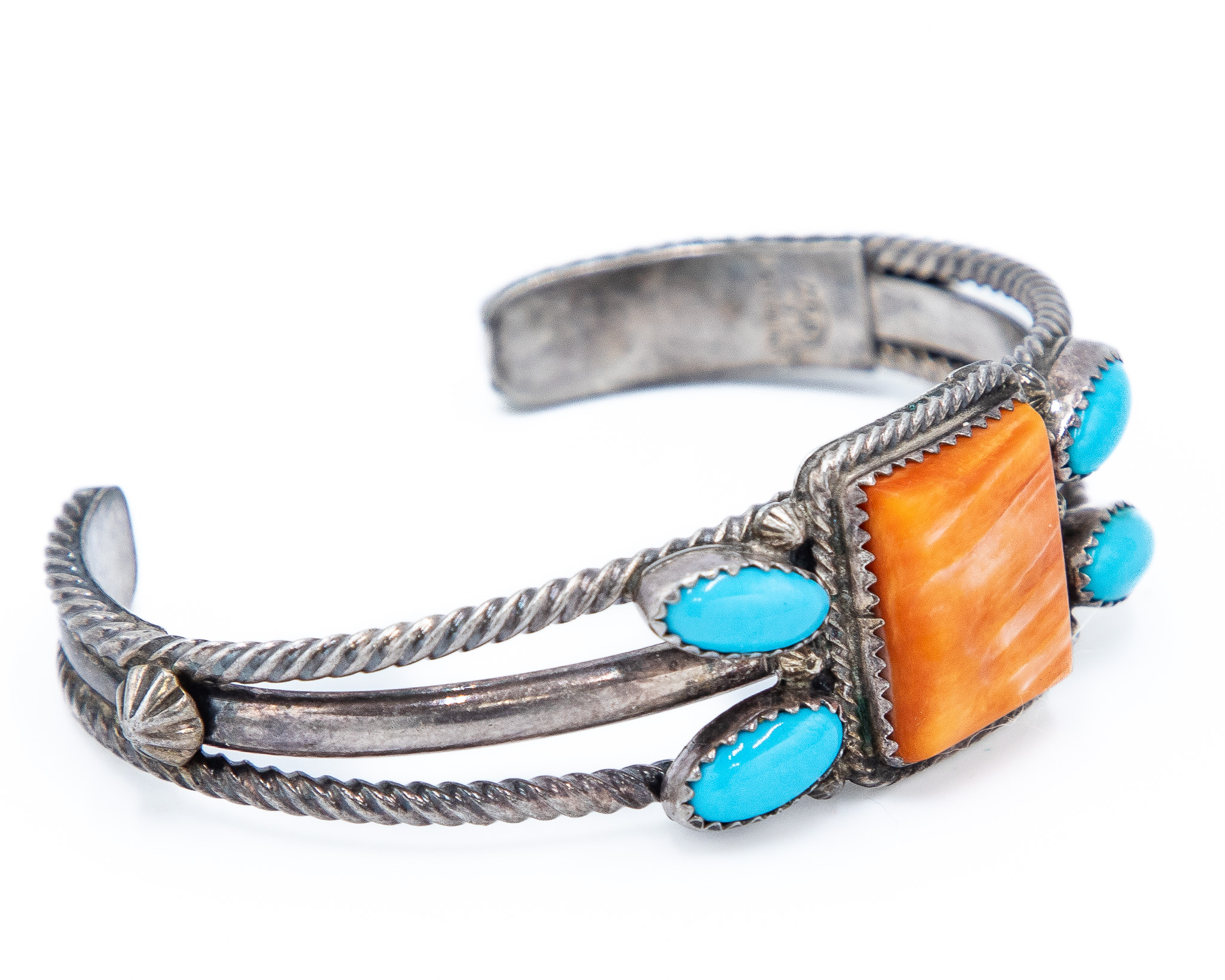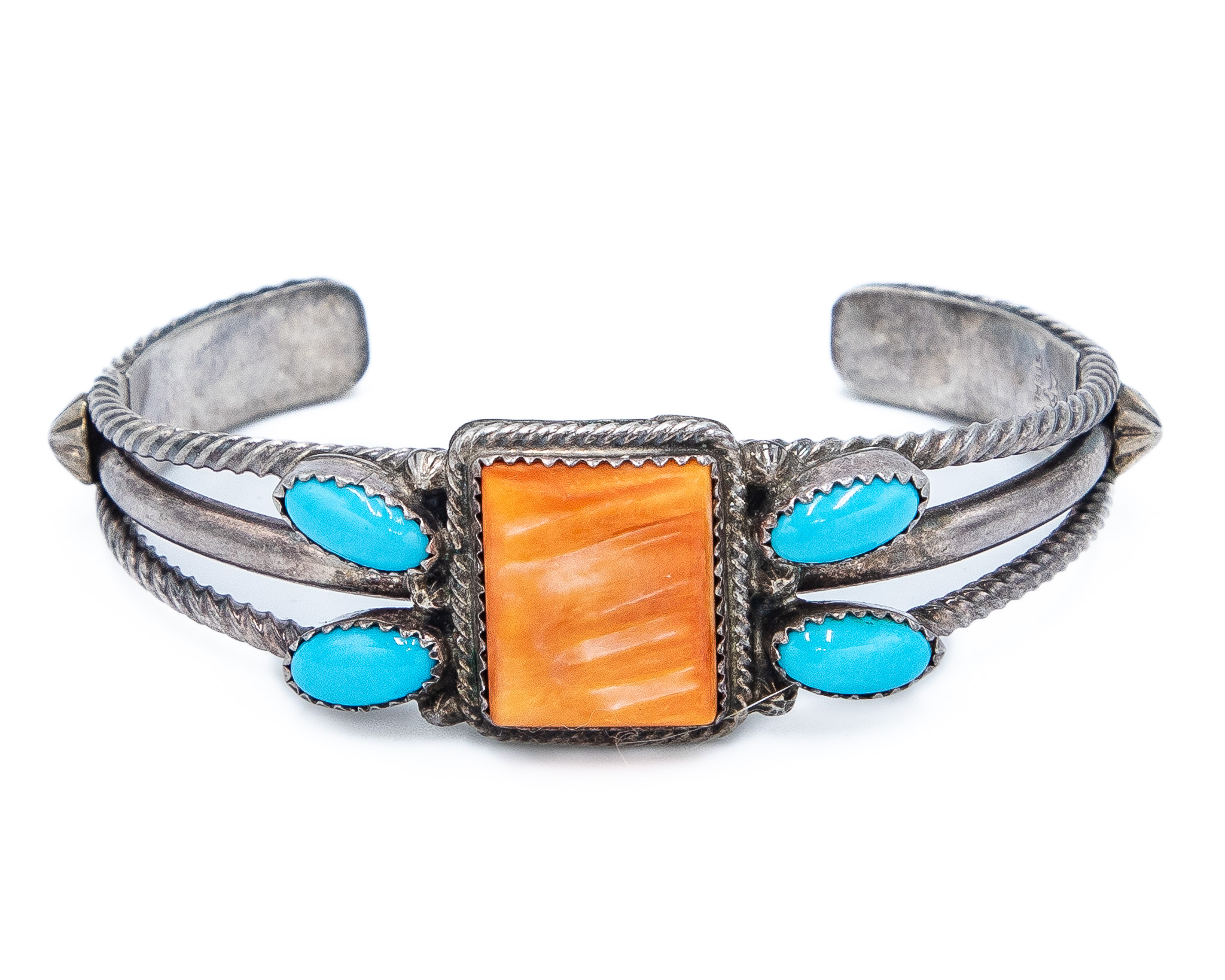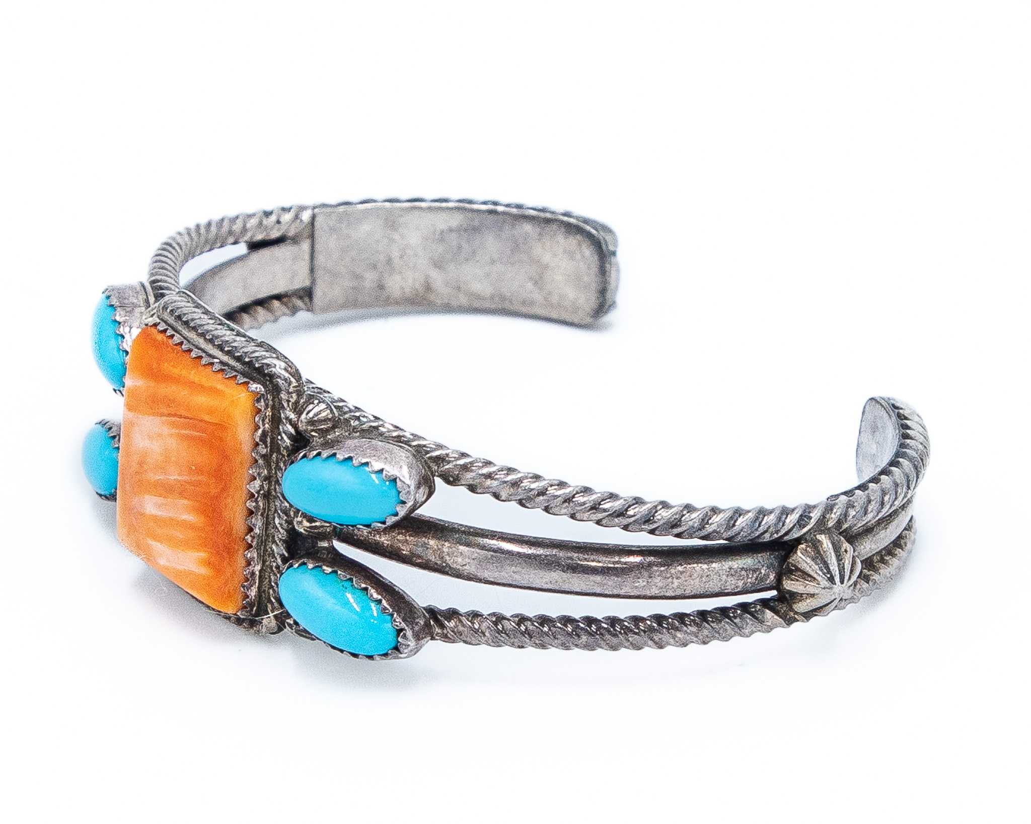 Running Bear Spiny Oyster Turquoise Sterling Cuff Bracelet 35g
