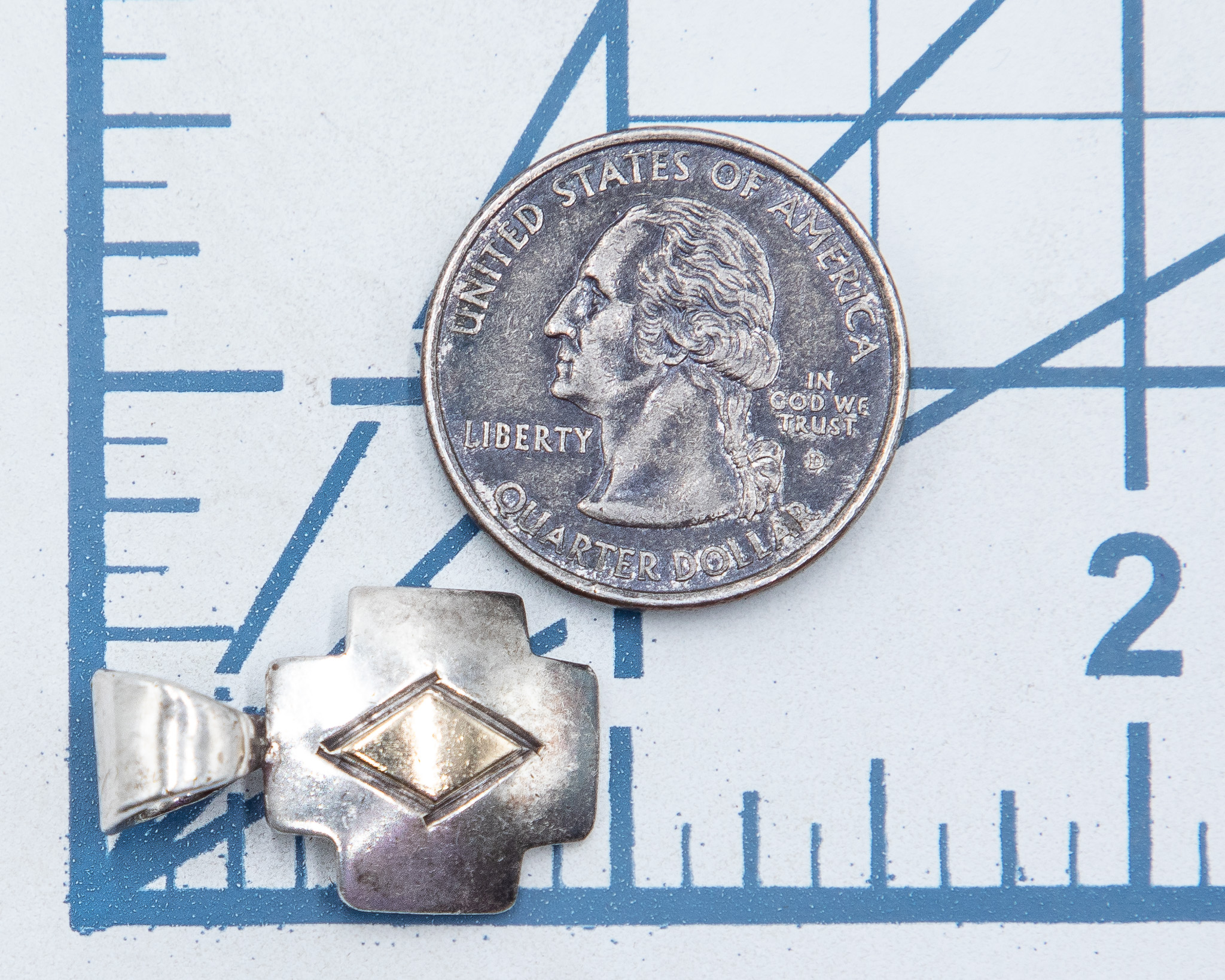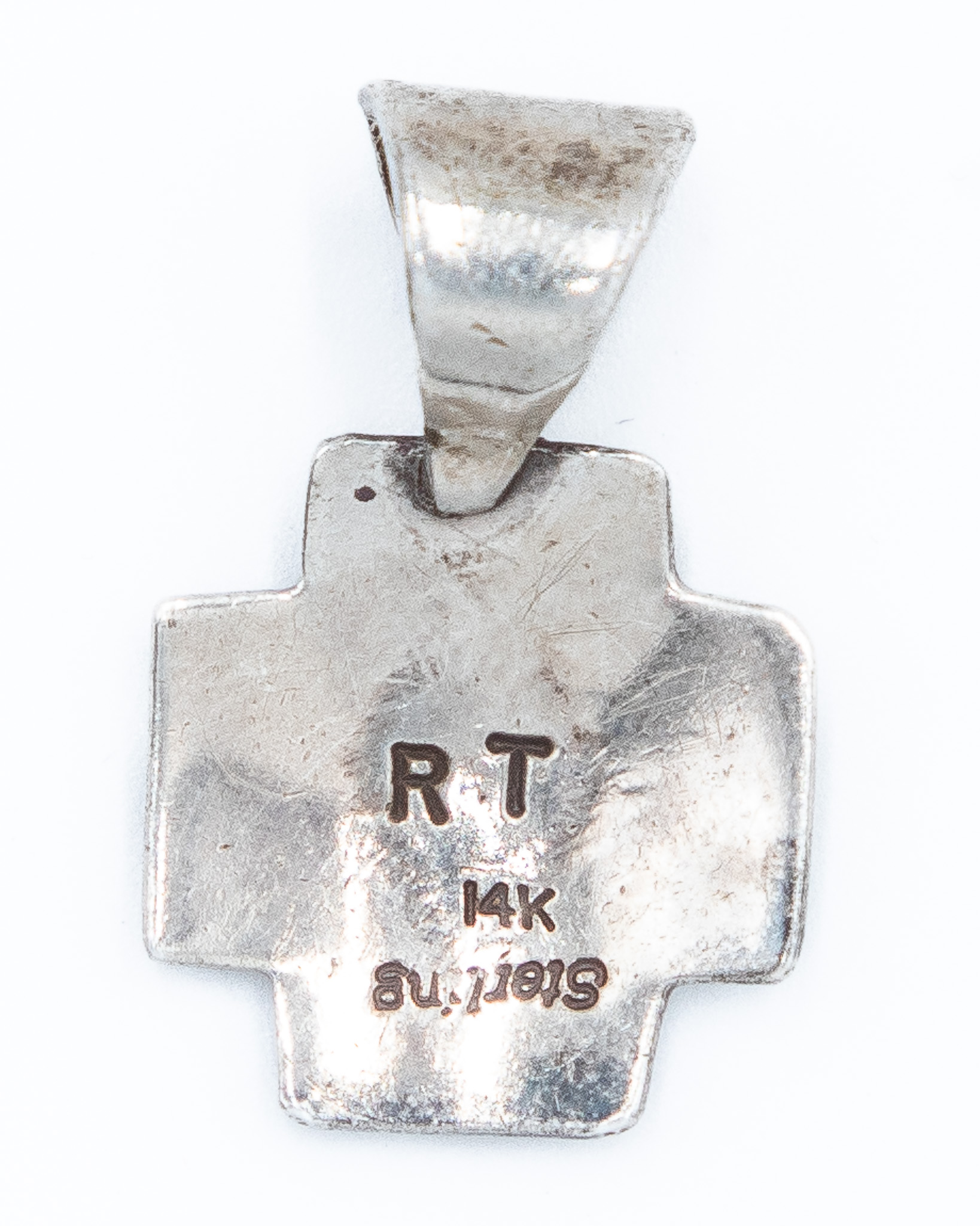 Signed RT Navajo 14K Gold Sterling Cross Pendant 3g