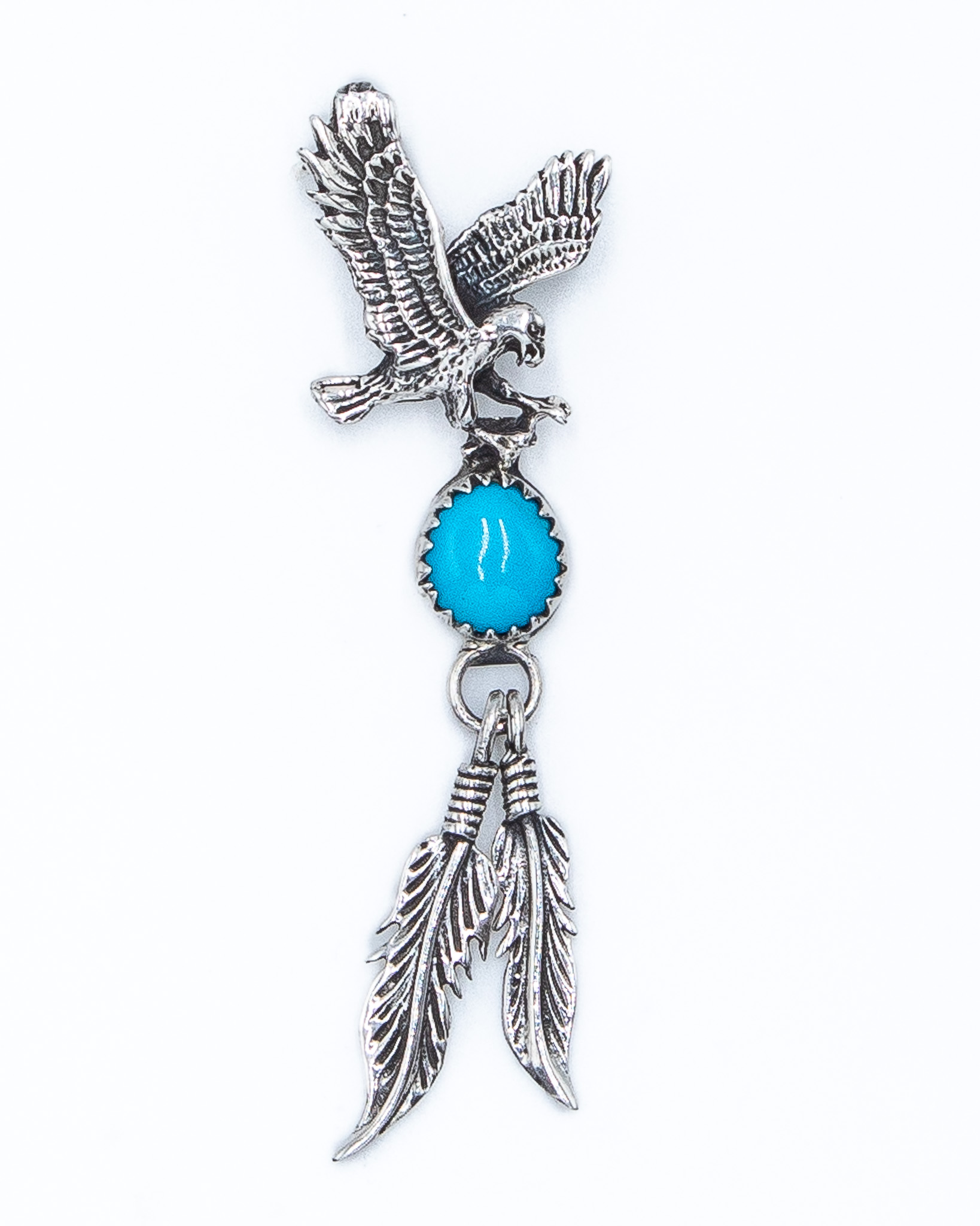 Richard Begay Navajo Turquoise Sterling Eagle Feather Pendant