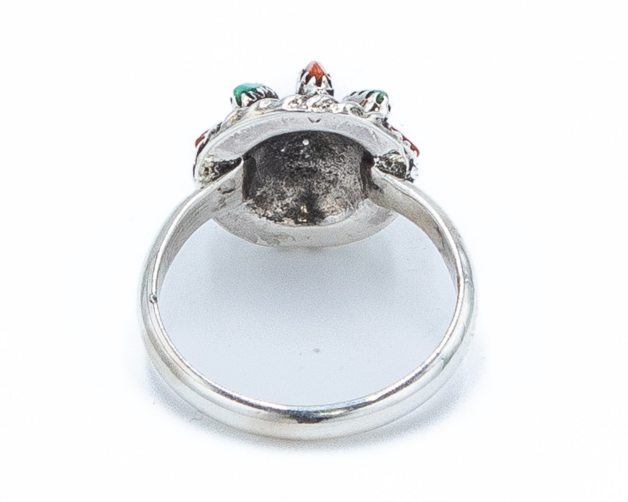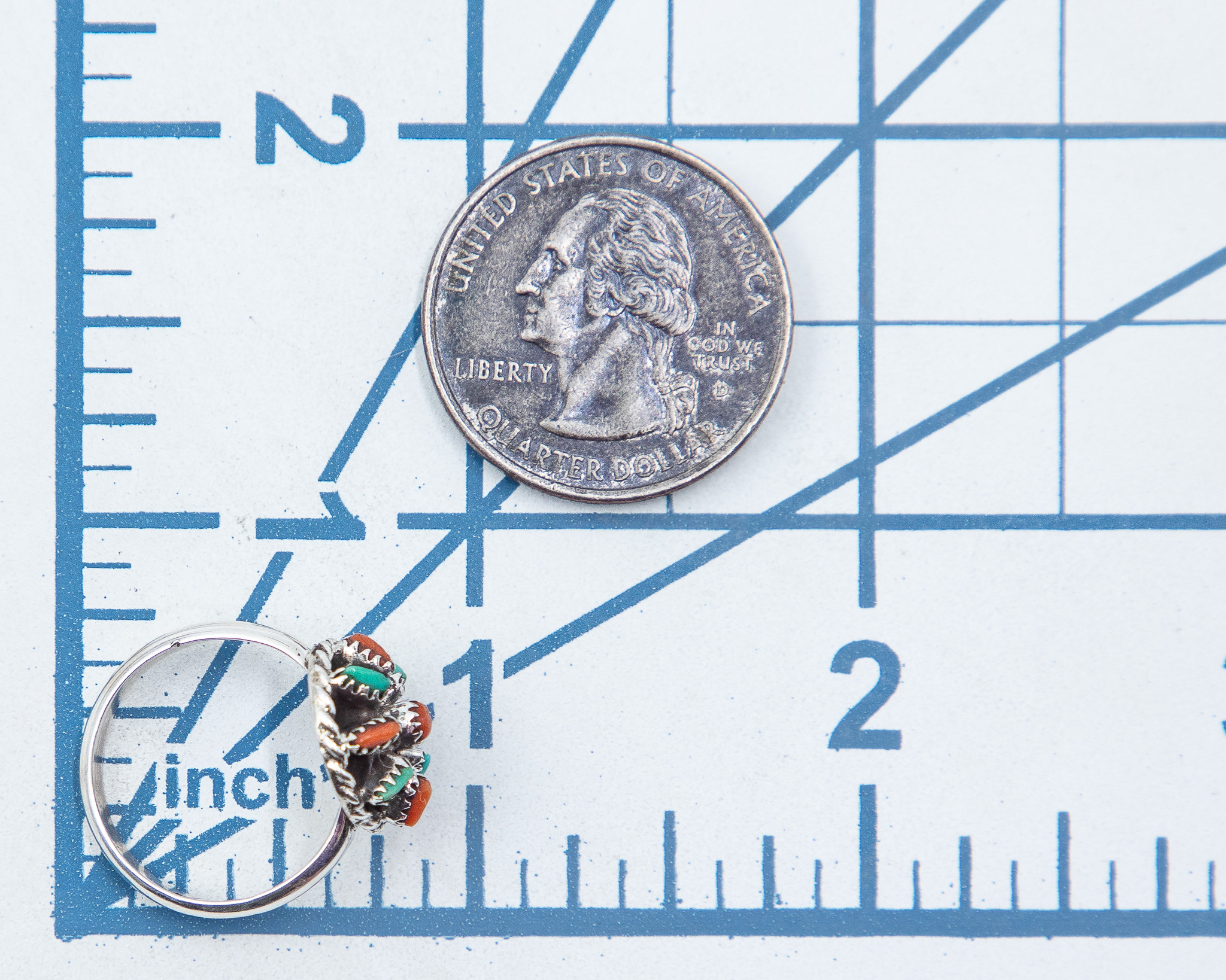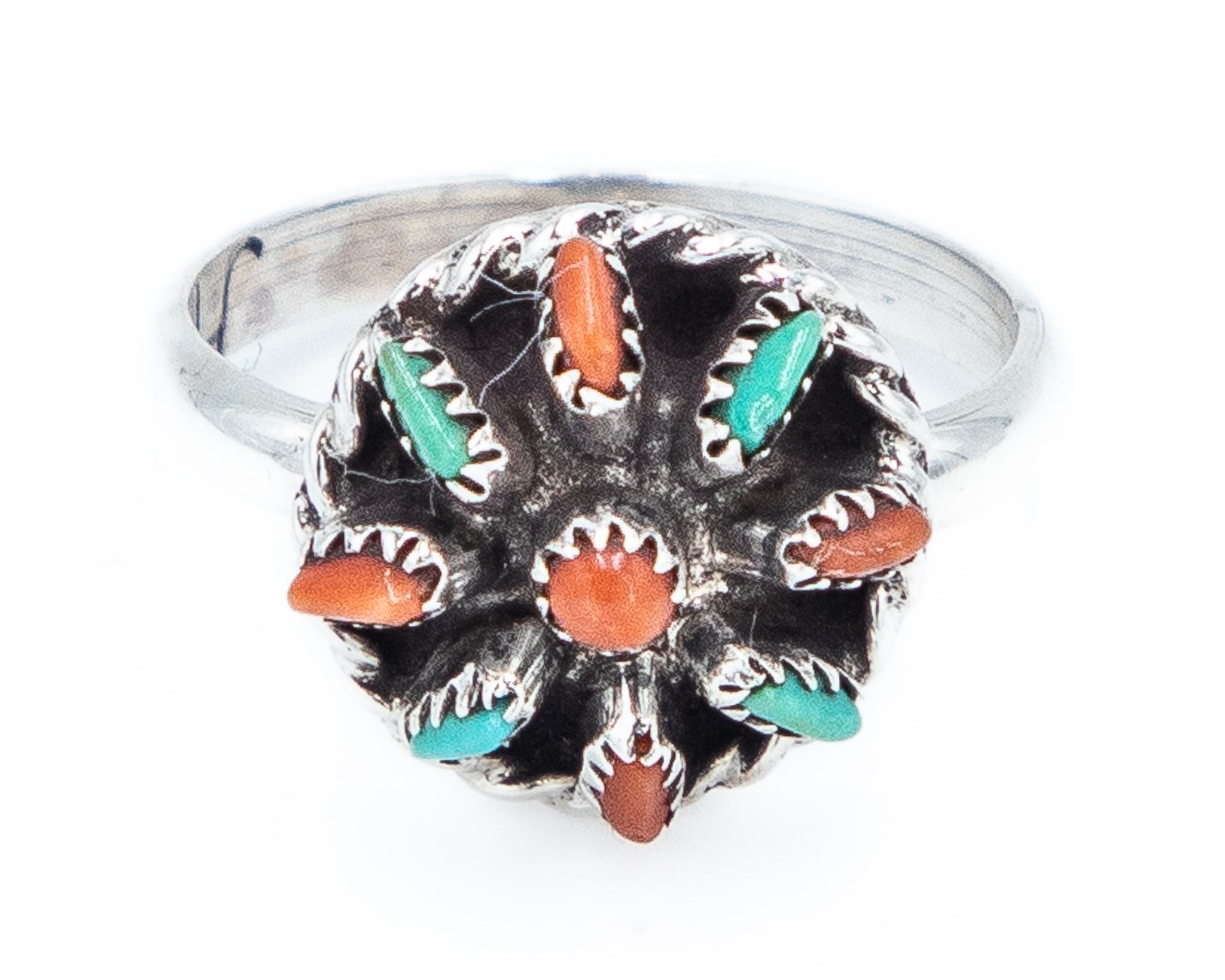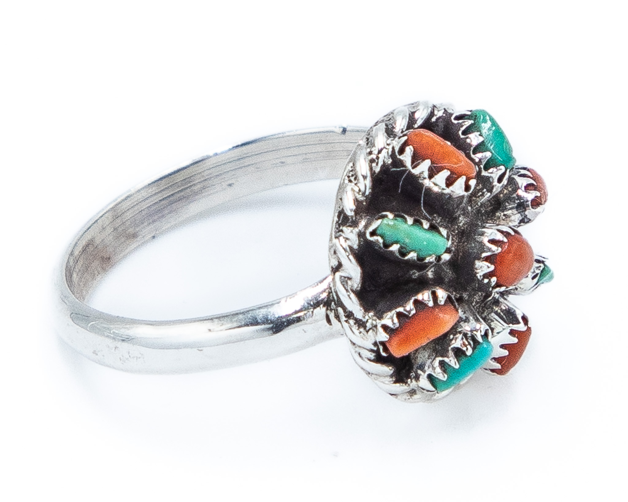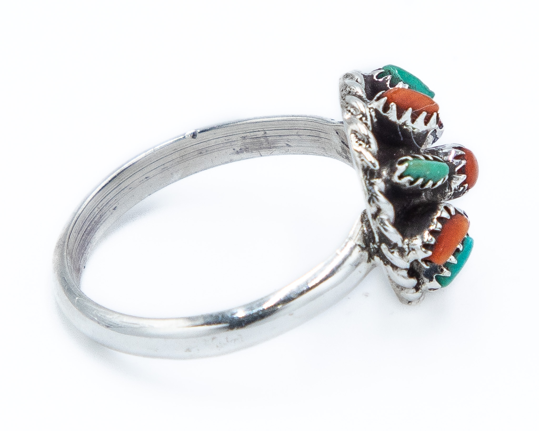 Signed JHK Zuni Needlepoint Coral Turquoise Sterling Ring Sz 6, 3g