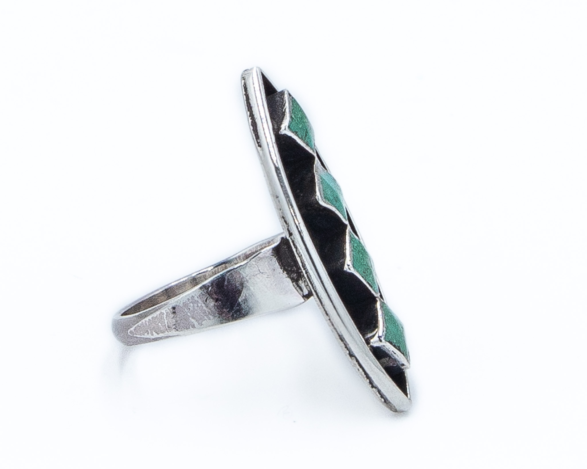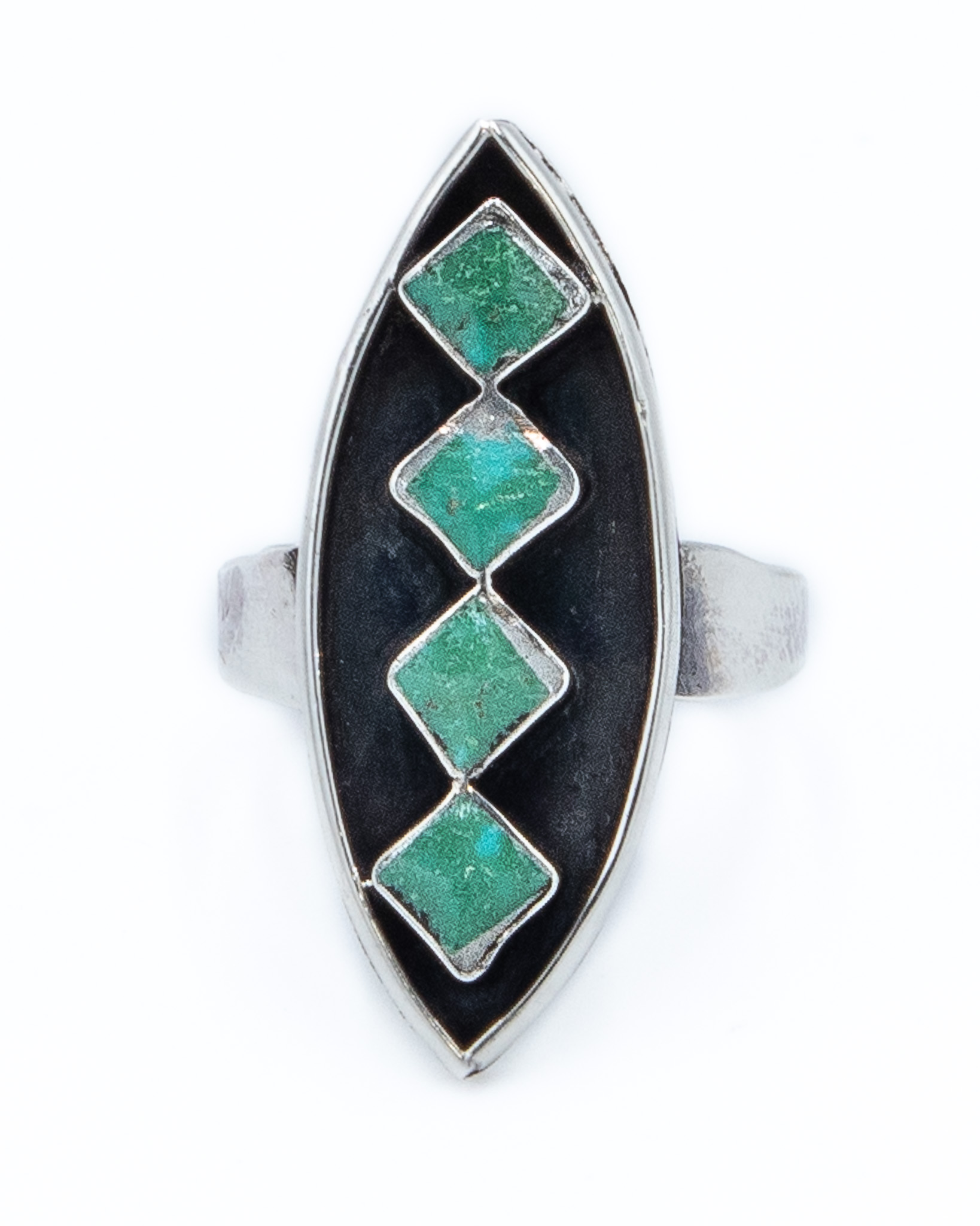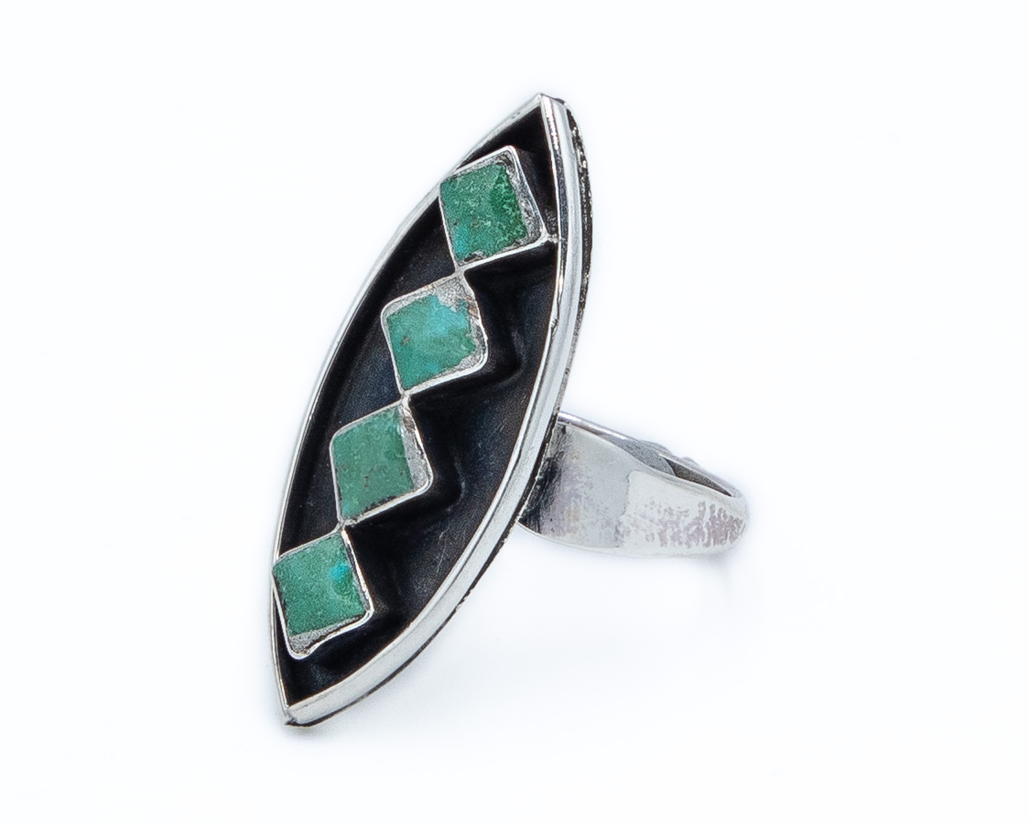 Navajo Turquoise Sterling Shadow Box Ring Sz 6.5, 3.5g