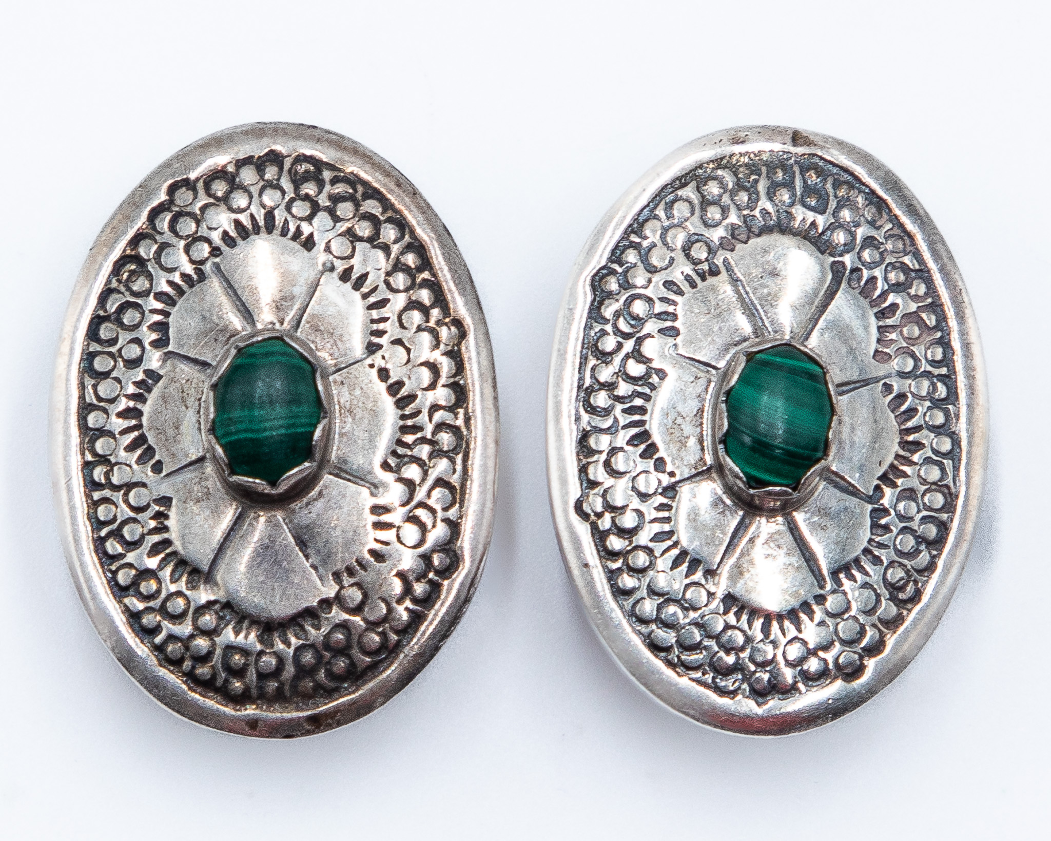 Vintage Navajo Malachite Sterling Floral Concho Earrings