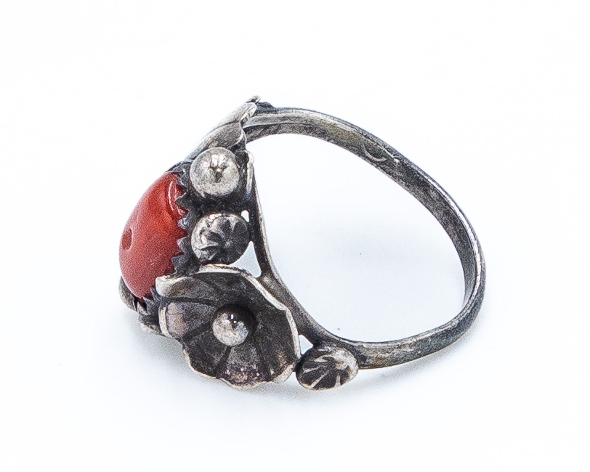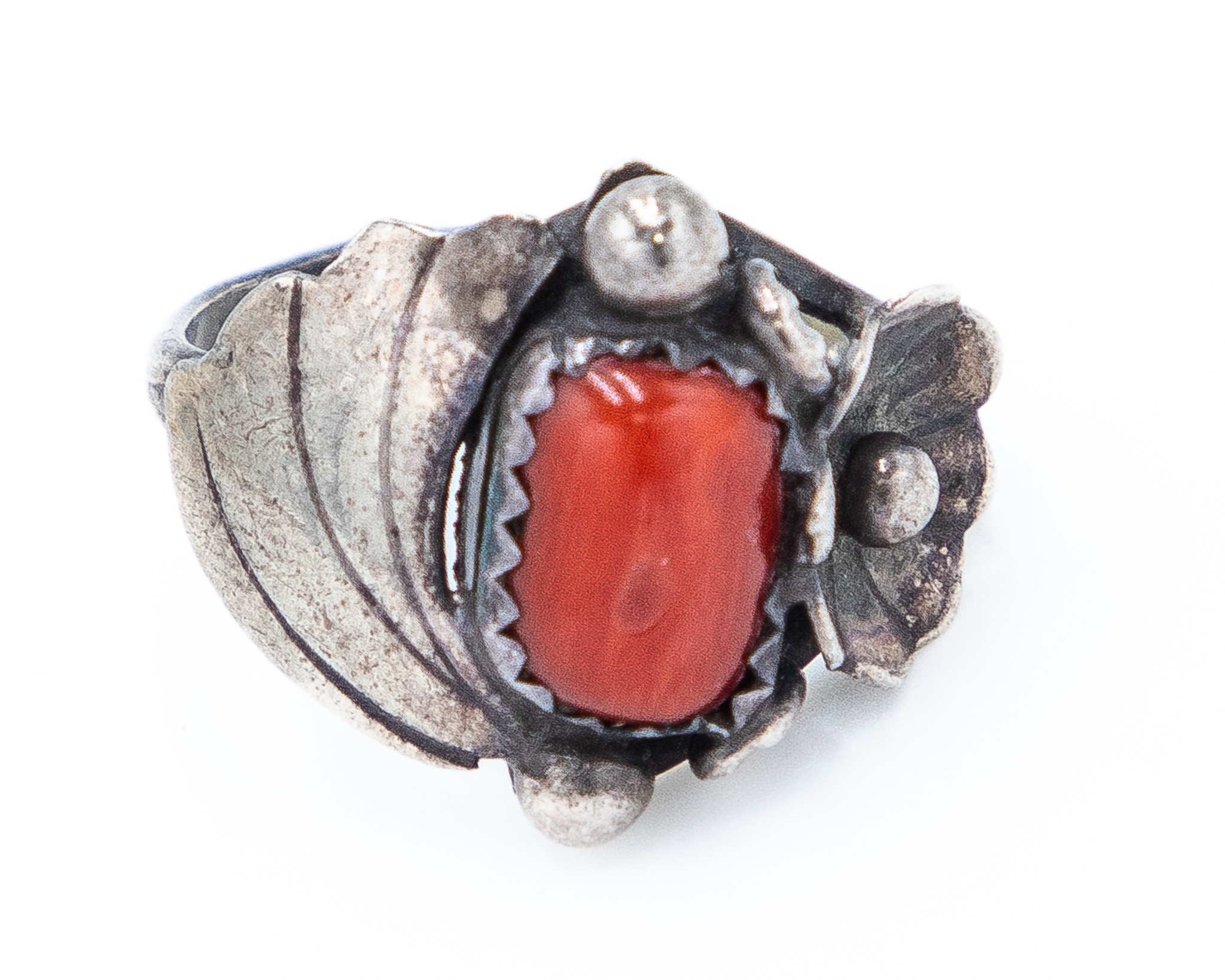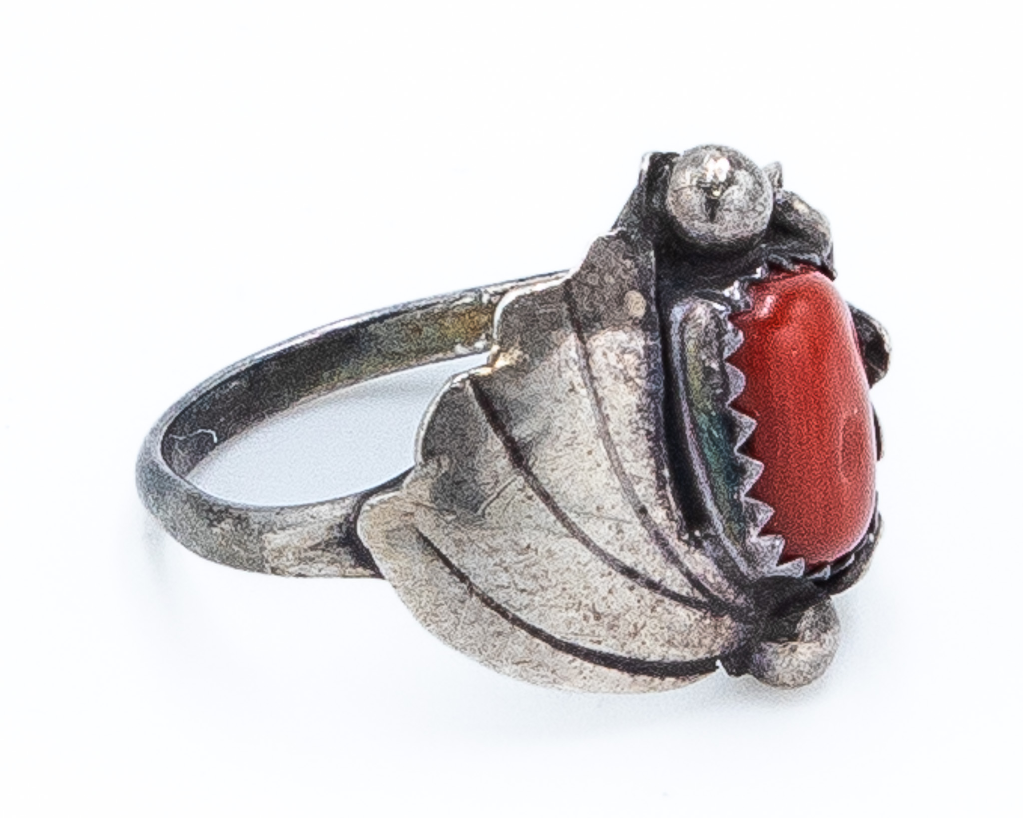 Vintage Navajo Coral Sterling Blossom Ring Sz 4, 3g