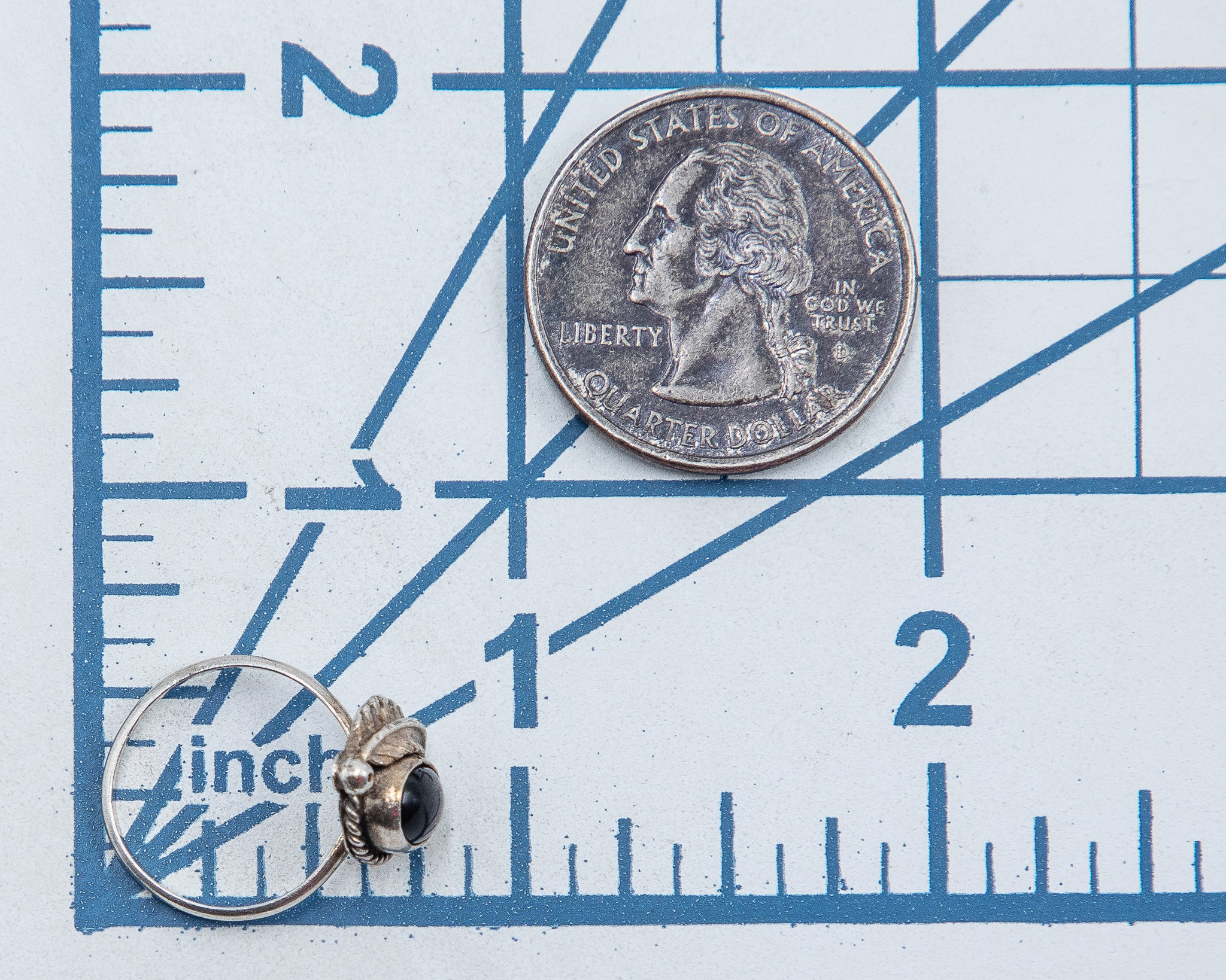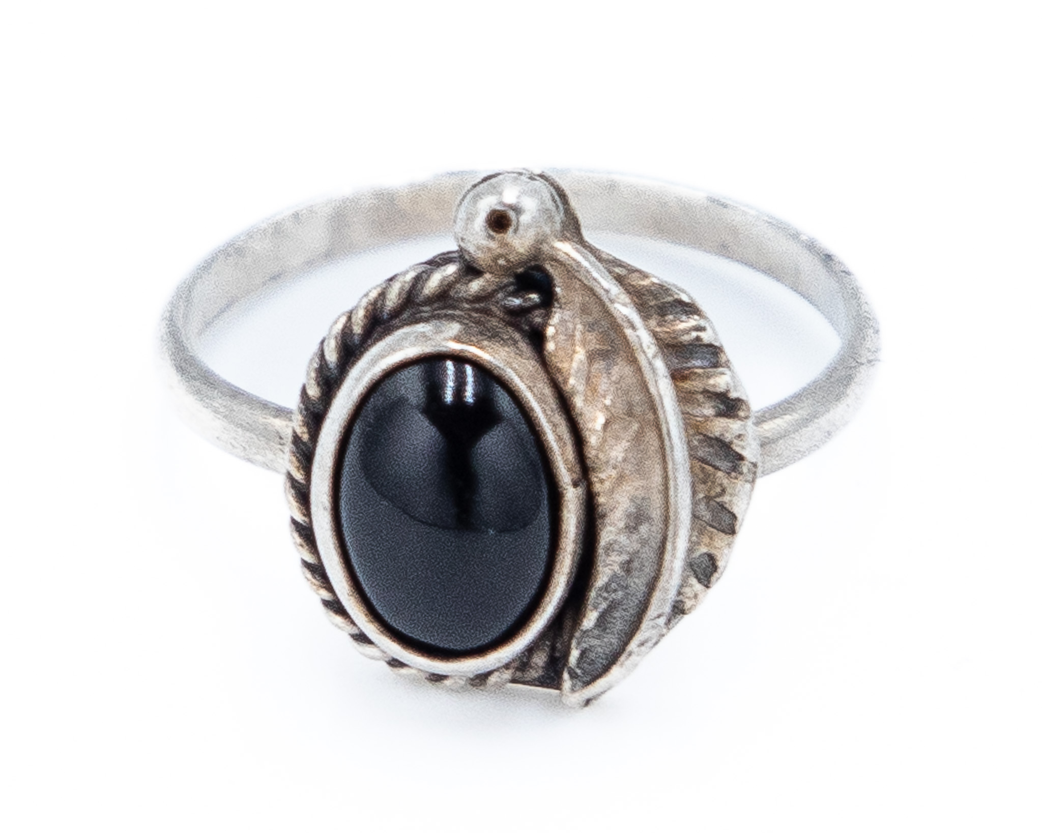 Vintage Navajo Onyx Sterling Ring Sz 3.5, 2g
