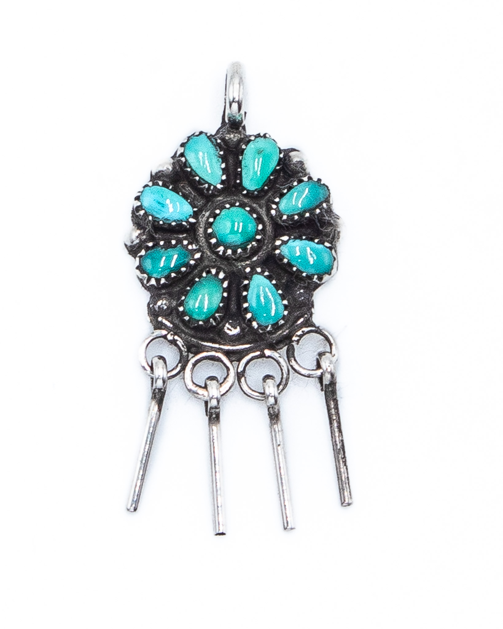Sam Poblano Zuni Green Blue Turquoise Sterling Pendant 2.5g