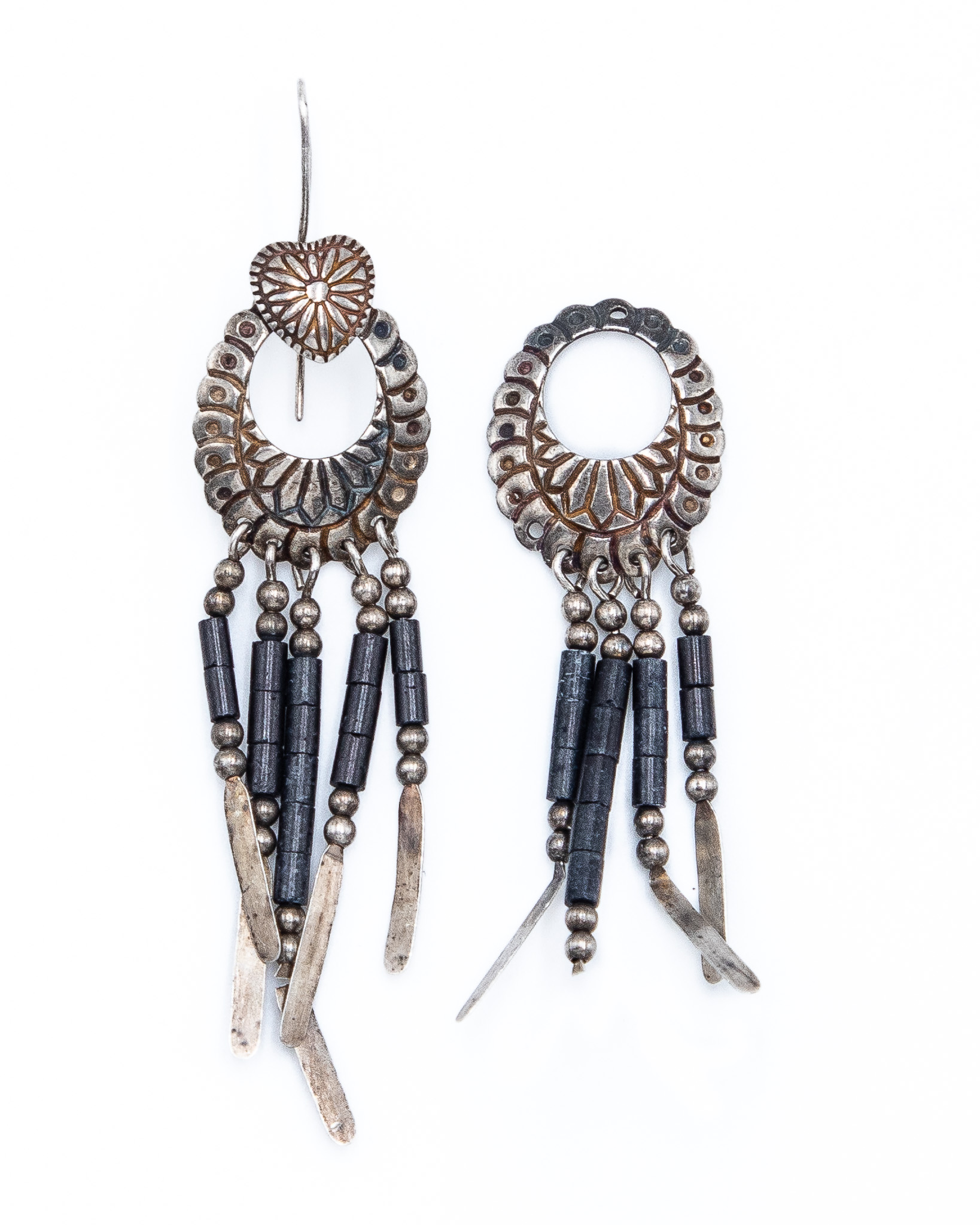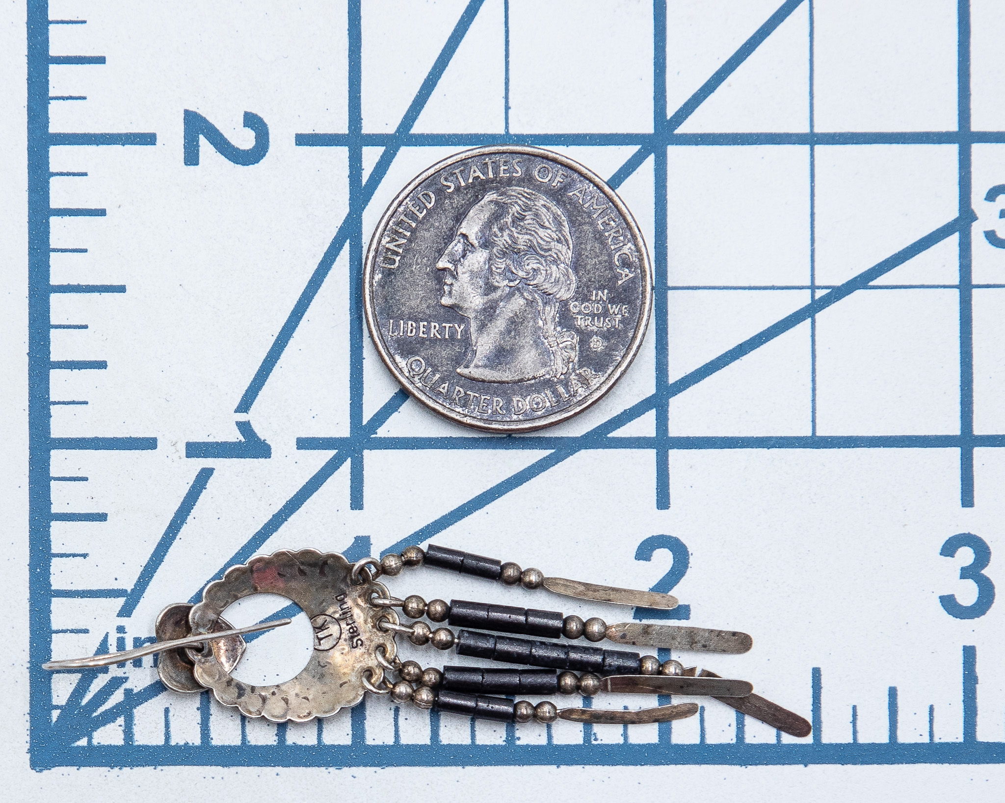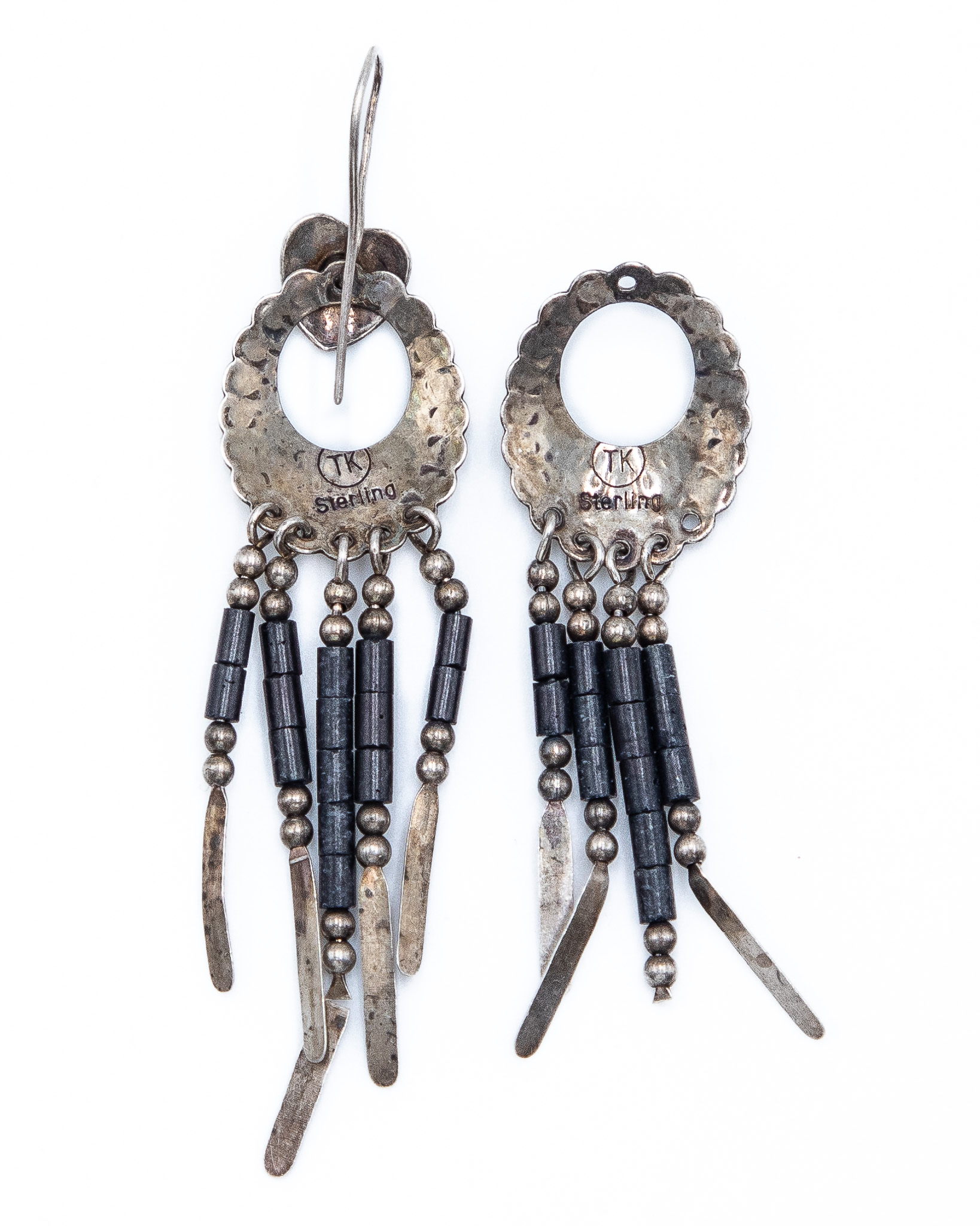 Signed TK Navajo Onyx Sterling Fringe Earrings 4g-Missing Hook