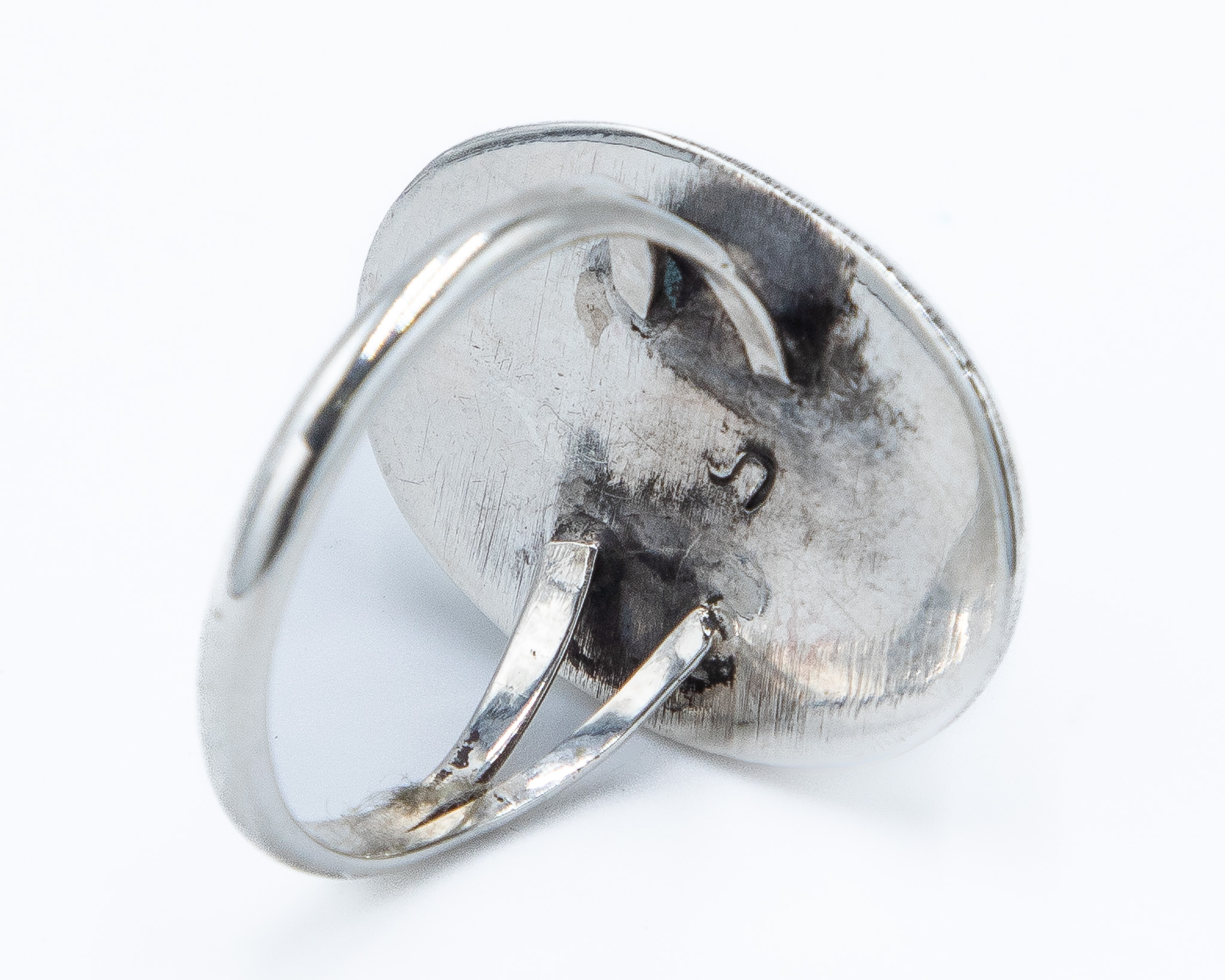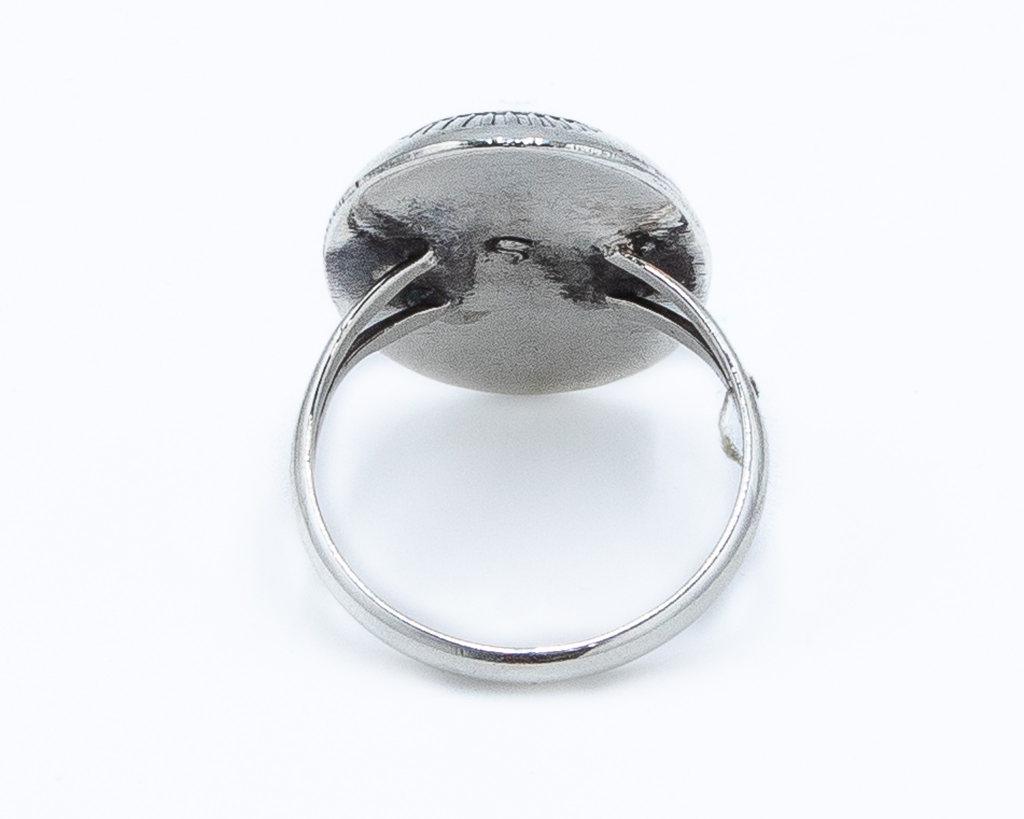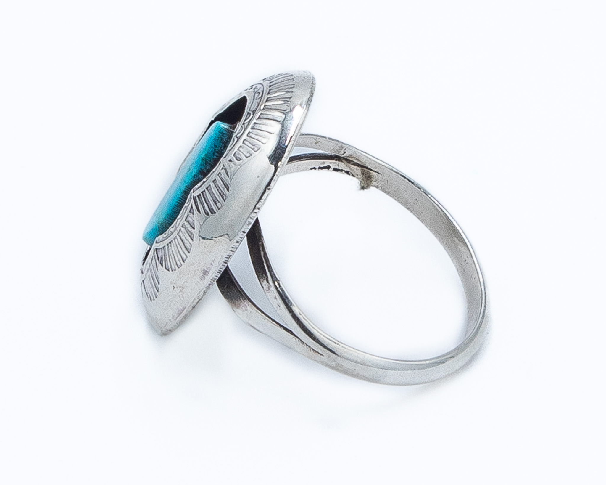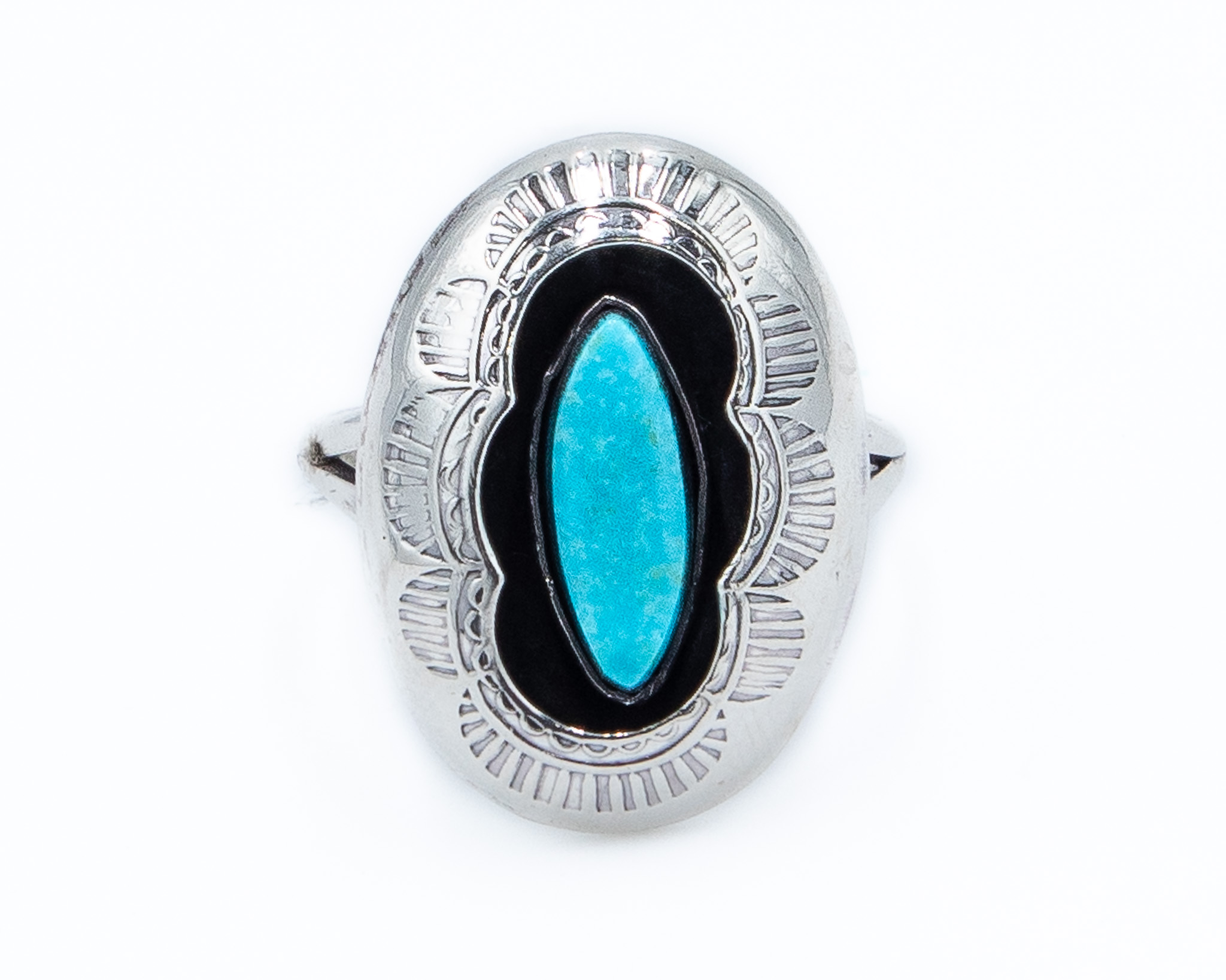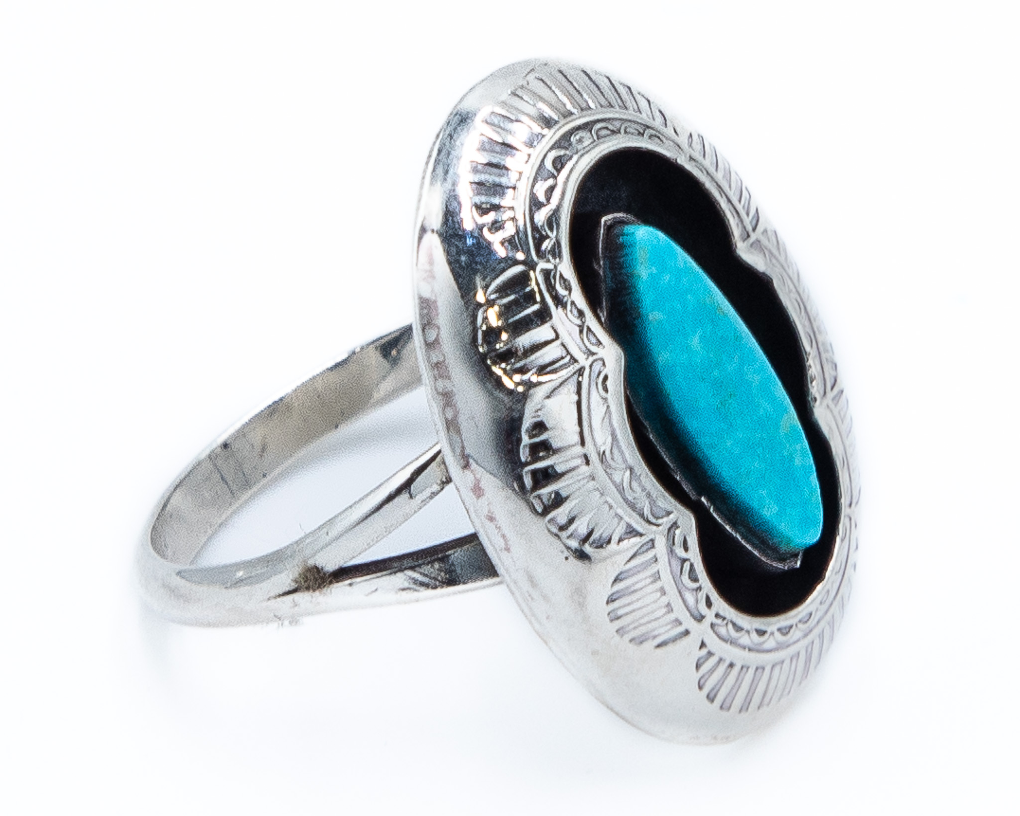Signed S Navajo Turquoise Sterling Shadow Box Ring Sz 10, 4g