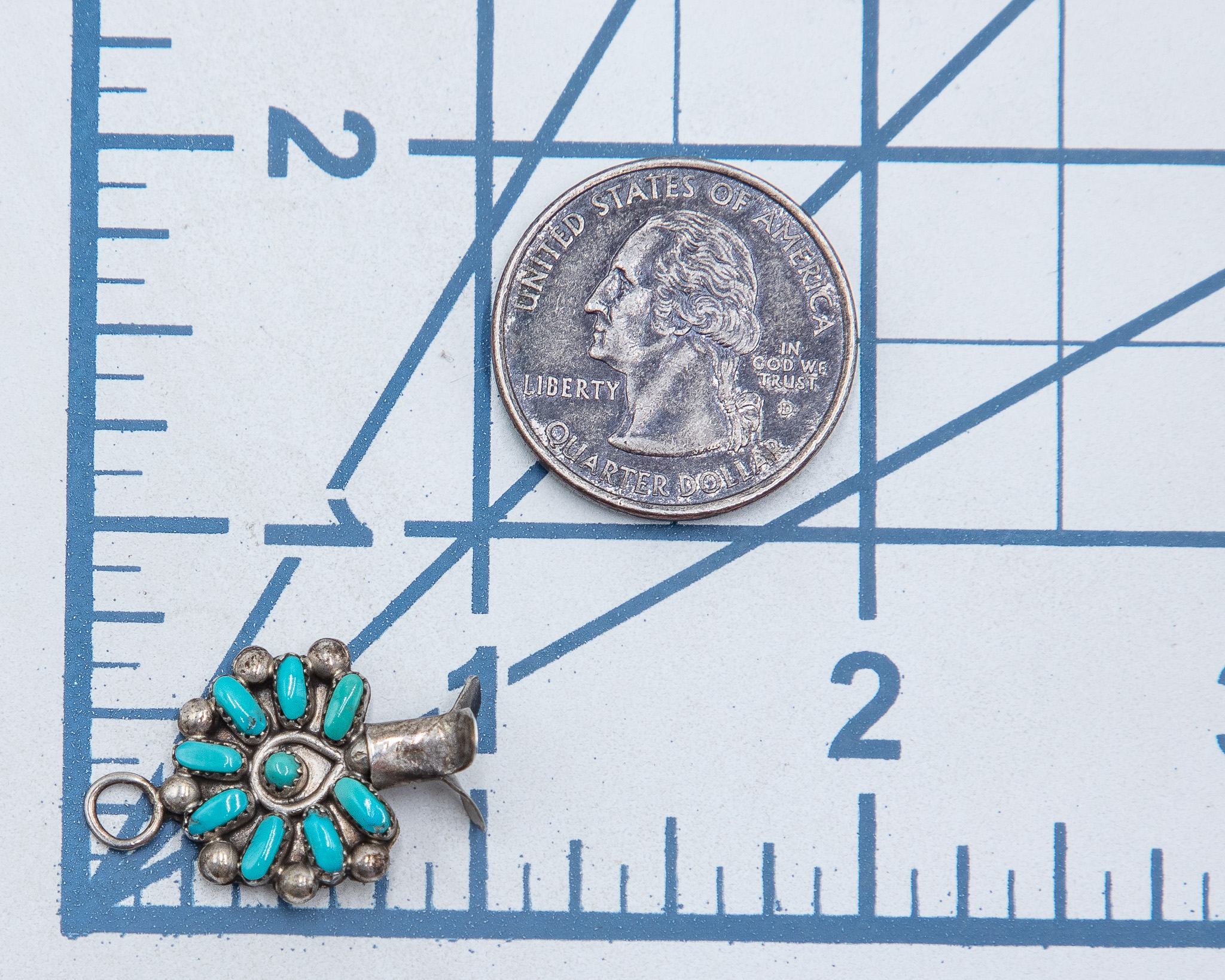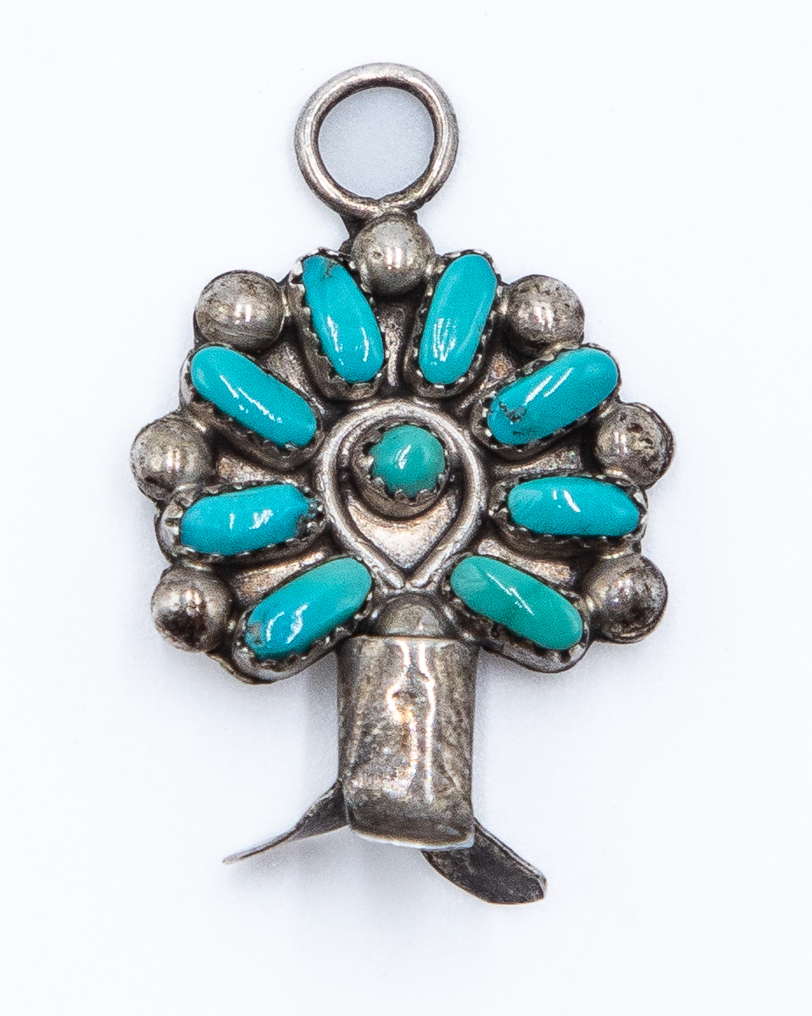 Vintage Navajo Turquoise Sterling Squash Blossom Pendant 2.5g