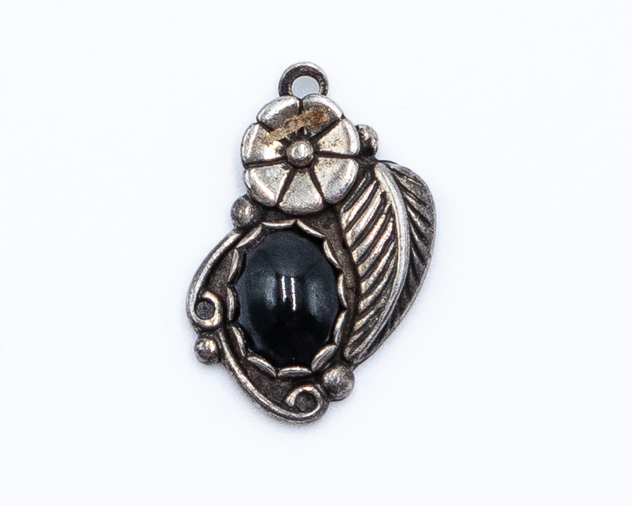 Wheeler Manufacturing Of Lemmon Navajo Style Onyx Sterling Blossom Pendant 3g