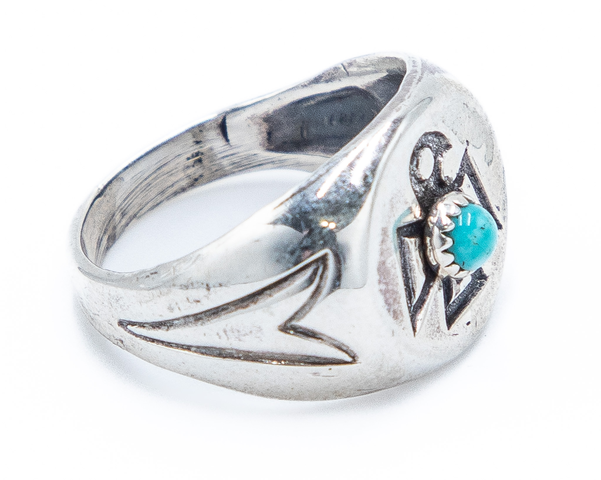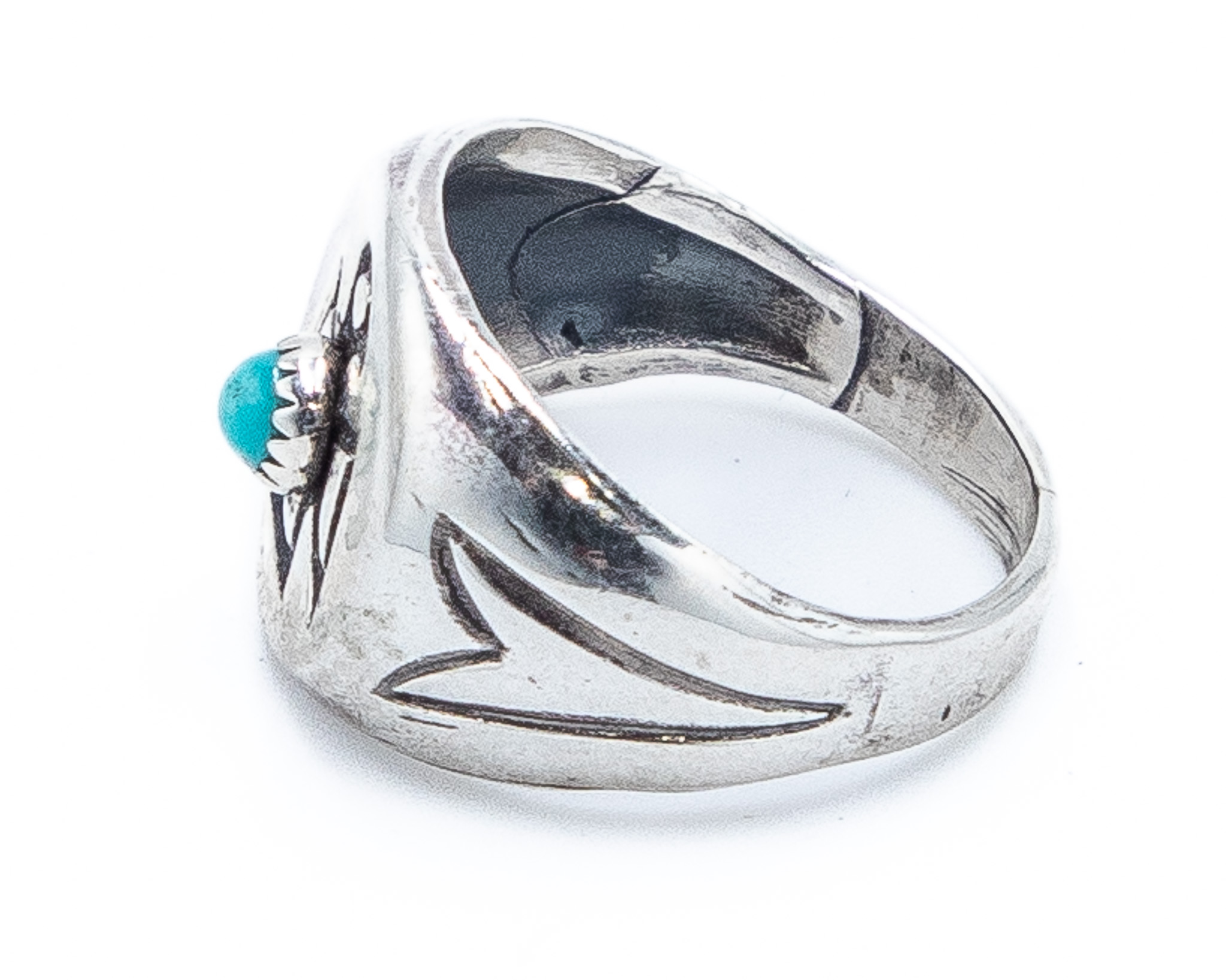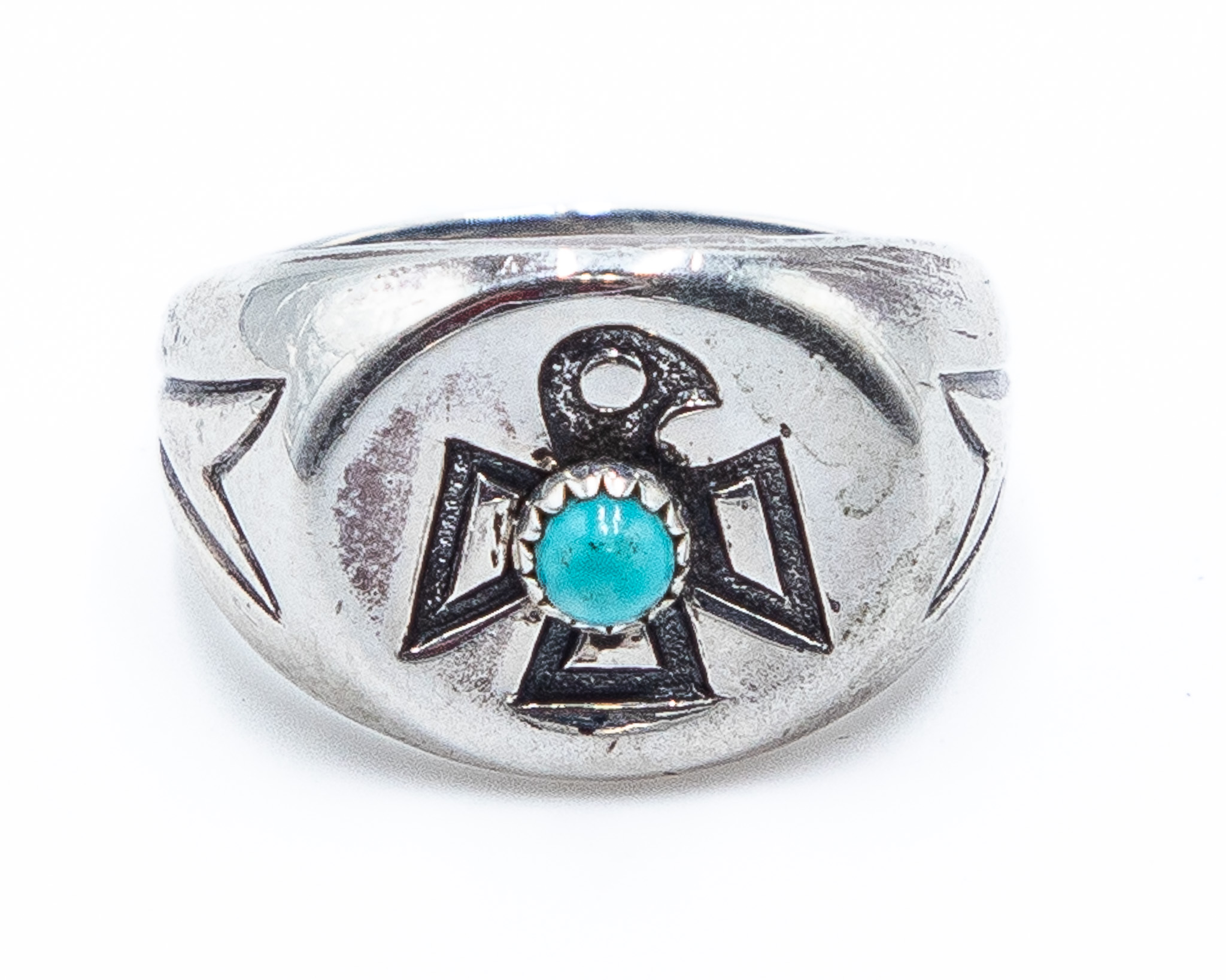 Bell Trading Post Snake Eye Turquoise Sterling Thunderbird Ring Sz 5.25, 4.5g