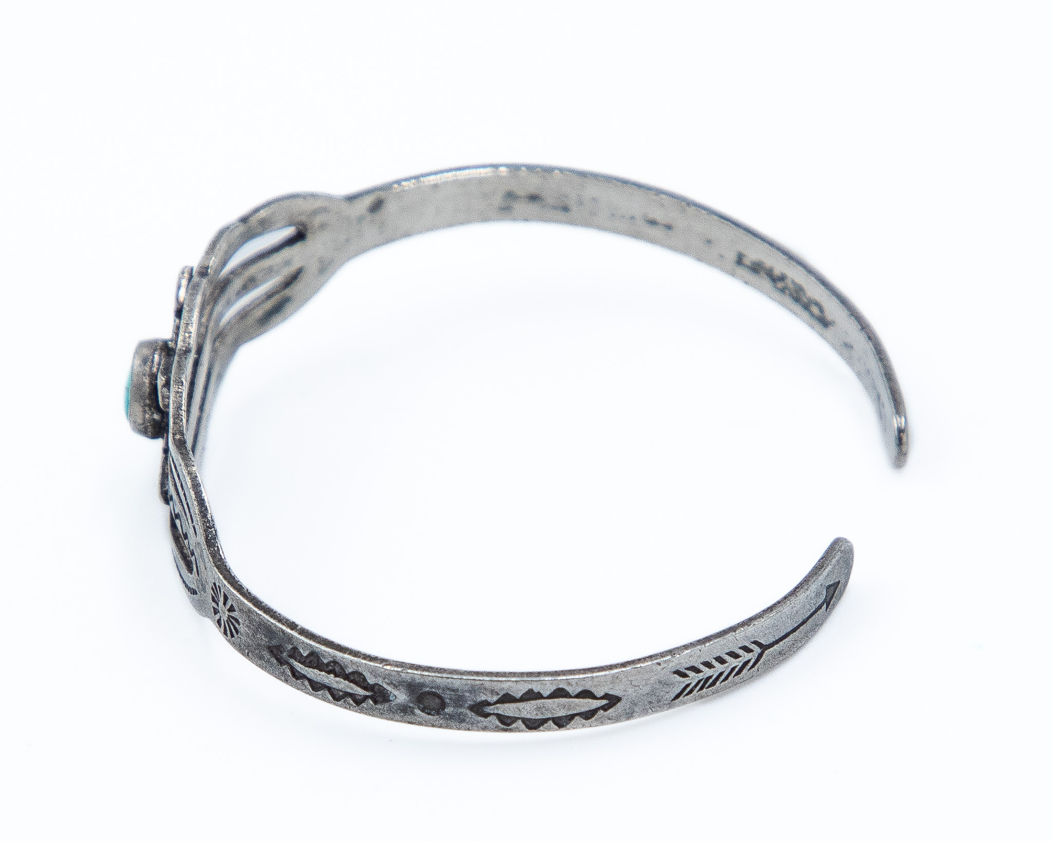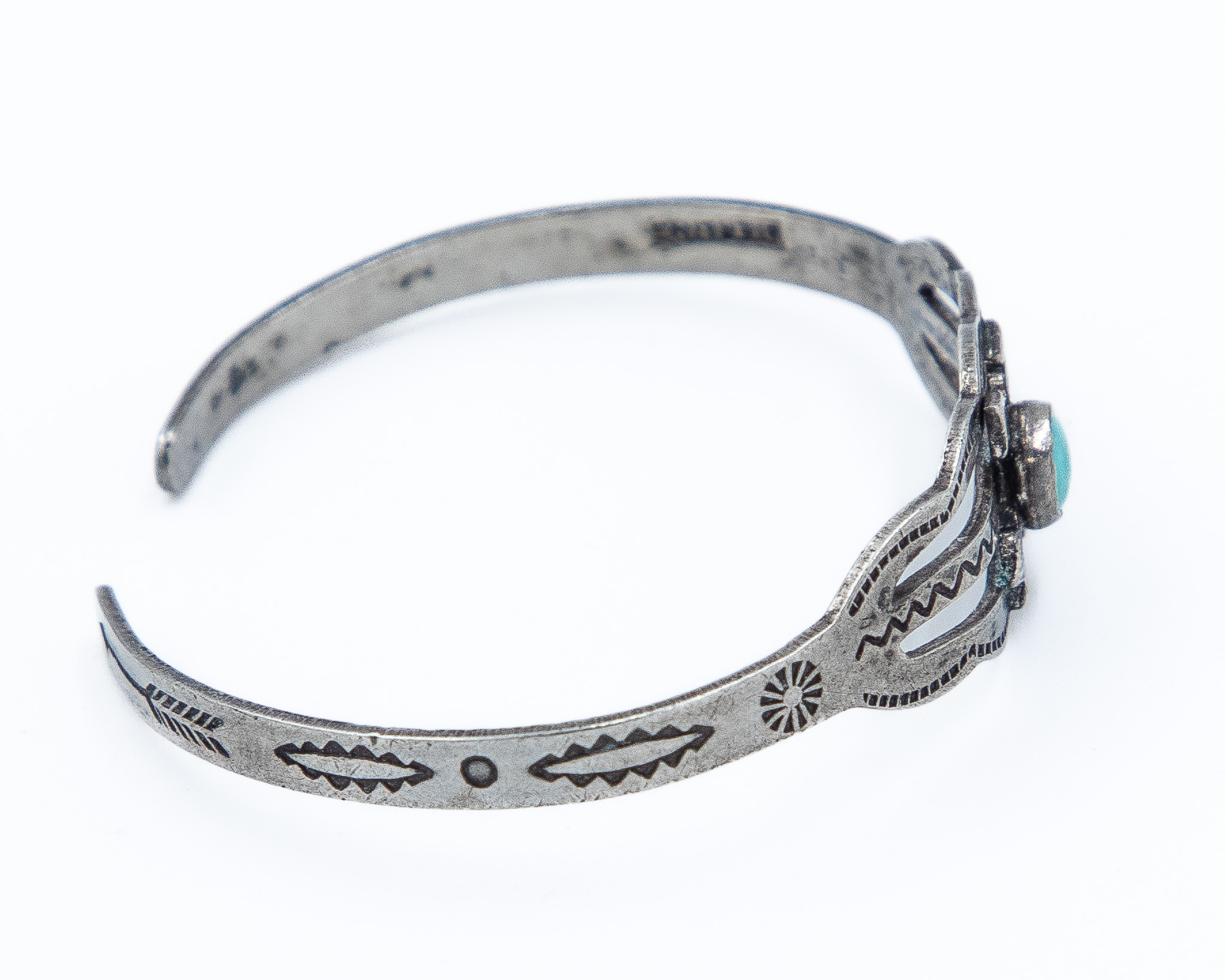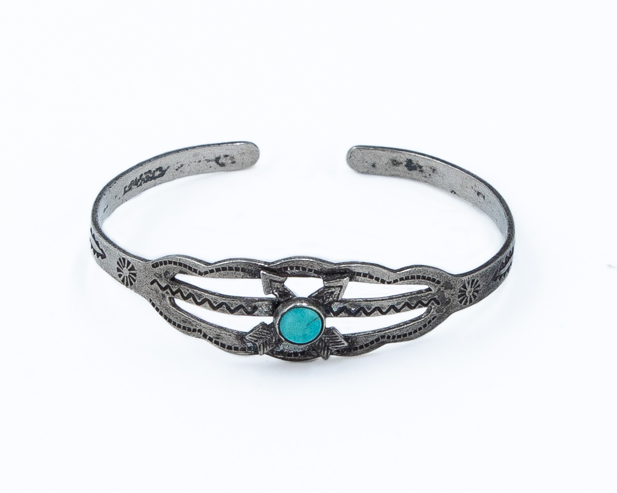 Fred Harvey Era Turquoise Sterling Double Arrow Baby Cuff Bracelet 3.5g