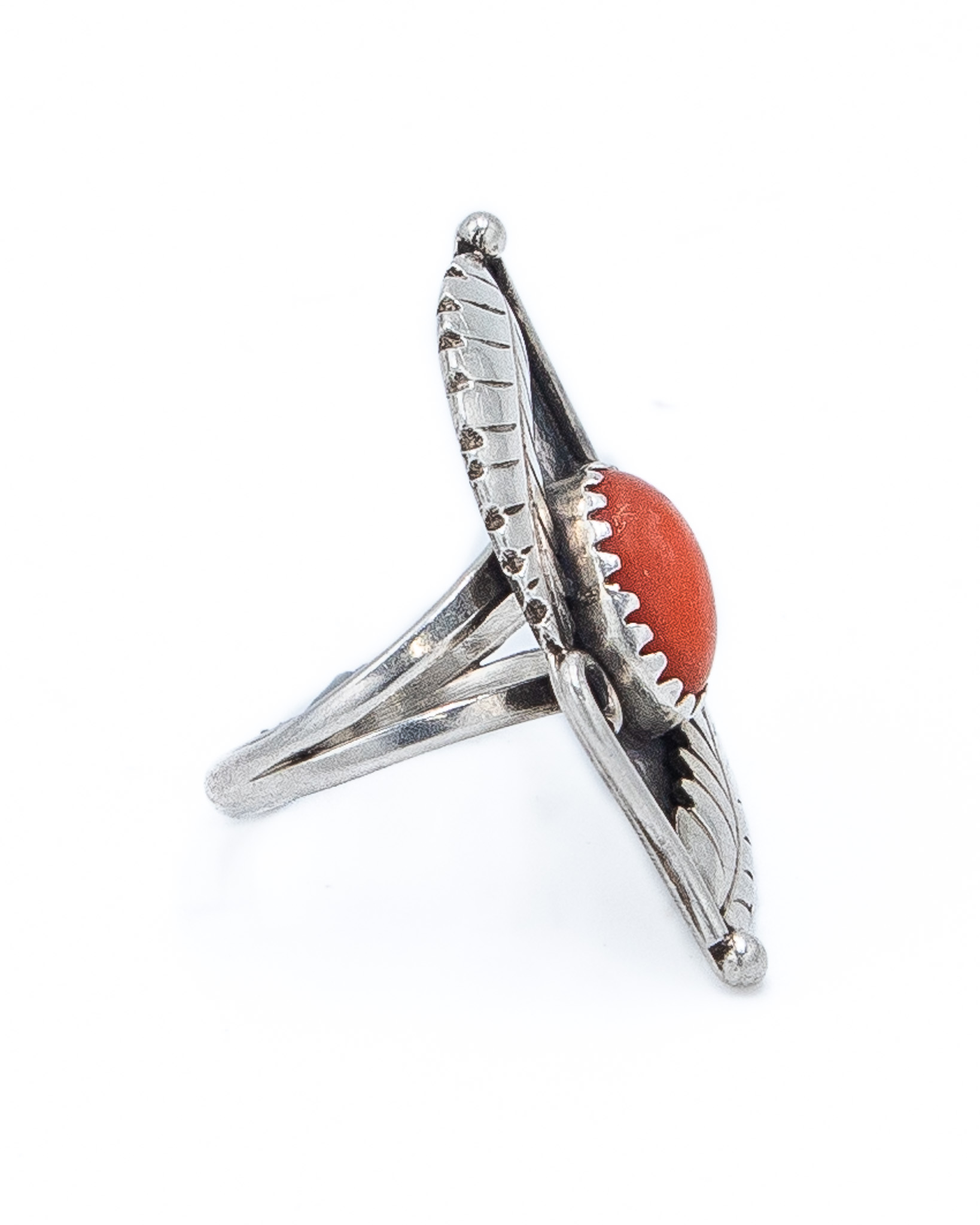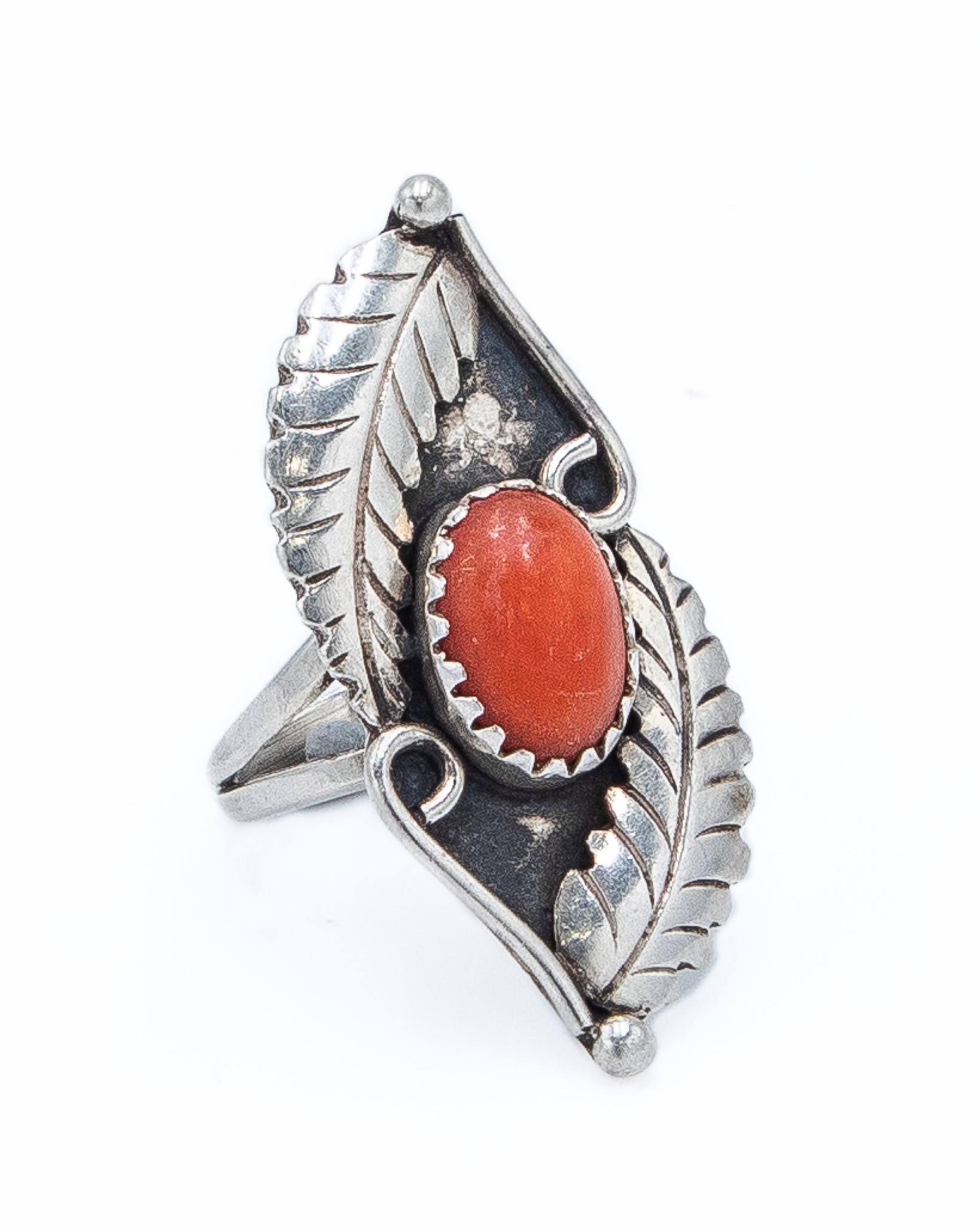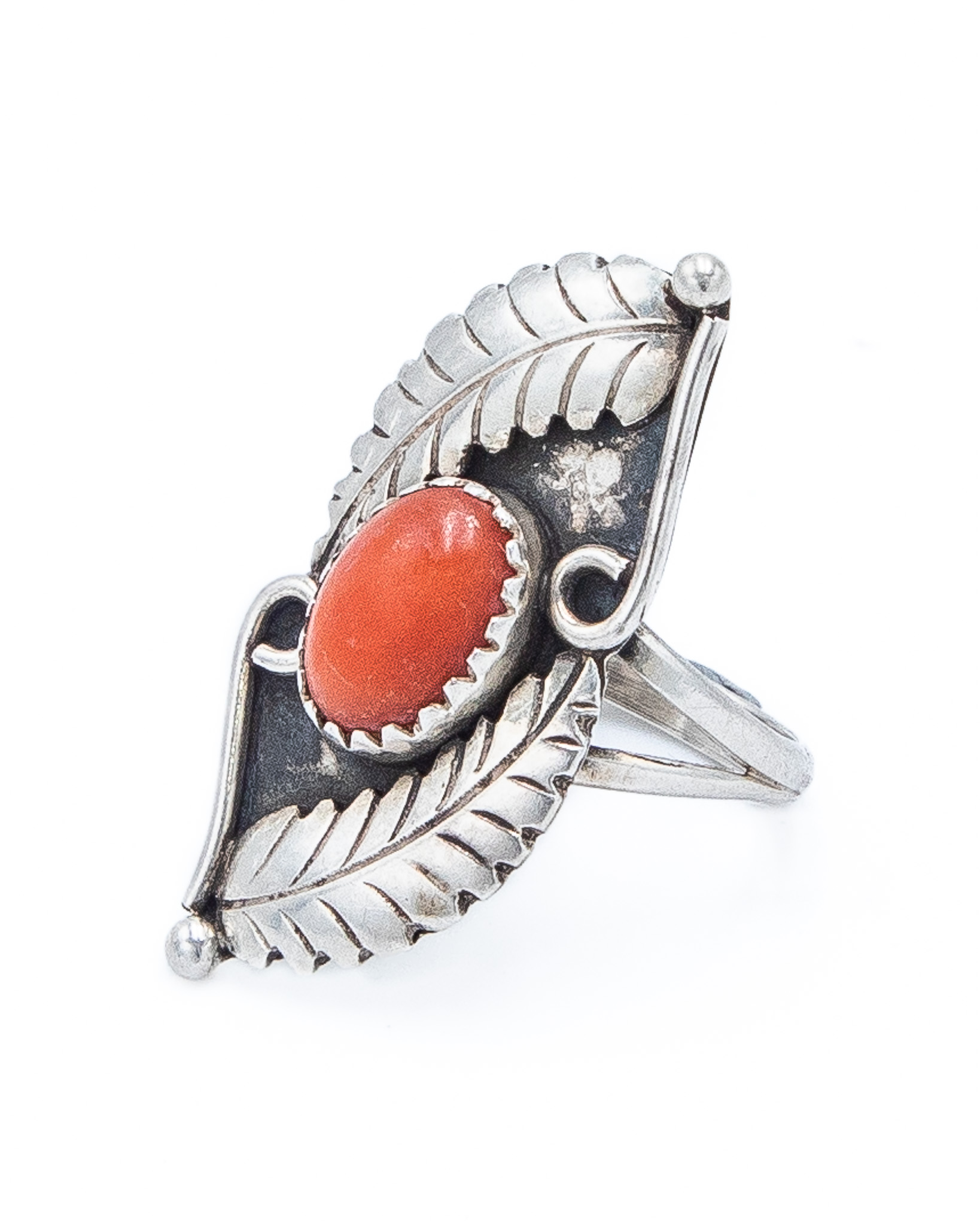 Vintage Navajo Coral Sterling Ring Sz 4.75, 5g