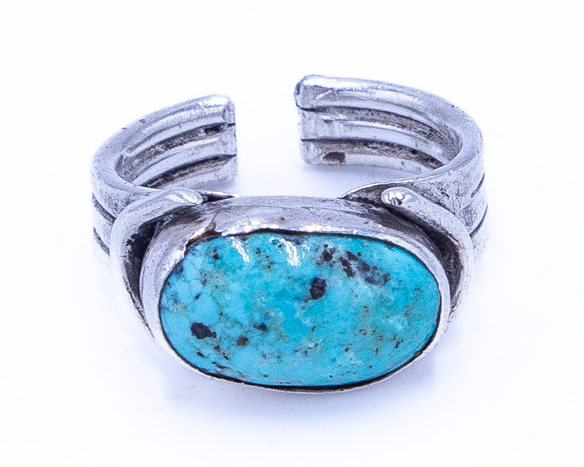 Vintage Navajo Turquoise Sterling Open Ring Sz 4.75, 5g