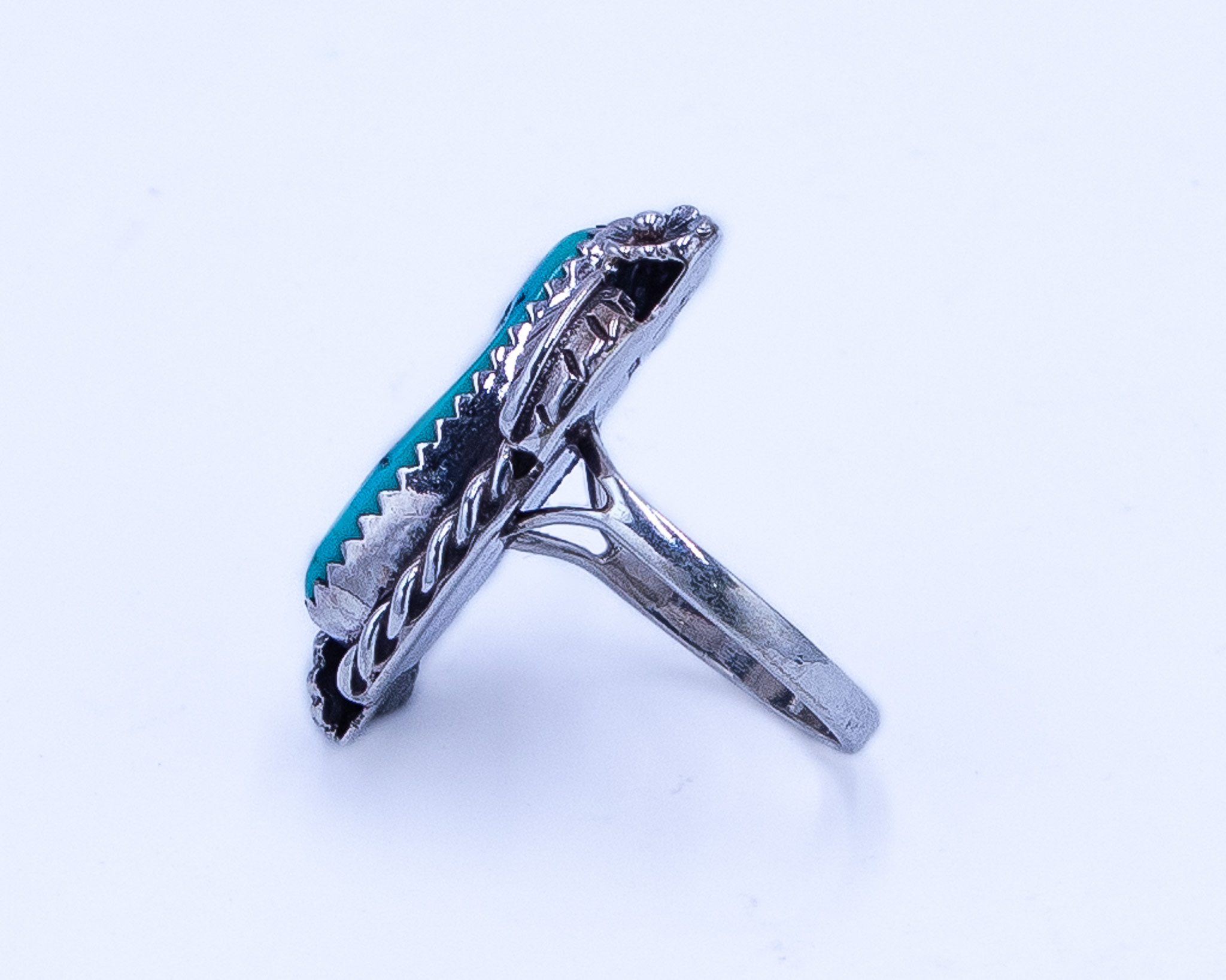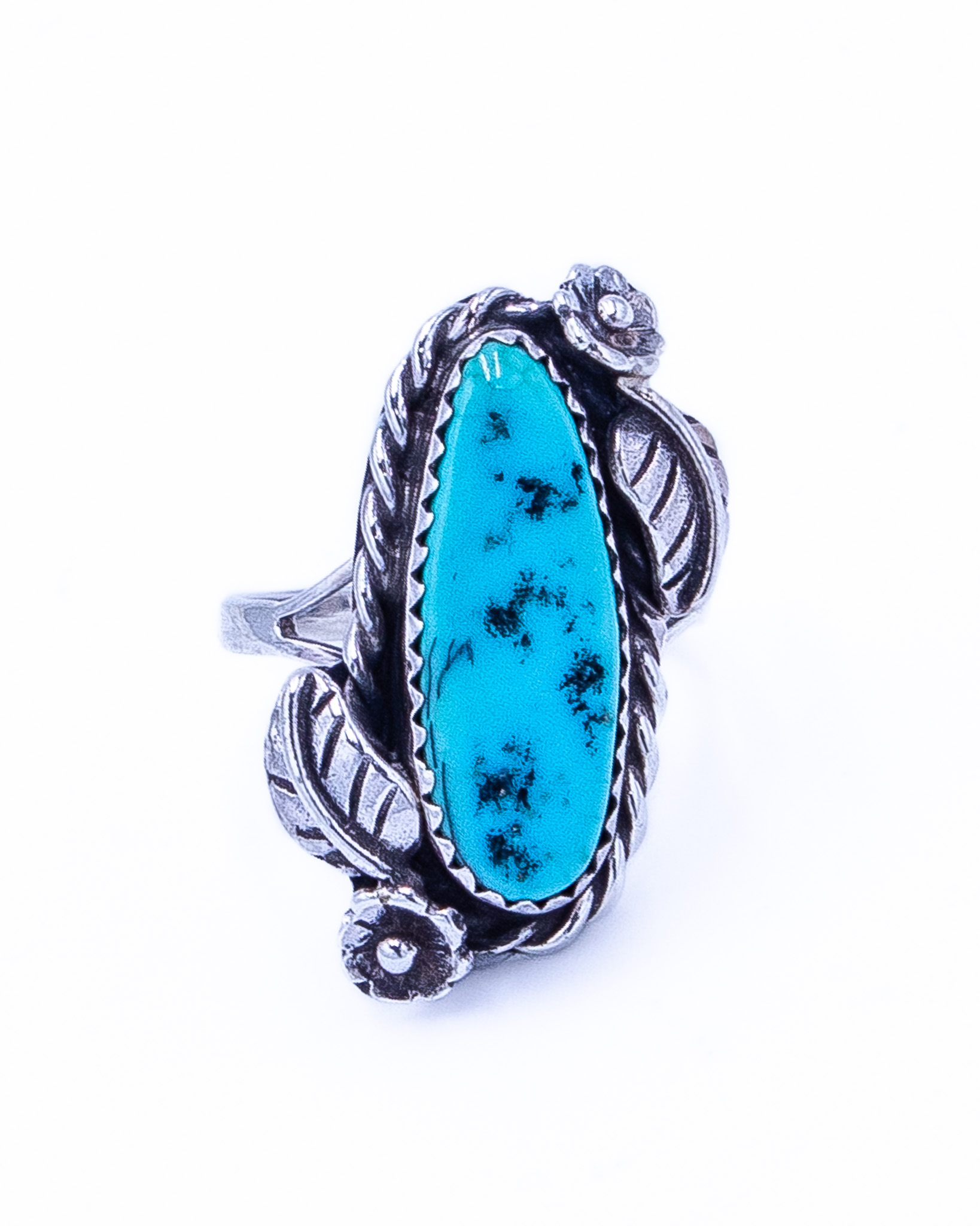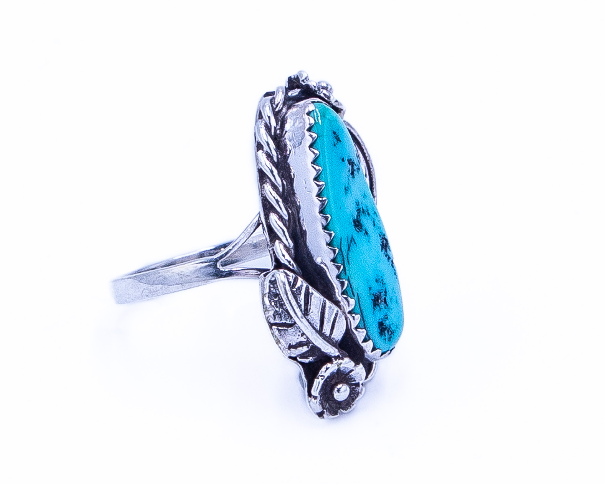 Marco Begay Navajo Turquoise Sterling Blossom Ring Sz 5.25, 5.5g