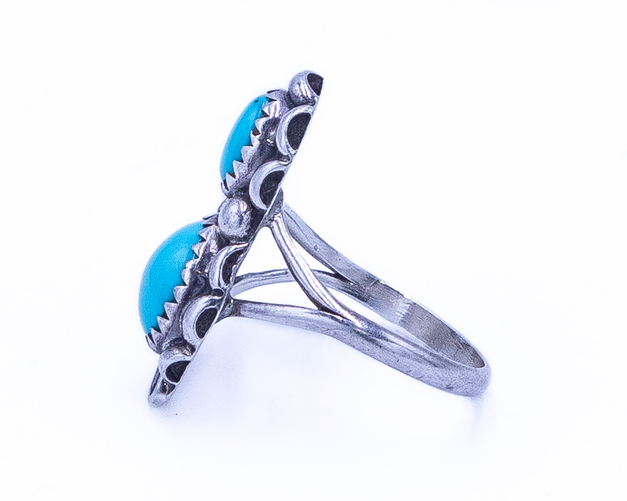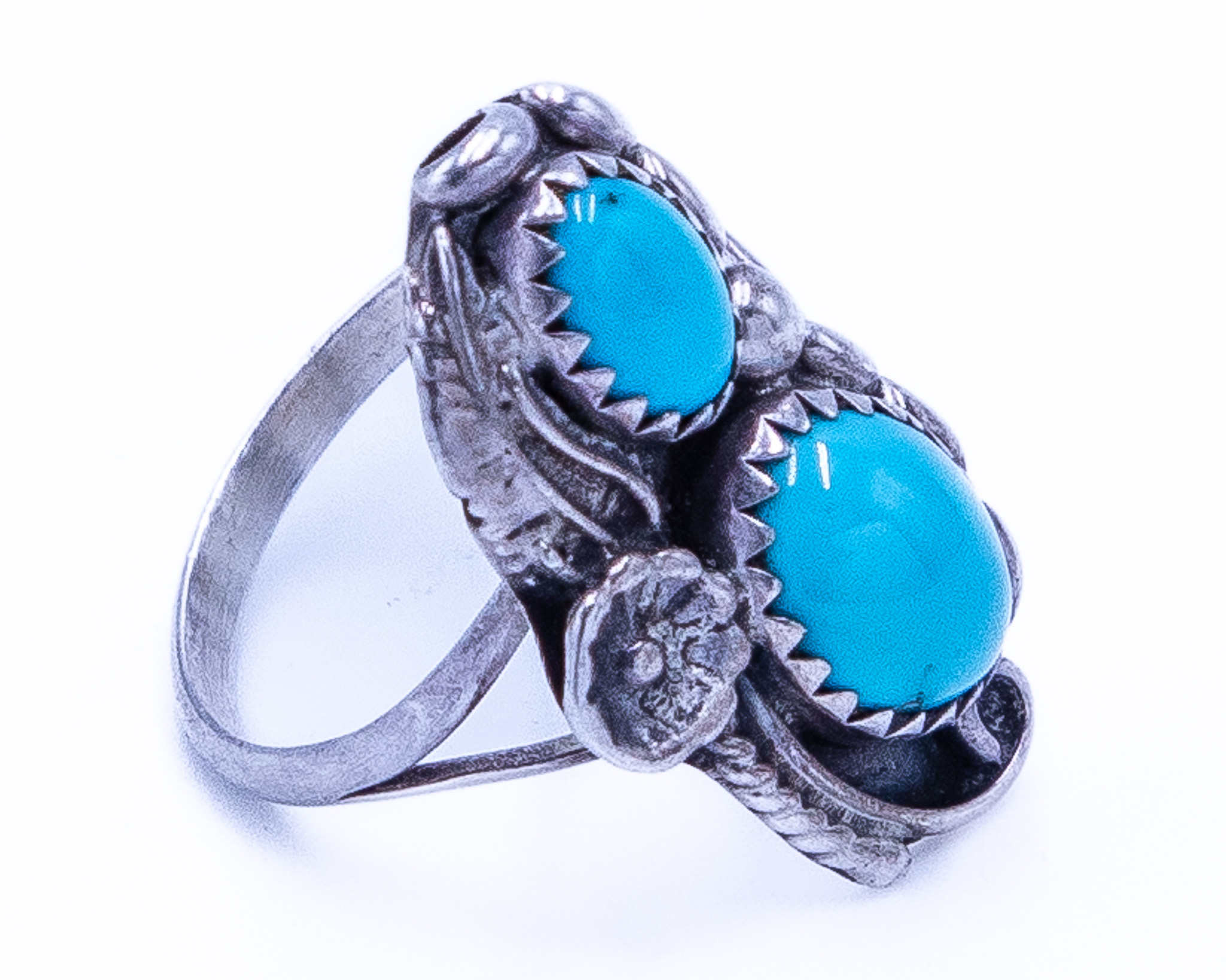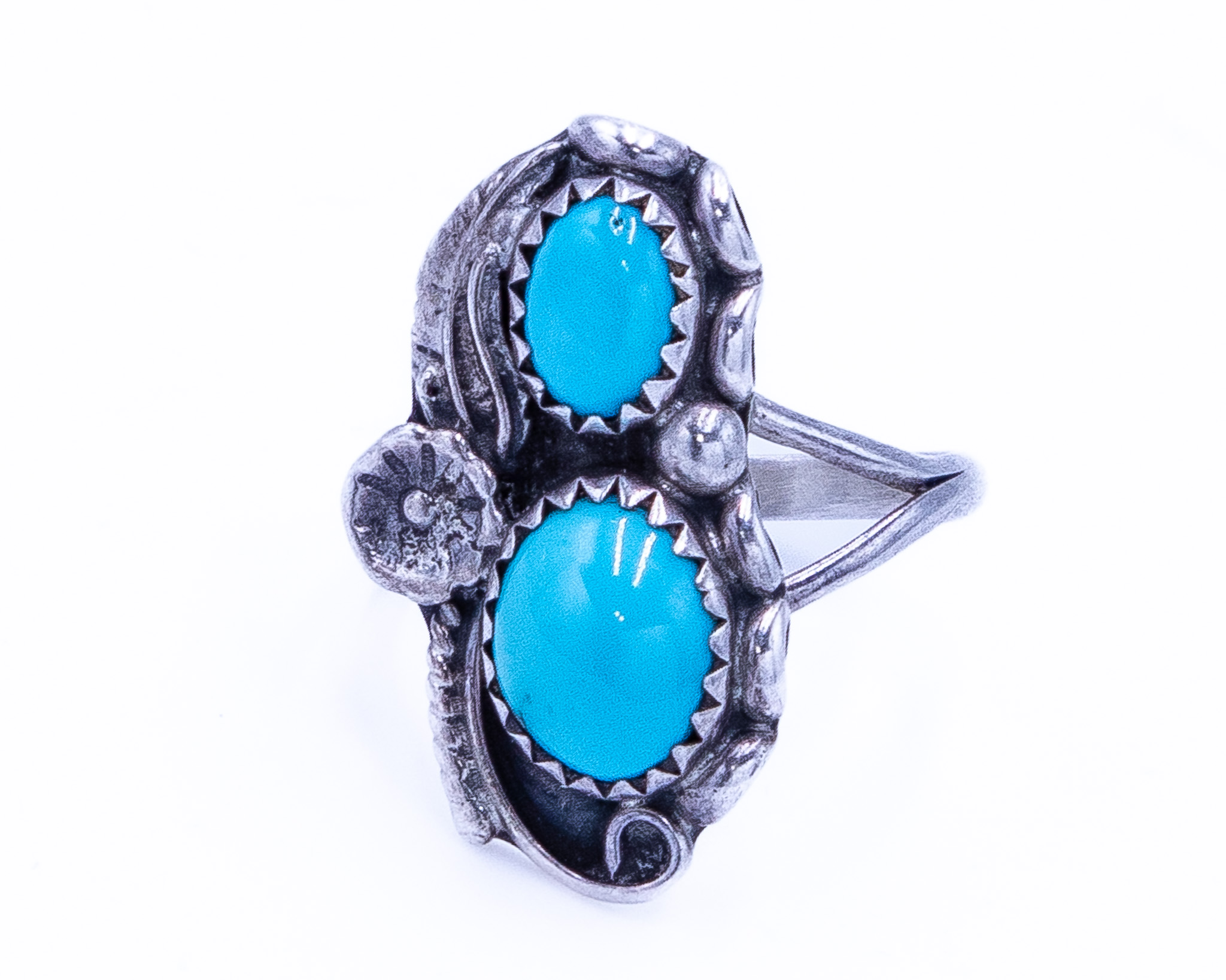 Signed SC Navajo Turquoise Sterling Blossom Ring Sz 5.5