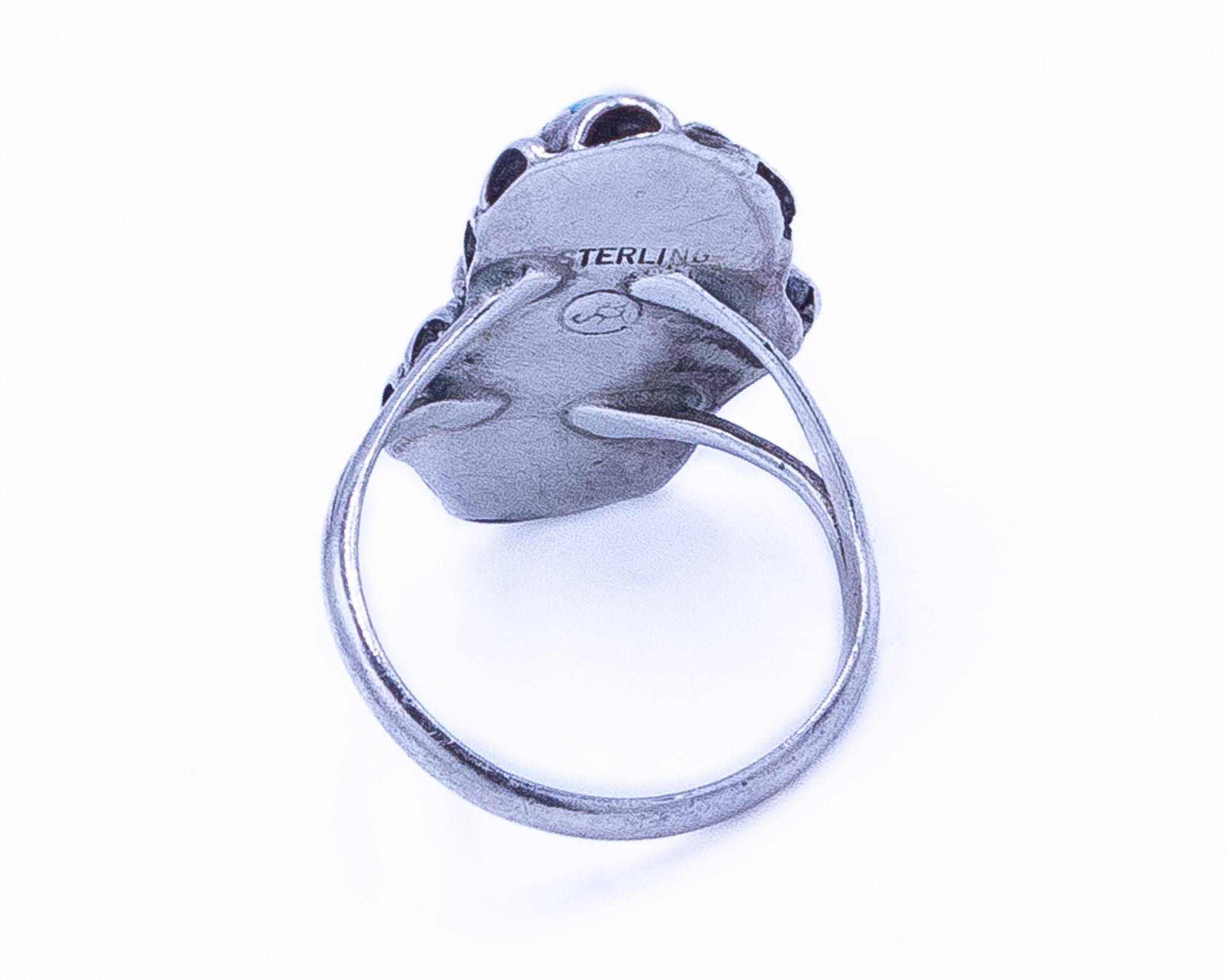 Signed SC Navajo Turquoise Sterling Blossom Ring Sz 5.5, 3g