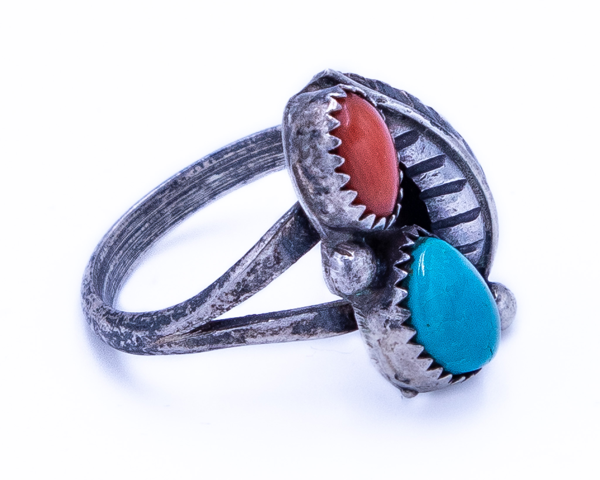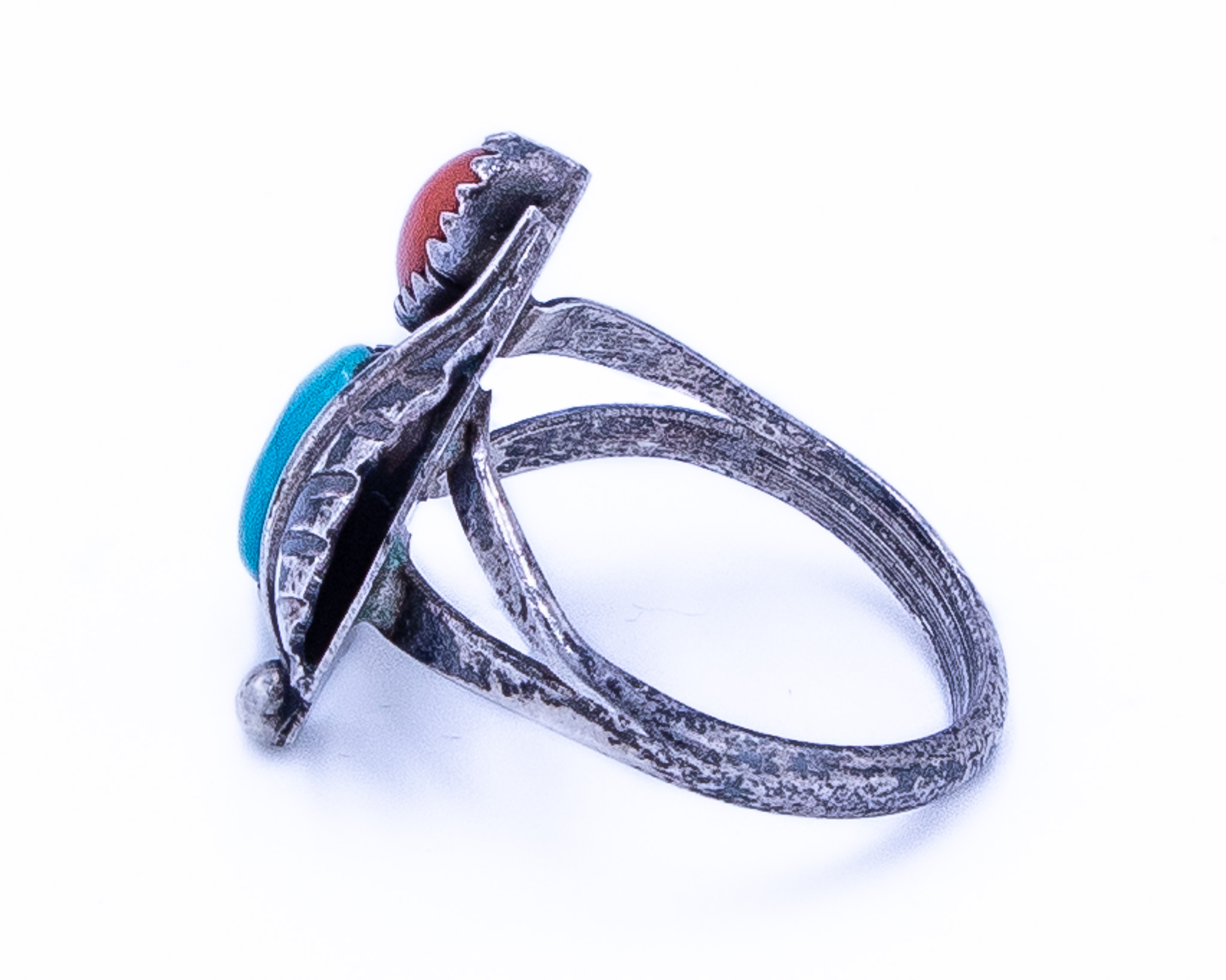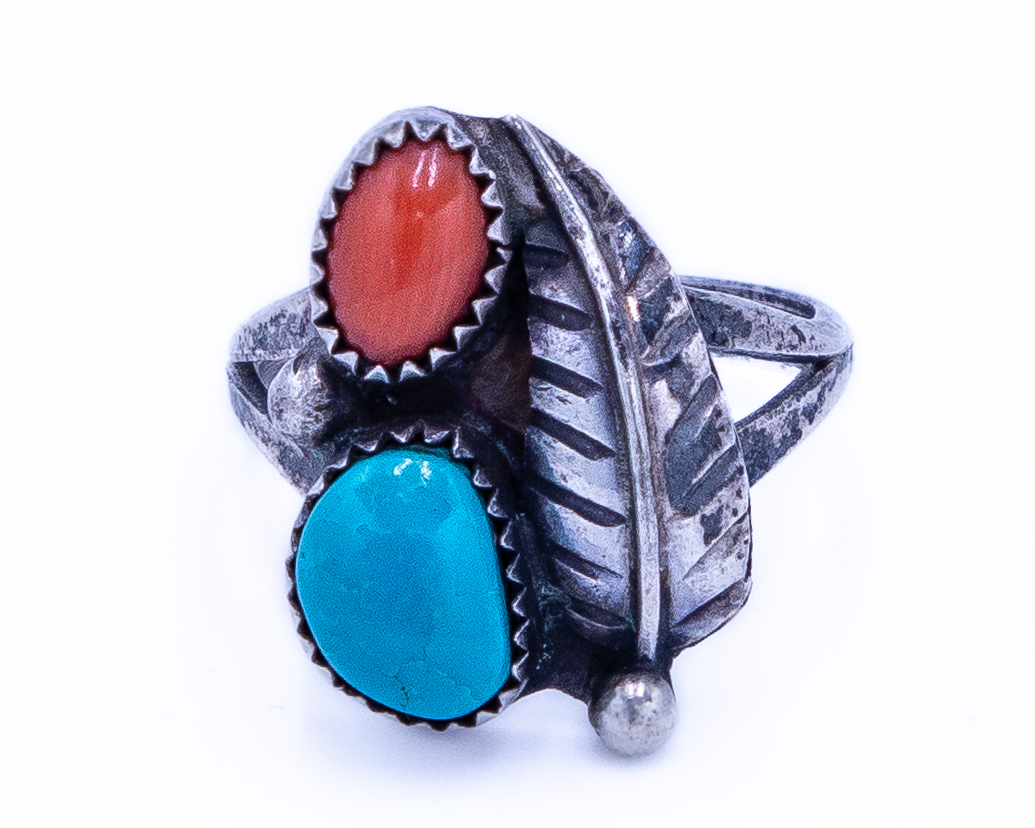 Vintage Navajo Coral Turquoise Sterling Ring Sz 6, 4g