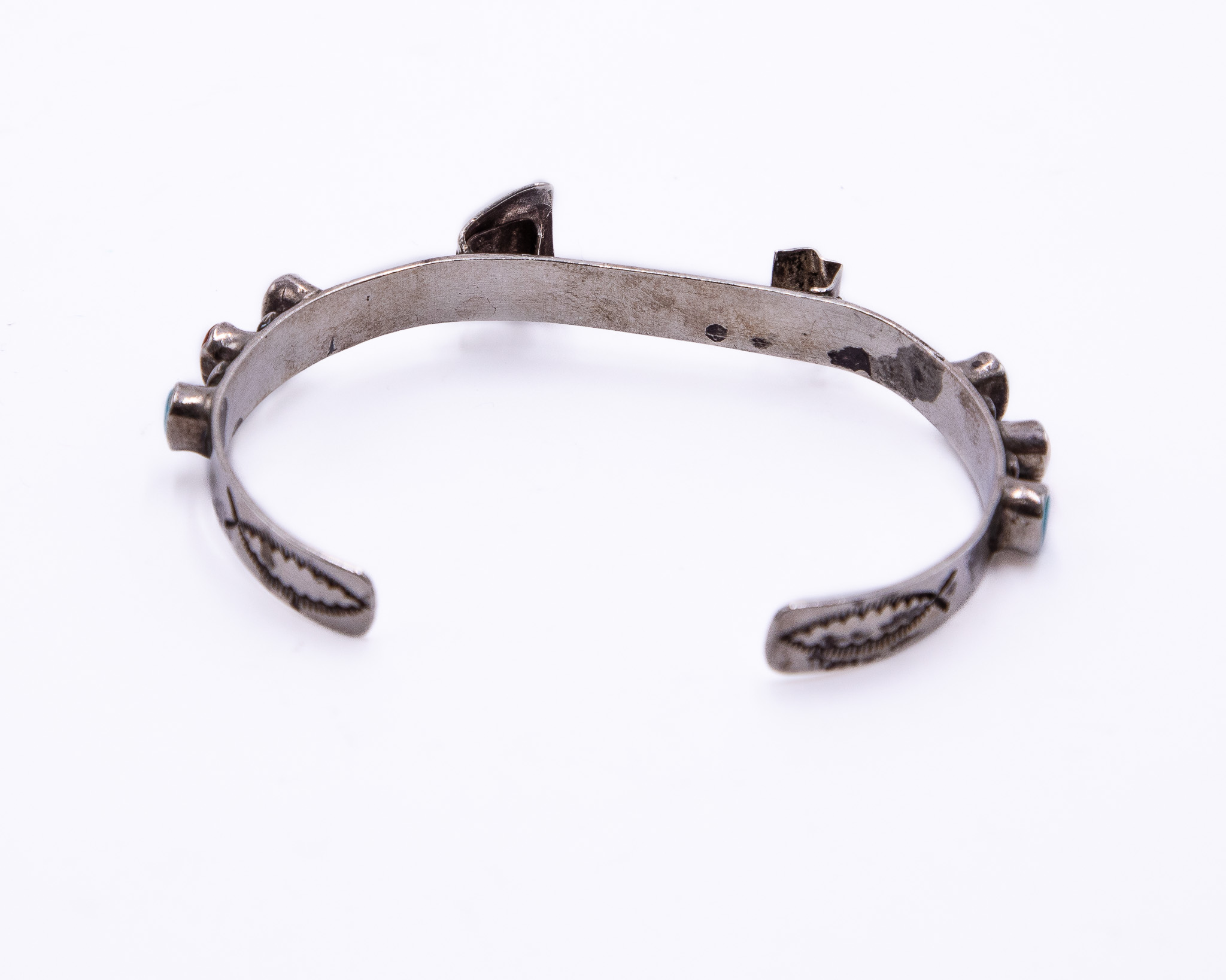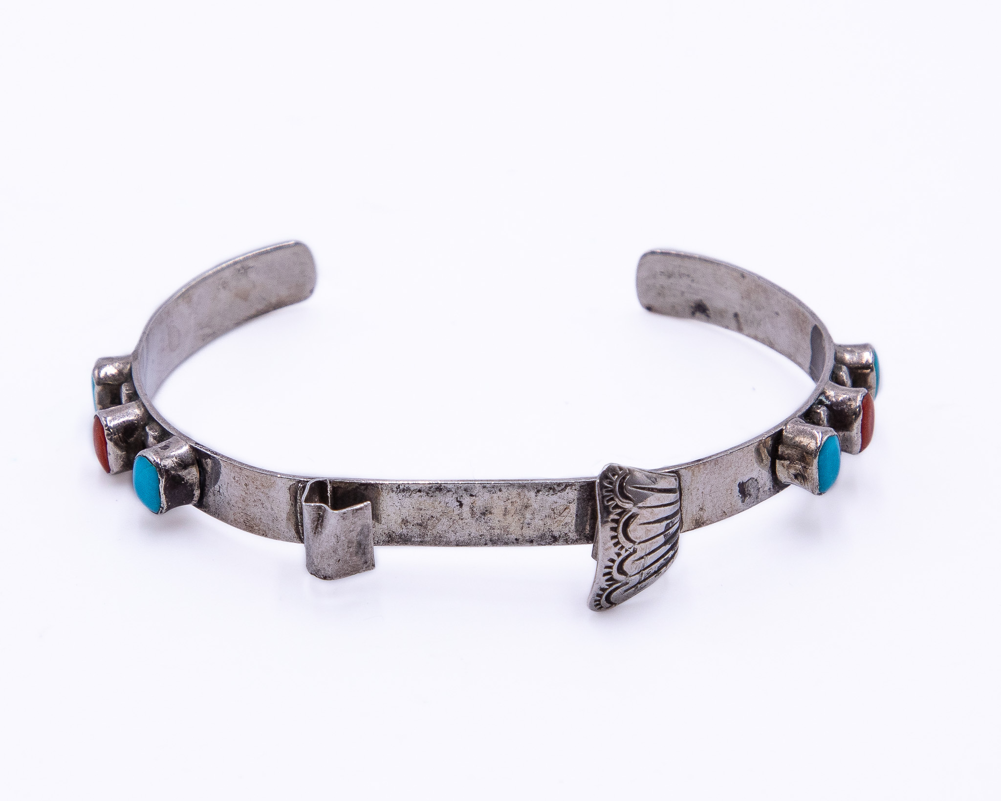 Vintage Navajo Coral Turquoise Sterling Watch Cuff Bracelet As Is 11g-Missing Piece