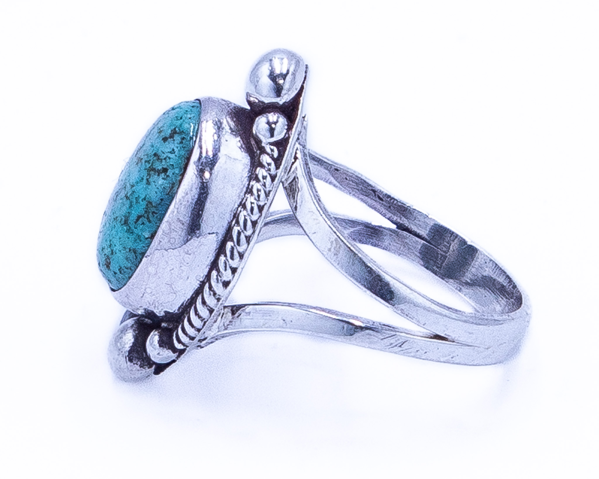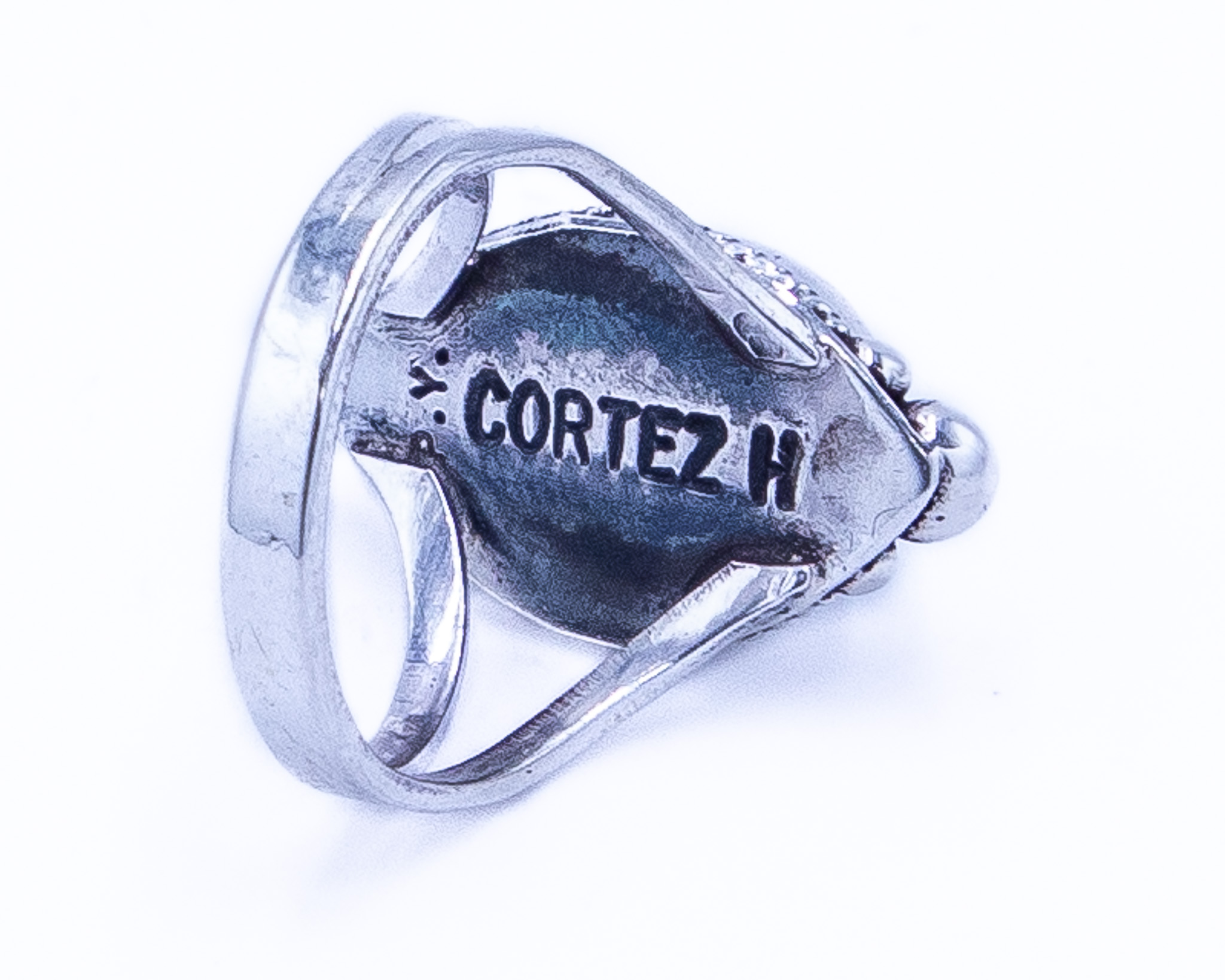 Double Signed Cortez H And P.Y. Vintage Navajo Turquoise Sterling Ring Sz 5.75, 4.5g