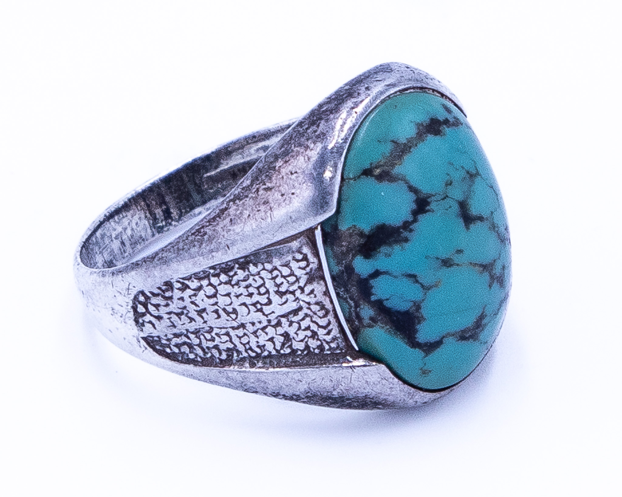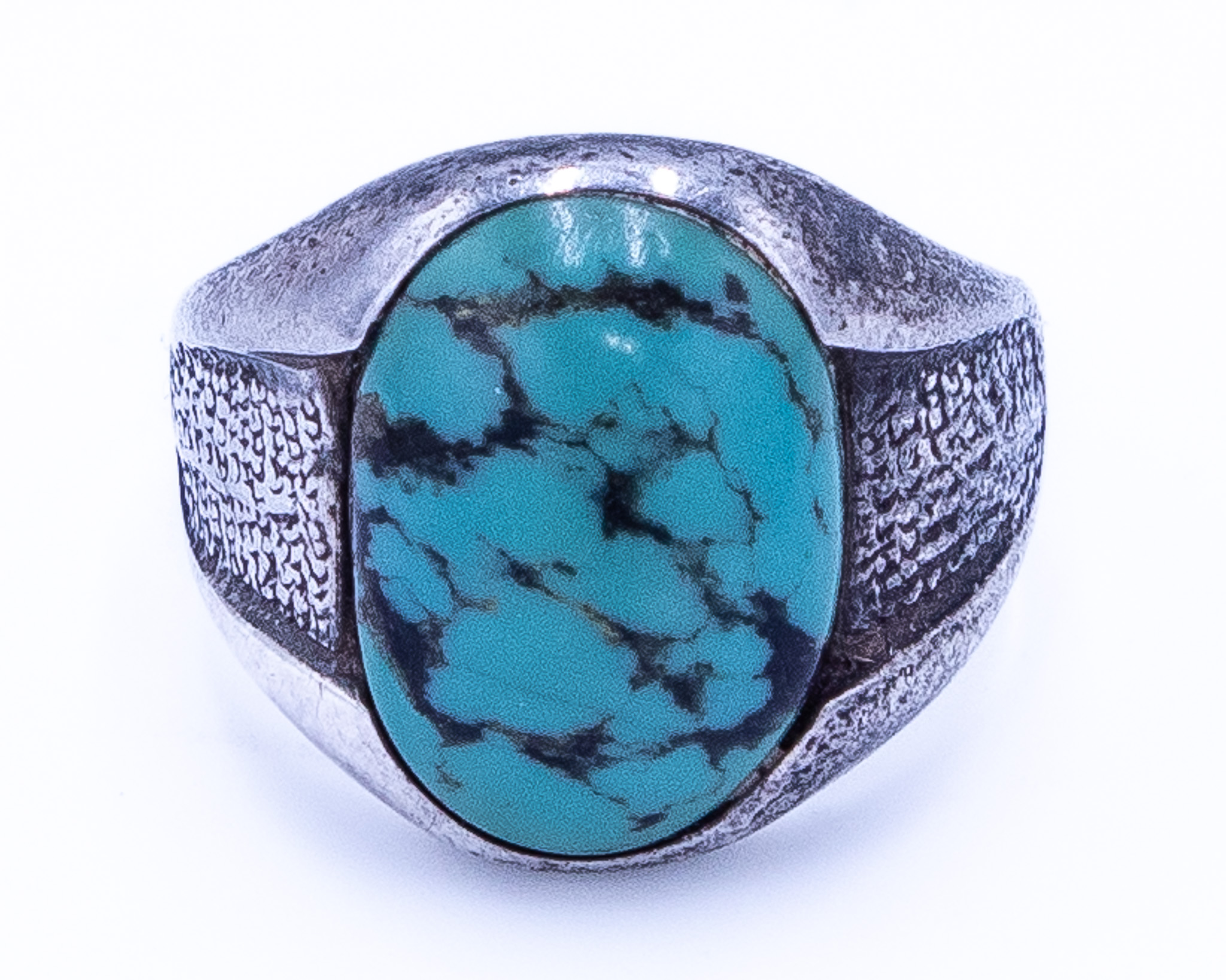 Vintage Navajo Turquoise Sterling Ring Sz 10, 8g