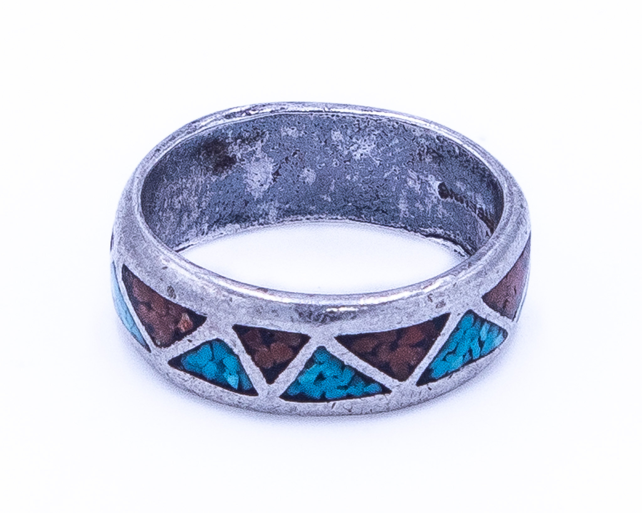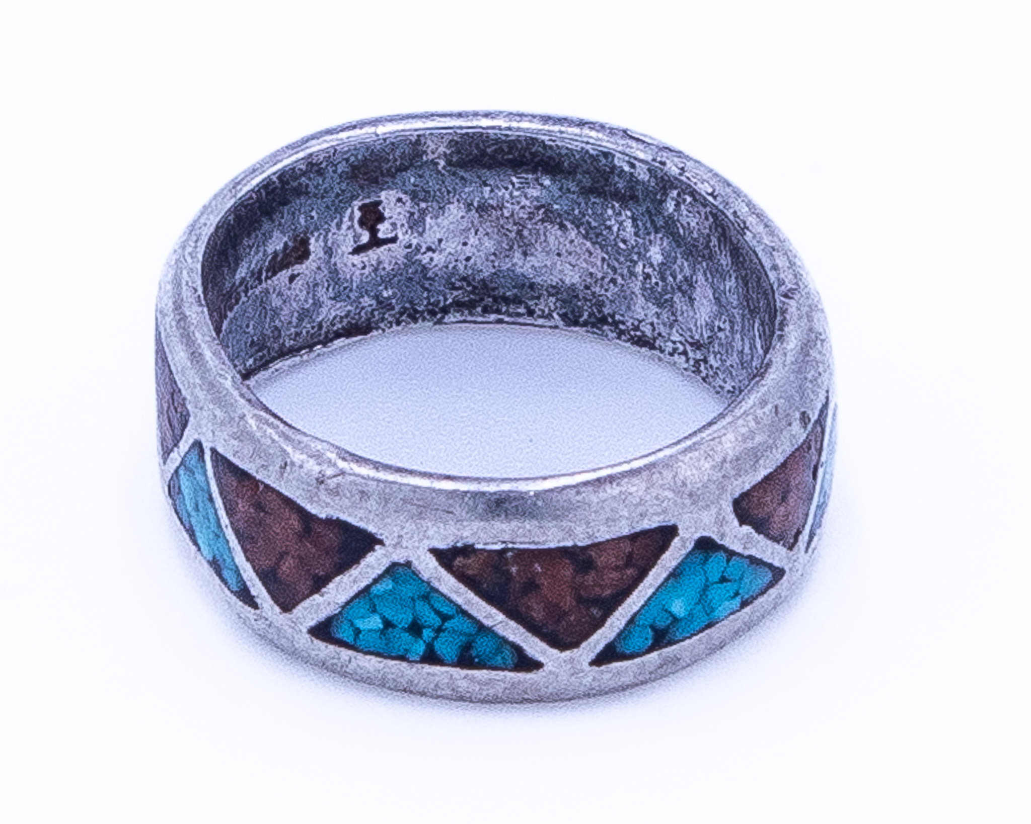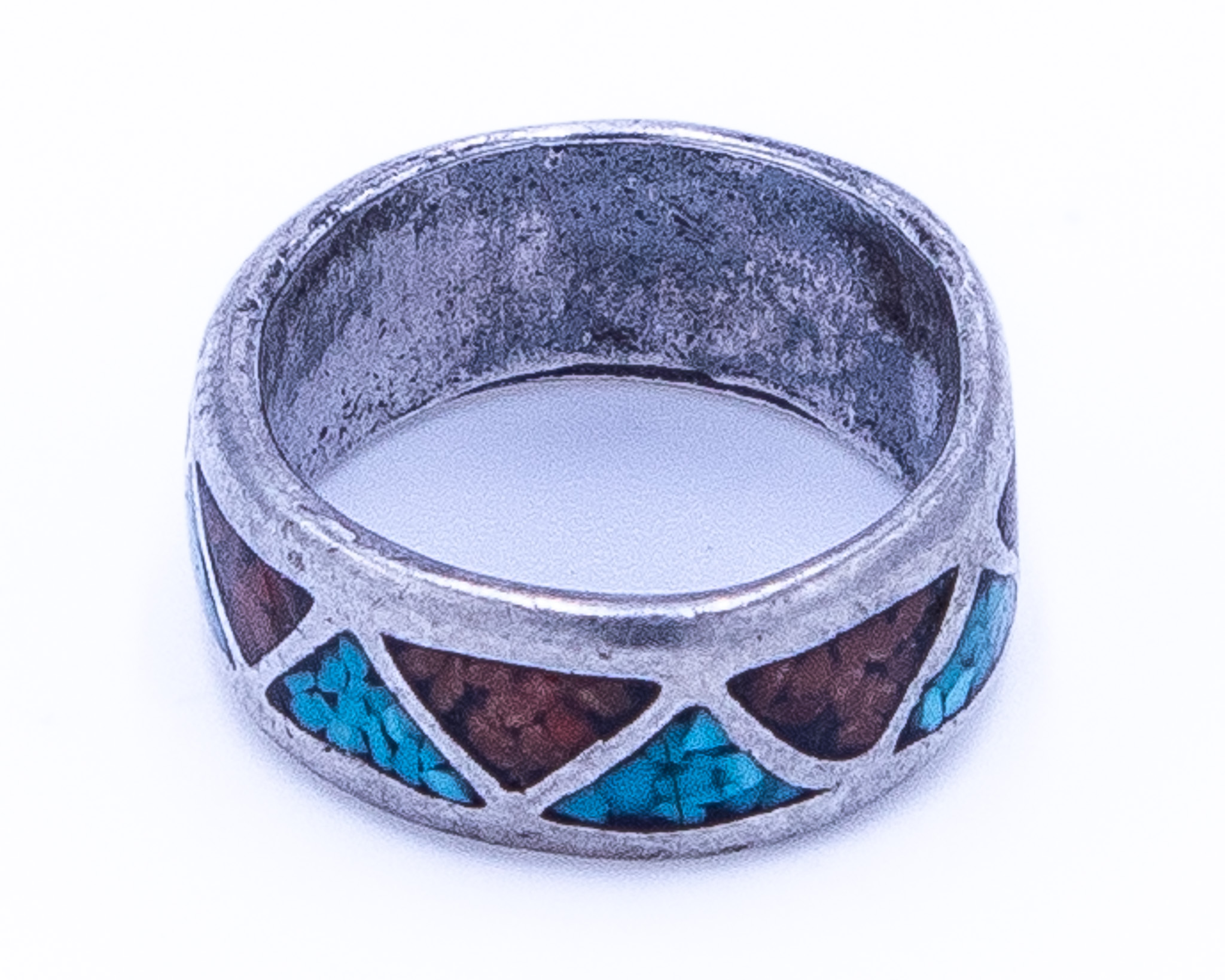 Signed T Navajo Crushed Turquoise Coral Sterling Ring Sz 4.75, 3g
