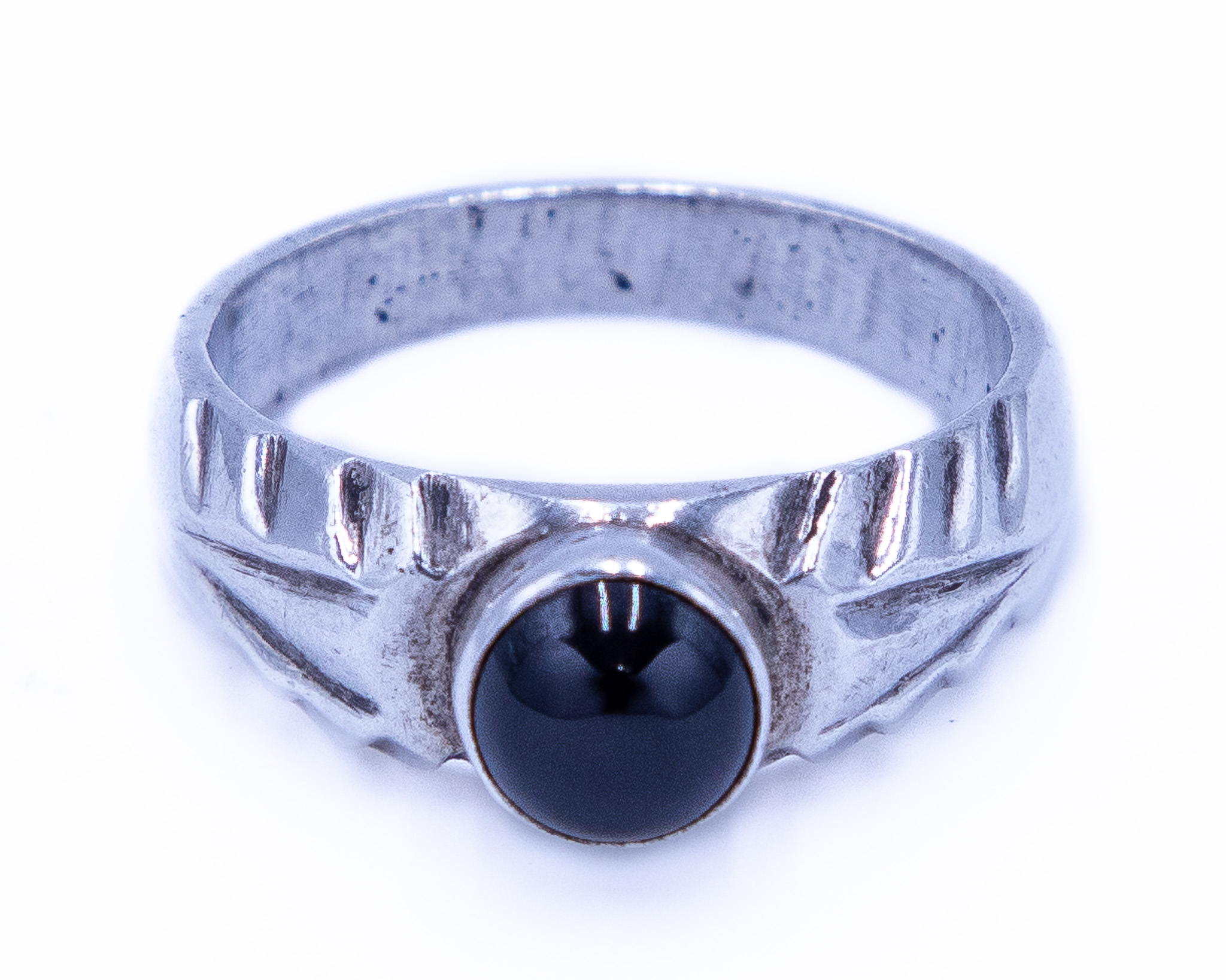 Vintage Navajo Onyx Sterling Ring Sz 9.25, 6.5g