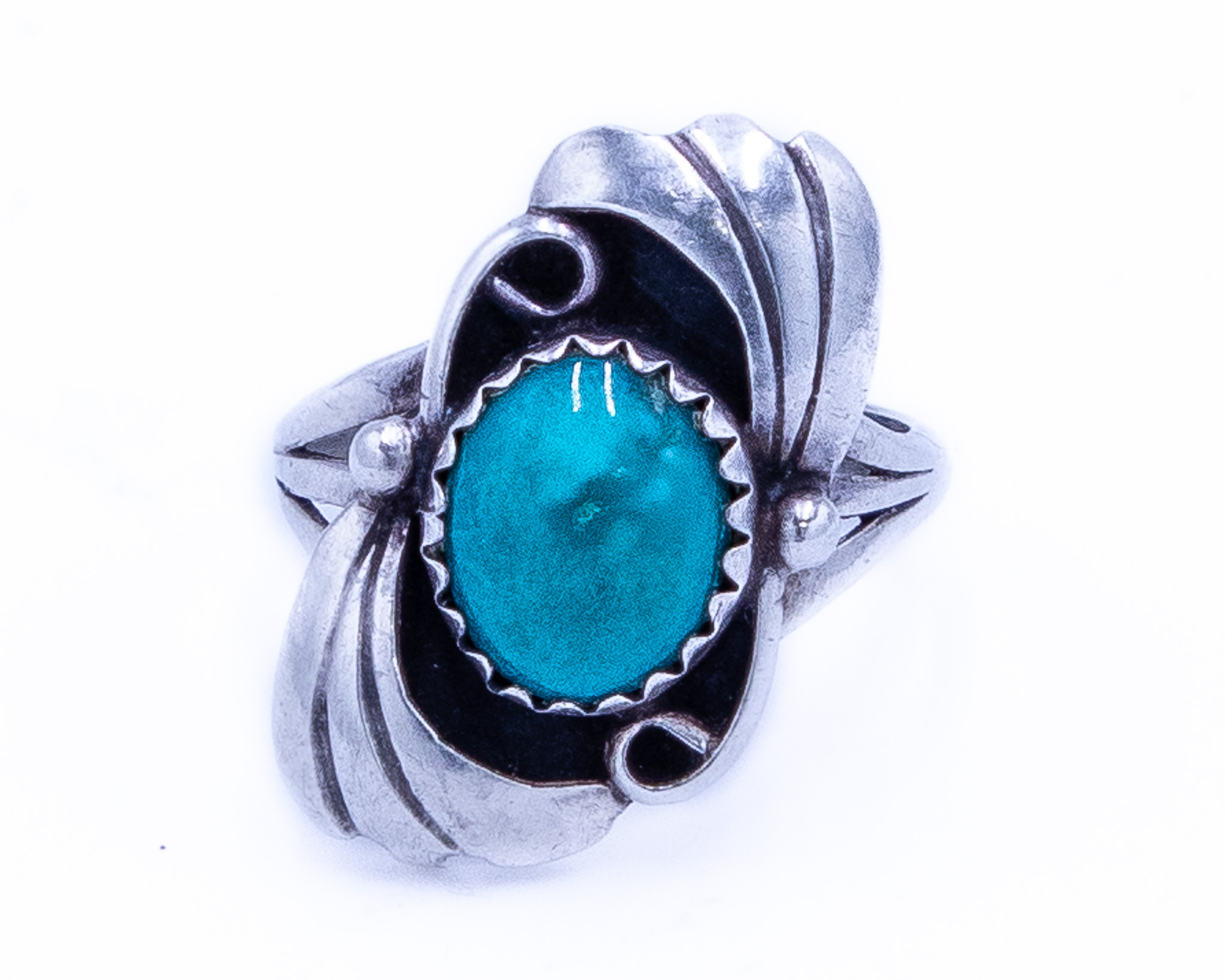 Vintage Navajo Turquoise Sterling Ring Sz 5.75, 4g