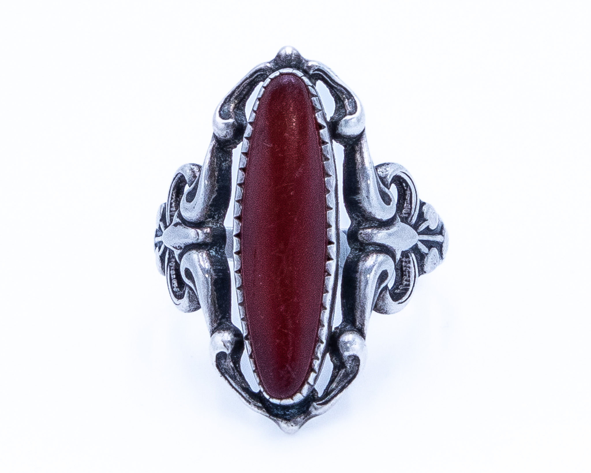 Vintage Navajo Red Jasper Sterling Ring Sz 6.5, 6g