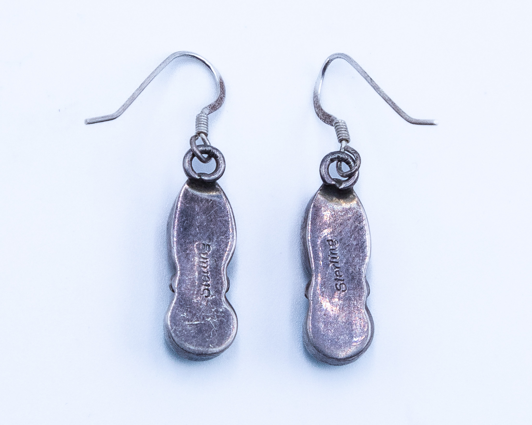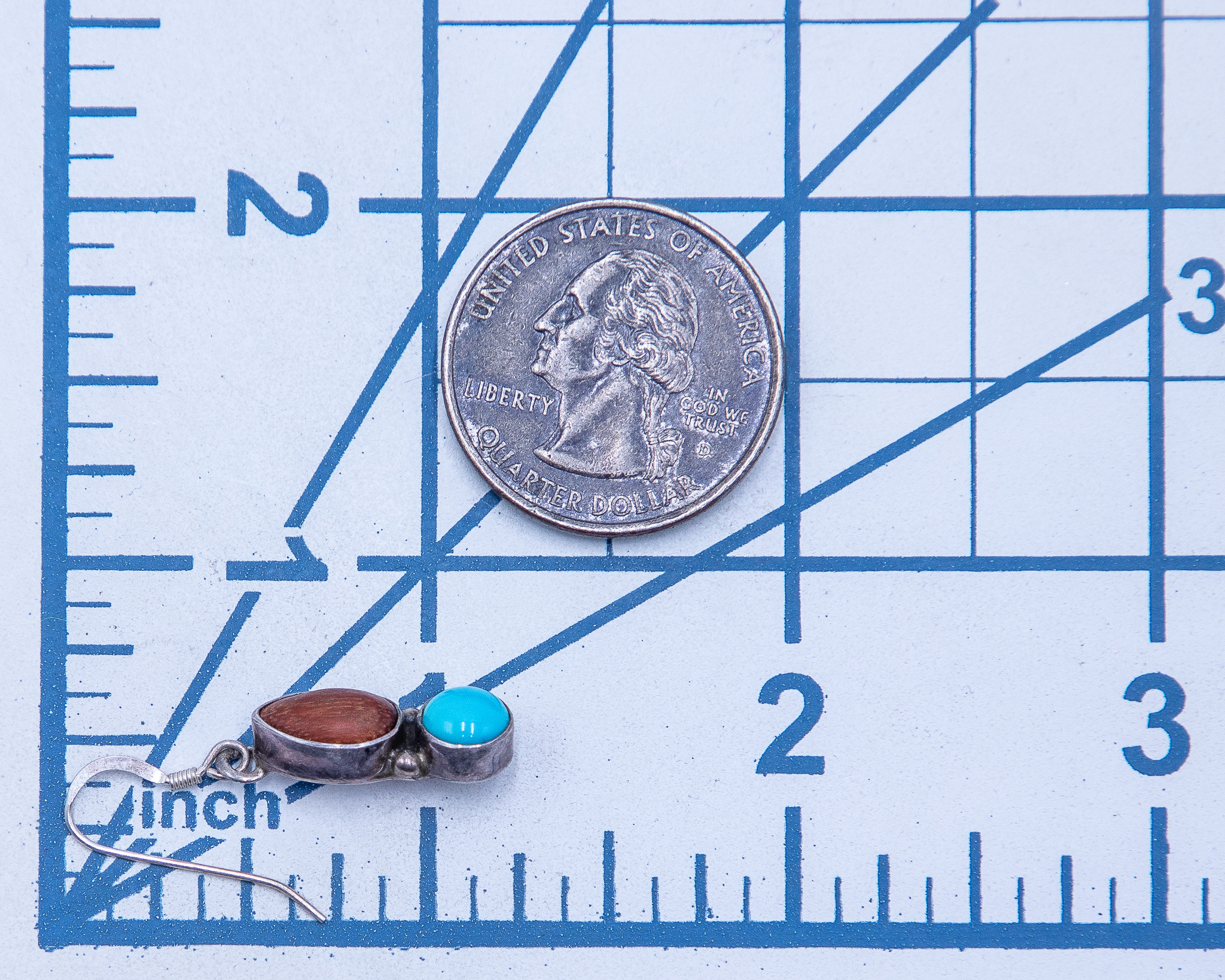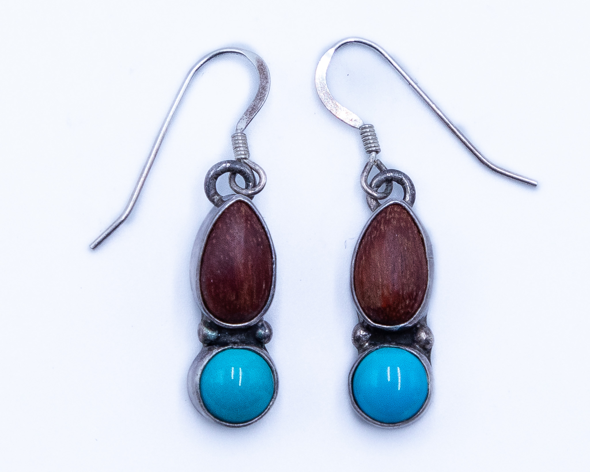 Vintage Navajo Wood Turquoise Sterling Earrings 3g