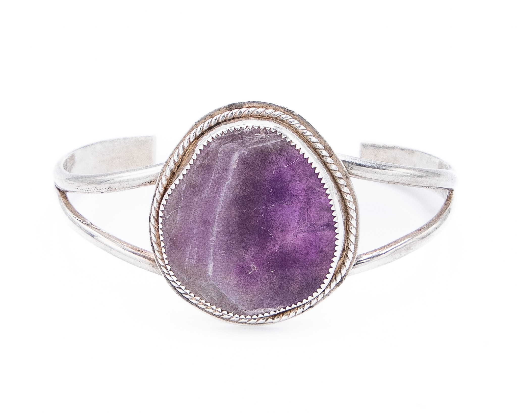 Vintage Navajo Amethyst Sterling Cuff Bracelet