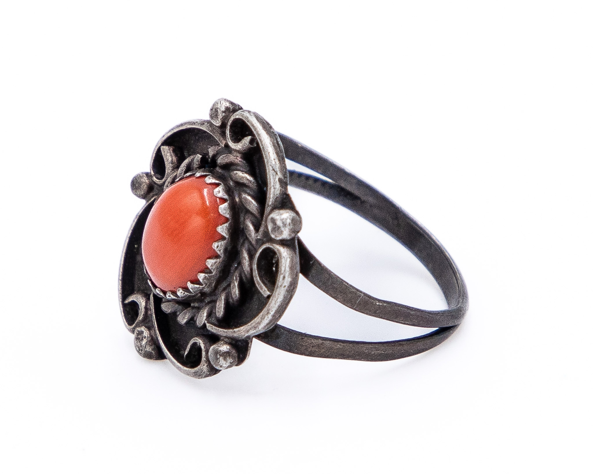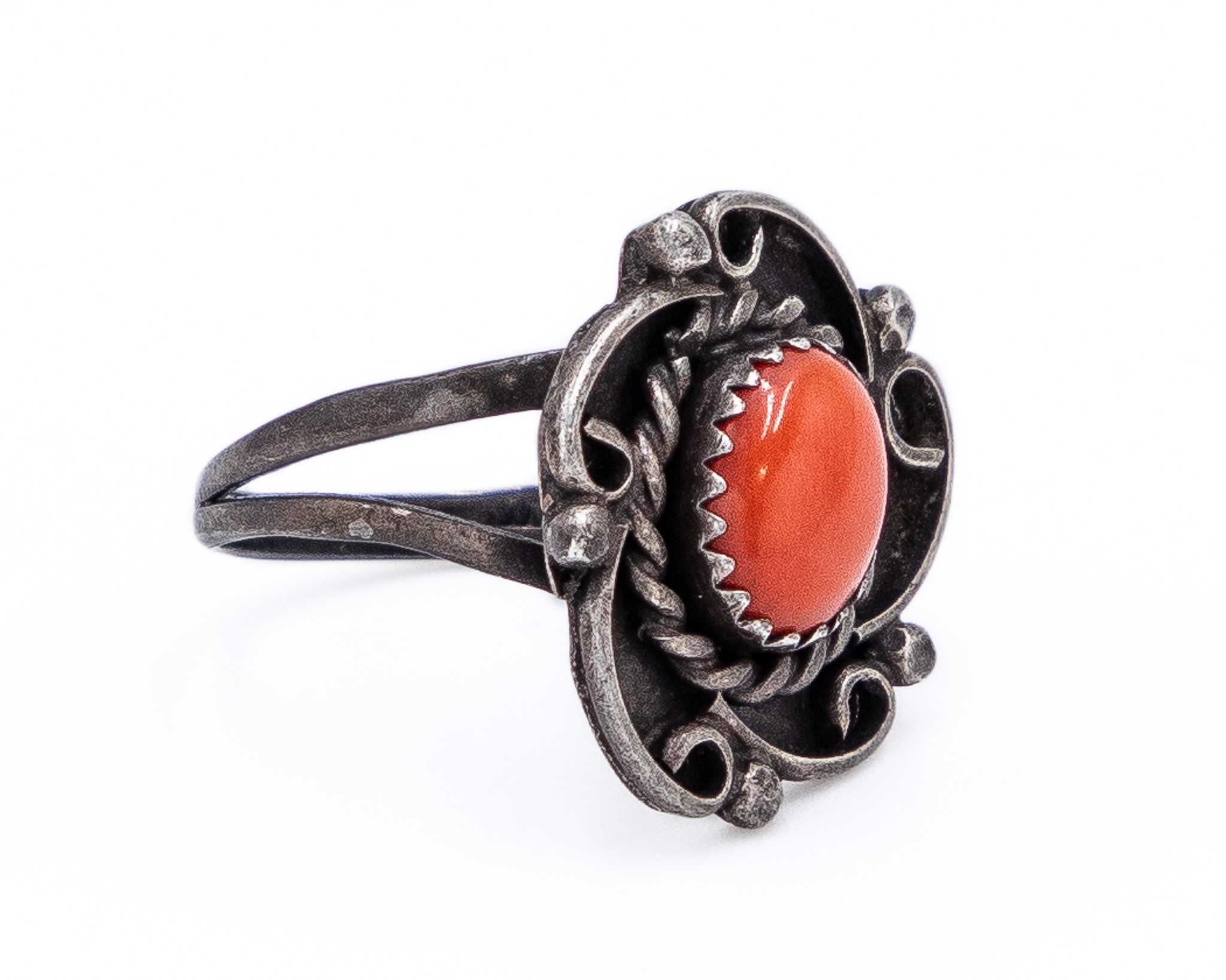 Vintage Navajo Coral Sterling Ring Sz 6.5, 3.5g