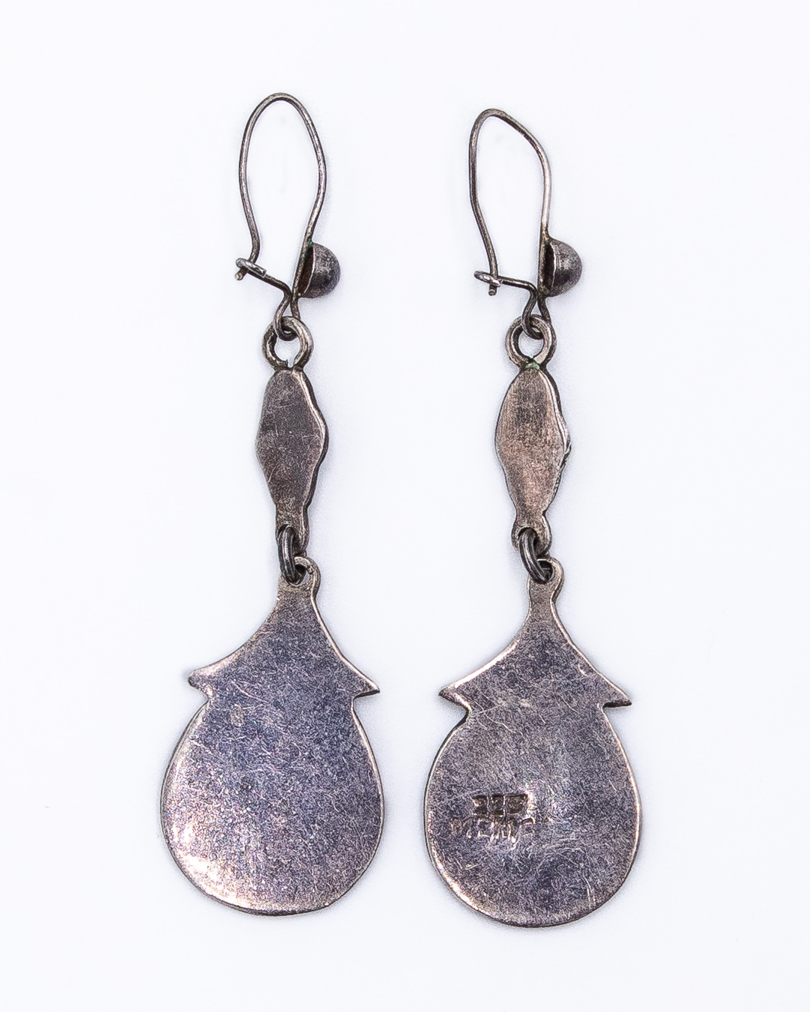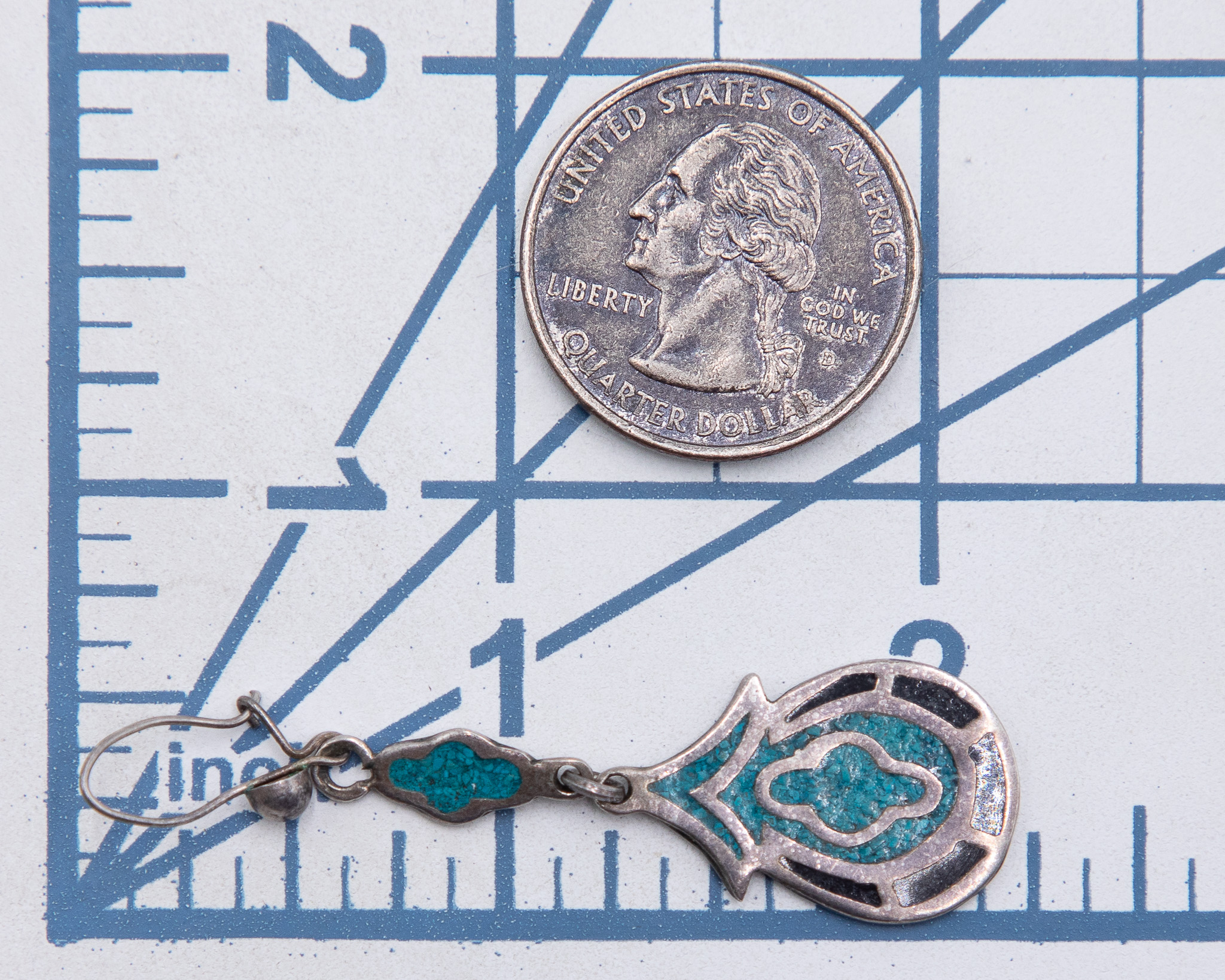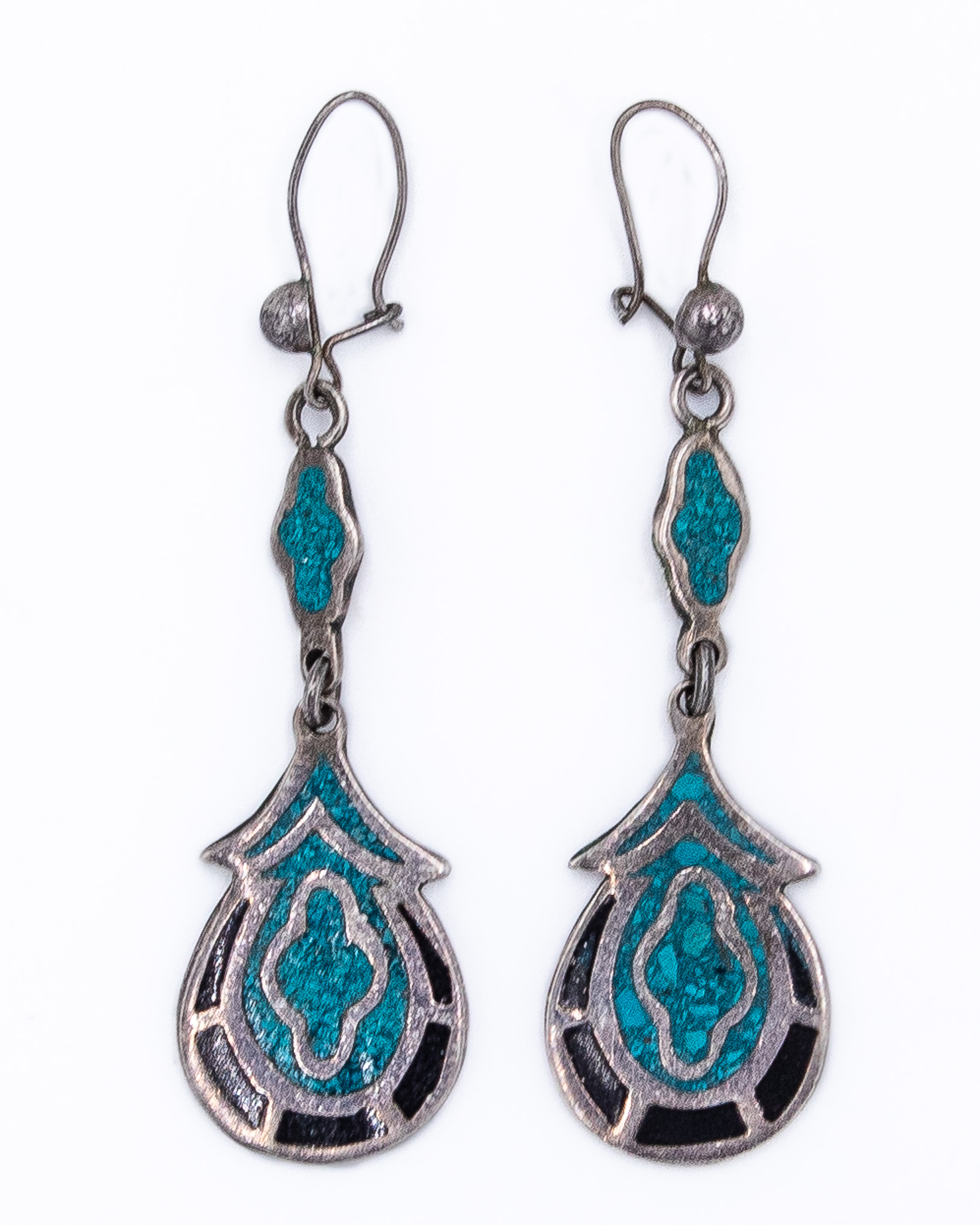 Vintage Mexico Crushed Turquoise Onyx Sterling Kidney Hook Earrings 5.5g