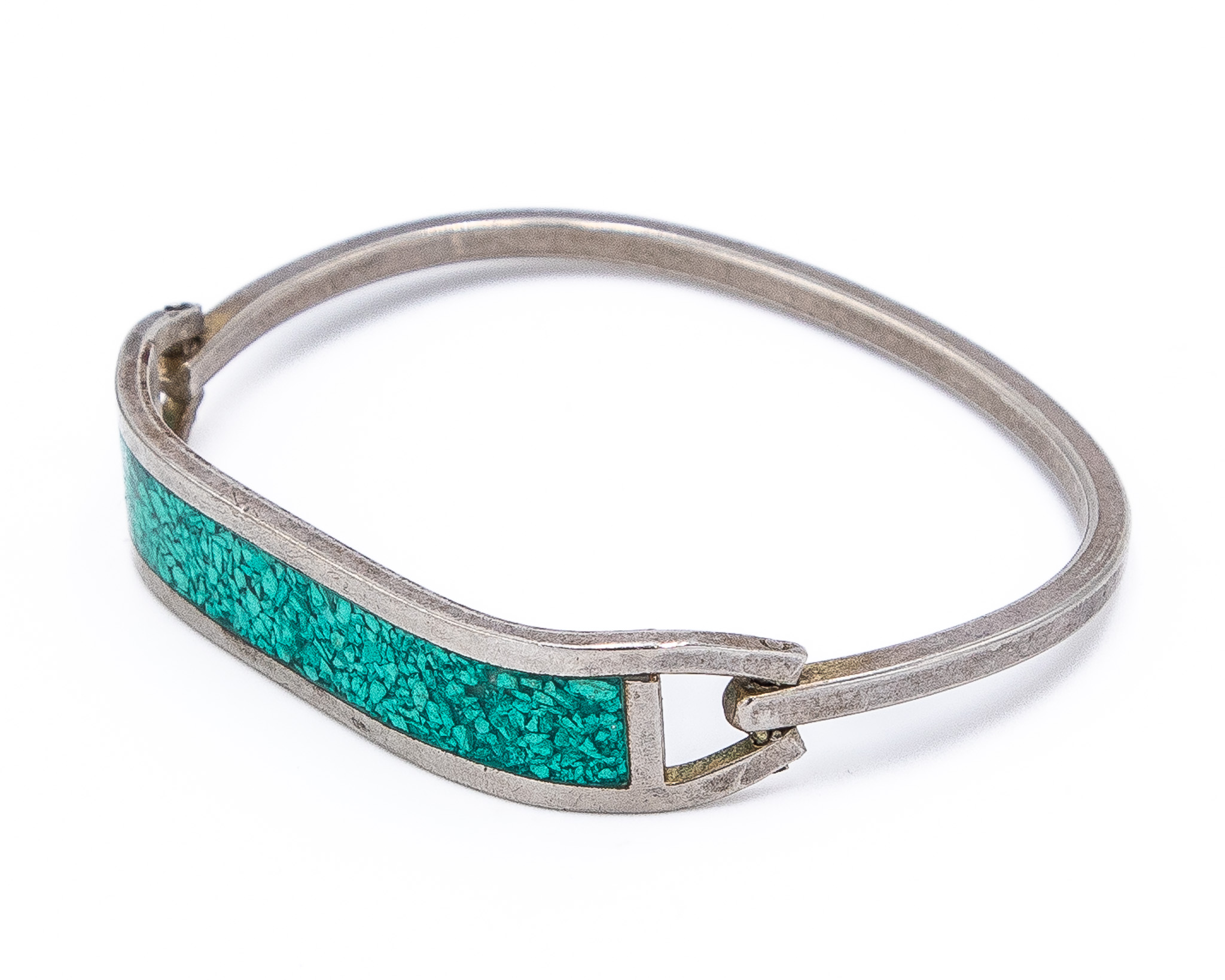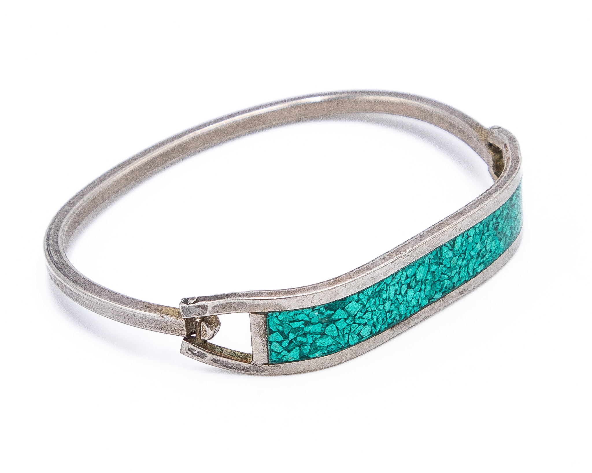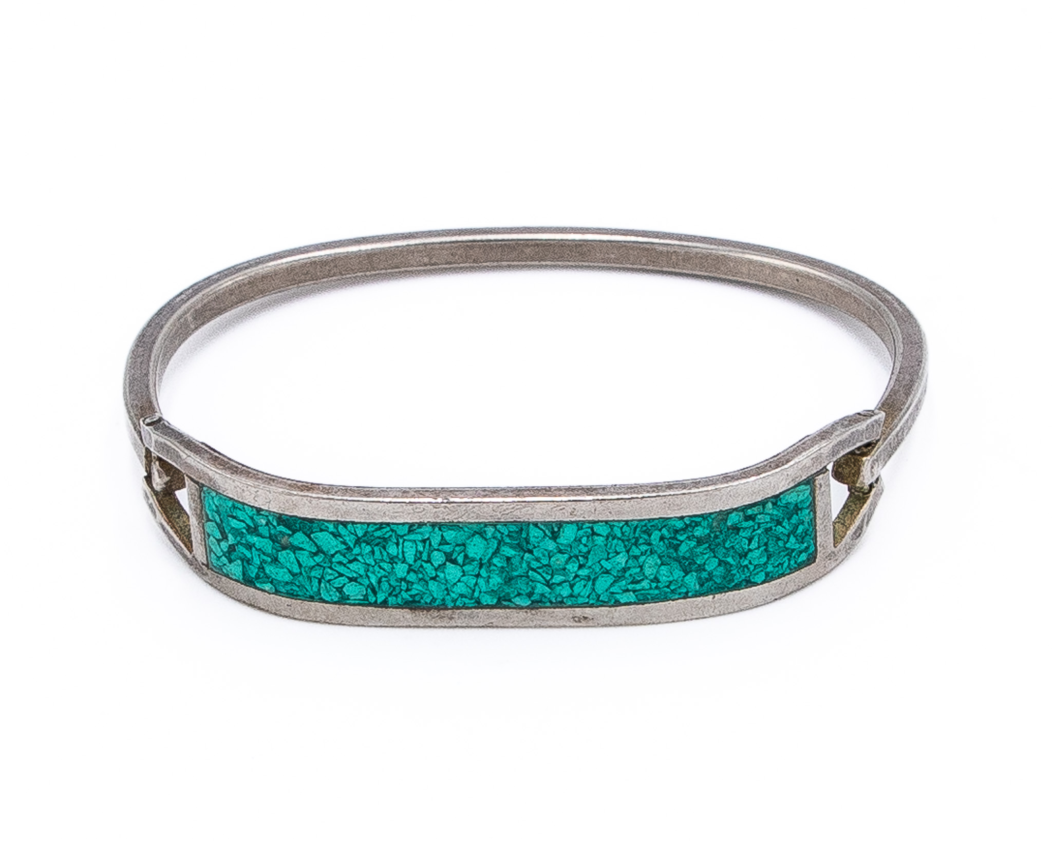 Vintage Taxco Mexico Crushed Green Turquoise Sterling Bracelet 14g