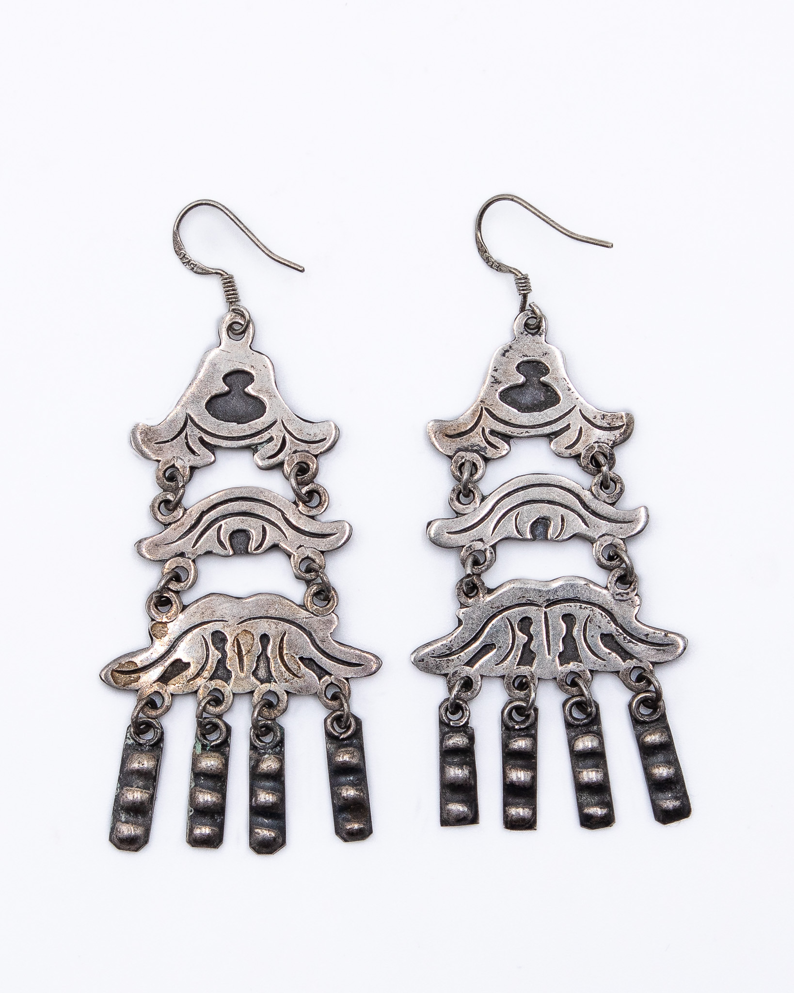 Vintage Mexico Sterling Chandelier Hook Earrings 10.5g
