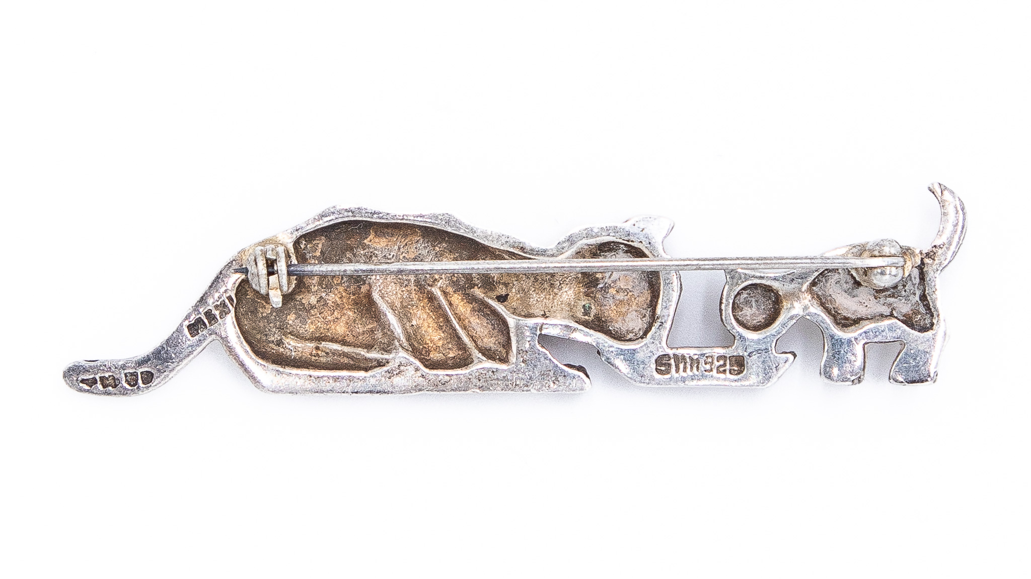 Signed Taxco Mexico Sterling Eating Cats Brooch 13g-Illegible SIgnature Stamp